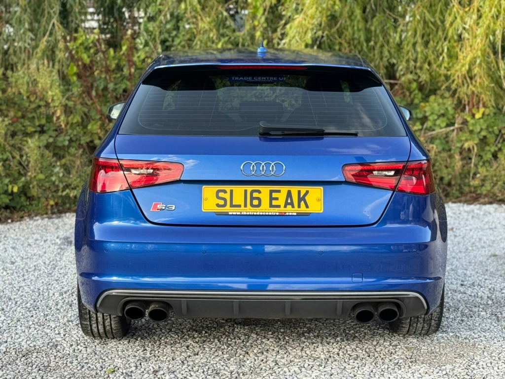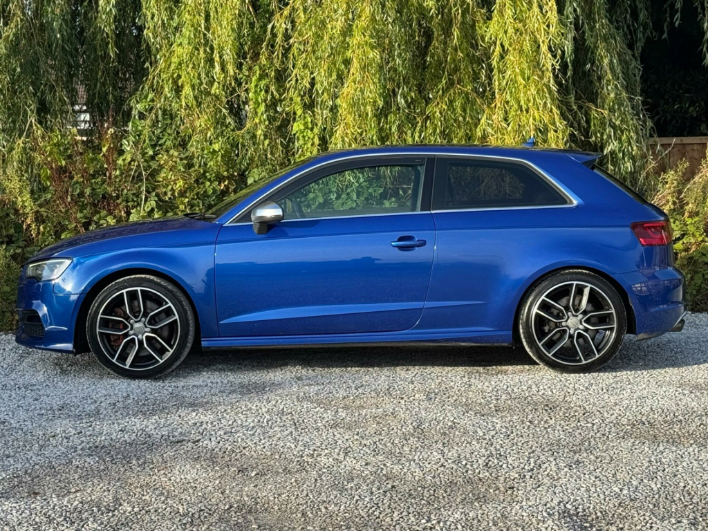 SERVICE HISTORY - GEARBOX SERVICE DONE 35,538£4,440 WORTH OF EXTRASULEZ COMPLIANTEURO 6Optional Equipment when new£4,440inc. VATTechnology Package with Mobile telephone preparation - High with Audi Connect£1,445LED headlights£795Parking system plus, front and rear with selective display£595Pearl Effect paint£550Advanced key£425Audi sound system£255Cruise control£225Door mirrors - electrically folding£150Fine Nappa leather Black-Sepang blue, pearl effect-Total price when new£34,805inc. VATAudi Parking System PlusVery rareLED HeadlightsVery rareAdvanced KeyVery rare18in Alloy Wheels - 10-Spoke Design Titanium MattVery rareDoor Mirrors - Heated-Electrically Adjustable-Folding-Auto-DimmingVery rareTechnology PackageVery rareAudi Sound SystemPrivacy GlassCruise ControlFine Nappa Leather - S3 Embossing - Black with Silver StitchingEquipment:Navigation SD CardParking Sensor(s)Climate ControlLeather Trim18'' Alloy WheelsPrivacy GlassThis 2016 Audi S3 TFSI offers an exceptional driving experience, boasting a powerful 2.0 litre petrol engine and a responsive Four Wheel Drive system. As a Euro 6 compliant vehicle, it meets stringent emission standards. Key features include the convenience of Advanced Key with keyless entry, allowing effortless access and starting. The S3 is equipped with striking LED headlights that automatically adjust for optimal visibility, and the Audi Parking System Plus, complete with front sensors, aids in precise manoeuvring. For enhanced comfort and practicality, it features heated, electrically adjustable, folding, and auto dimming door mirrors, alongside a comprehensive Technology Package. di parking system plus, led headlights, advanced key, 18in alloy wheels - 10-spoke design titanium matt, door mirrors - heated-electrically adjustable-folding-auto-dimming, technology package, audi sound system, privacy glass, cruise control, fine nappa leather - s3 embossing - black with silver stitching, 12v power socket - centre console, 12v power socket - rear, 18in alloy wheels - 5-twin-spoke star design, 2 x sdxc card readers, abs - anti-lock braking system, ami - audi music interface, asr - anti slip regulation, adaptive brake lights, airbags - driver, airbags - drivers knee, airbags - front passenger, airbags - front side, airbags - head level side for front and rear, alarm - thatcham category 1, aluminium interior elements, aluminium-effect door mirror housings, anti theft locking wheel bolts, audi drive select, audio output - 80 watts, brake calipers - black with s3 logo, car jack, cloth headlining in black, coat hooks - b pillar - both sides, colour drivers information system - dis, cup holders - rear x2, cup holders - x2 in centre console, dab digital radio, display screen colour - 5.8in, door mirrors - body coloured with integrated led indicators, door mirrors - electrically adjustable and heated, door sill trims - aluminium with s3 logo, dual-zone electronic climate control, ebd - electronic brakeforce distribution, edl - electronic differential lock, esp - electronic stability programme, electric windows - front, electromechanical parking brake, first aid kit, front centre armrest, front fog lights, front passenger airbag deactivation switch, front sports seats, front and rear floor mats, full european map data, glovebox - illuminated, grab handles - dampered, head restraints - rear, headlights - automatic dynamic range control, headlights - bi-xenon plus, headlights washers, heat insulating glass, heated front seats, heated rear windscreen, heated windscreen washer jets, hydraulic brake assist, isofix child seat mounting for front passenger and rear outer seats, illuminated vanity mirrors, immobiliser, inlays - matt brushed aluminium, interior elements - air vents - aluminium, interior elements - frame around the inside door handle - aluminium, interior elements - glove compartment - aluminium, interior elements - window control switches - aluminium, interior lighting, led daytime running lights, led rear indicators, luggage compartment - illuminated, luggage compartment - lashing points x4, luggage compartment - side net, mmi radio, matt-brushed aluminium door trims, mobile telephone preparation - bluetooth interface, model and engine technology badges at rear, pedals in stainless steel, pollen filter, progressive steering, radiator grille - platinum grey with horizontal double chrome bars, rear diffuser, rear parcel shelf removable, remote central locking with 2 fold away keys, rest recommendation system, s design body styling, s sport suspension, s logos on the mmi and dis, s3 - instrument dials in grey with white needles and aluminium look needle hub, s3 front bumper, satellite navigation system - sd card based, seat belt reminder for all seats, seats - adjustment for cushion depth, seats - convenience entry - enhanced front folding function, seats - extendable thigh support, seats - front height adjustment, seats - split folding rear - 60-40, secondary collision brake assist, smoking package, space saver spare wheel, speakers x8, spoiler - body coloured, steering wheel - 3-spoke leather-multifunction-flat bottomed-shift paddles, steering wheel - gear shift paddles, steering wheel - height and reach adjustable, steering wheel - multi-function, storage compartment - centre console, storage compartment under rear seat, storage compartments - door side trims, storage net in front passenger footwell and front seat backrests, storage and luggage package, sun blinds - manual for side window, sun visors - with covered vanity mirrors, tool kit, tyre pressure monitoring system, usb connection, voice control, voice control - navigation, warning triangle, washer fluid level indicator, window surrounds - aluminium
