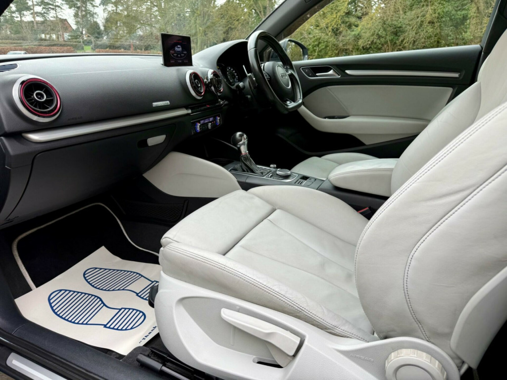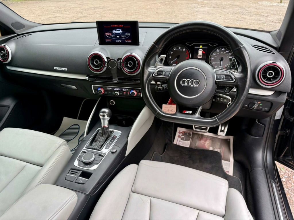SAT NAV+LIGHT GREY FULL LEATHER+HEATED SEATS+BLACK ALLOYS+CRUISE CONTROL+PARK SENSORS+APPLE CAR PLAY+STAGE 1 UPGRADE WITH DOWN PIPES ALL DOCUMENTED+MAXTON SPOILER+FULL SERVICE HISTORY WITH RECENT HALDEX SERVICE BY AUDI+RAIN GUARDS+RED CALIERS+BLACK HONEYCOMBE GRILLE+BLACK MIRROR COVERS+SPARE WHEEL+EXCELLENT CONDITION AND WELL MAINTAINED BY AUDI+FINANCE ARRANGED+PART EXCHANGE ACCEPTED.This 2016 Audi S3 TFSI boasts exceptionally low mileage for its age, having covered just 59,000 miles, and comes with a full service history. This four wheel drive model features a powerful 2.0 litre petrol engine and meets Euro 6 emission standards. It is equipped with a desirable Black Styling Package, an Audi Phone Box offering wireless phone charging, and a rear view camera integrated with parking assistance and acoustic indicators for effortless parking. The striking red brake calipers with S3 logos add a distinctive touch.The Audi S3 TFSI offers impressive performance, accelerating from 0 to 62 miles per hour in a swift 4.8 seconds, demonstrating its dynamic capabilities. This acceleration figure highlights its superior performance compared to many other vehicles in its class. Furthermore, this model provides ample practicality with its large boot space, making it a versatile choice for everyday use and longer journeys alike.. 12V Power Socket - Centre Console, 12V Power Socket - Rear, 18in Alloy Wheels - 5-Twin-Spoke Star Design, 2 x SDXC Card Readers, ABS - Anti-Lock Braking System, AMI - Audi Music Interface, ASR - Anti Slip Regulation, Adaptive Brake Lights, Airbags - Driver, Airbags - Drivers Knee, Airbags - Front Passenger, Airbags - Front Side, Airbags - Head Level Side For Front and Rear, Alarm - Thatcham Category 1, Aluminium Interior Elements, Aluminium-Effect Door Mirror Housings, Anti Theft Locking Wheel Bolts, Audi Drive Select, Audio Output - 80 Watts, Brake Calipers - Black with S3 Logo, Car Jack, Cloth Headlining in Black, Coat Hooks - B Pillar - Both Sides, Colour Drivers Information System - DIS, Cup Holders - Rear x2, Cup Holders - x2 in Centre Console, DAB Digital Radio, Display Screen Colour - 5.8in, Door Mirrors - Body Coloured with Integrated LED Indicators, Door Mirrors - Electrically Adjustable and Heated, Door Sill Trims - Aluminium with S3 Logo, Dual-Zone Electronic Climate Control, EBD - Electronic Brakeforce Distribution, EDL - Electronic Differential Lock, ESP - Electronic Stability Programme, Electric Windows - Front, Electromechanical Parking Brake, First Aid Kit, Front Centre Armrest, Front Fog Lights, Front Passenger Airbag Deactivation Switch, Front Sports Seats, Front and Rear Floor Mats, Full European Map Data, Glovebox - Illuminated, Grab Handles - Dampered, Head Restraints - Rear, Headlights - Automatic Dynamic Range Control, Headlights - Bi-Xenon Plus, Headlights Washers, Heat Insulating Glass, Heated Front Seats, Heated Rear Windscreen, Heated Windscreen Washer Jets, Hydraulic Brake Assist, ISOFIX Child Seat Mounting for Front Passenger and Rear Outer Seats, Illuminated Vanity Mirrors, Immobiliser, Inlays - Matt Brushed Aluminium, Interior Elements - Air Vents - Aluminium, Interior Elements - Frame Around the Inside Door Handle - Aluminium, Interior Elements - Glove Compartment - Aluminium, Interior Elements - Window Control Switches - Aluminium, Interior Lighting, LED Daytime Running Lights, LED Rear Indicators, Luggage Compartment - Illuminated, Luggage Compartment - Lashing Points x4, Luggage Compartment - Side Net, MMI Radio, Matt-brushed aluminium door trims, Mobile Telephone Preparation - Bluetooth Interface, Model and Engine Technology Badges at Rear, Pedals in Stainless Steel, Pollen Filter, Progressive Steering, Radiator Grille - Platinum Grey with Horizontal Double Chrome Bars, Rear Diffuser, Rear Parcel Shelf Removable, Remote Central Locking with 2 Fold Away Keys, Rest Recommendation System, S Design Body Styling, S Sport Suspension, S logos on the MMI and DIS, S3 - Instrument Dials in Grey with White Needles and Aluminium Look Needle Hub, S3 Front Bumper, Satellite Navigation System - SD Card Based, Seat Belt Reminder for All Seats, Seats - Adjustment for Cushion Depth, Seats - Convenience Entry - Enhanced Front Folding Function, Seats - Extendable Thigh Support, Seats - Front Height Adjustment, Seats - Split Folding Rear - 60-40, Secondary Collision Brake Assist, Smoking Package, Space Saver Spare Wheel, Speakers x8, Spoiler - Body Coloured, Steering Wheel - 3-Spoke Leather-Multifunction-Flat Bottomed-Shift Paddles, Steering Wheel - Gear Shift Paddles, Steering Wheel - Height and Reach Adjustable, Steering Wheel - Multi-function, Storage Compartment - Centre Console, Storage Compartment Under Rear Seat, Storage Compartments - Door Side Trims, Storage Net in Front Passenger Footwell and Front Seat Backrests, Storage and Luggage Package, Sun Blinds - Manual for Side Window, Sun Visors - with Covered Vanity Mirrors, Tool Kit, Tyre Pressure Monitoring System, USB Connection, Voice Control, Voice Control - Navigation, Warning Triangle, Washer Fluid Level Indicator, Window Surrounds - Aluminium, Audi Parking System Rear with Acoustic Indicators, Audi Phone Box, Audi Sound System, Bang and Olufsen Sound System, Cruise Control, Rear-View Camera, Black Styling Package, Brake Calipers - Red with S3 Logo,. Full service history