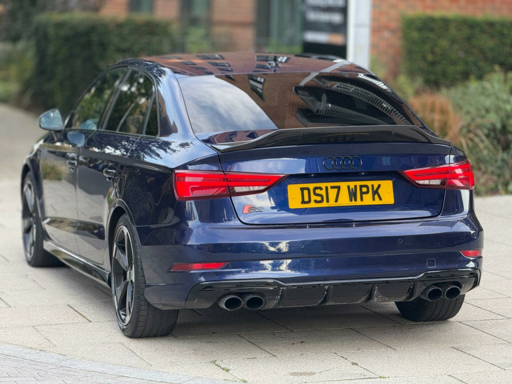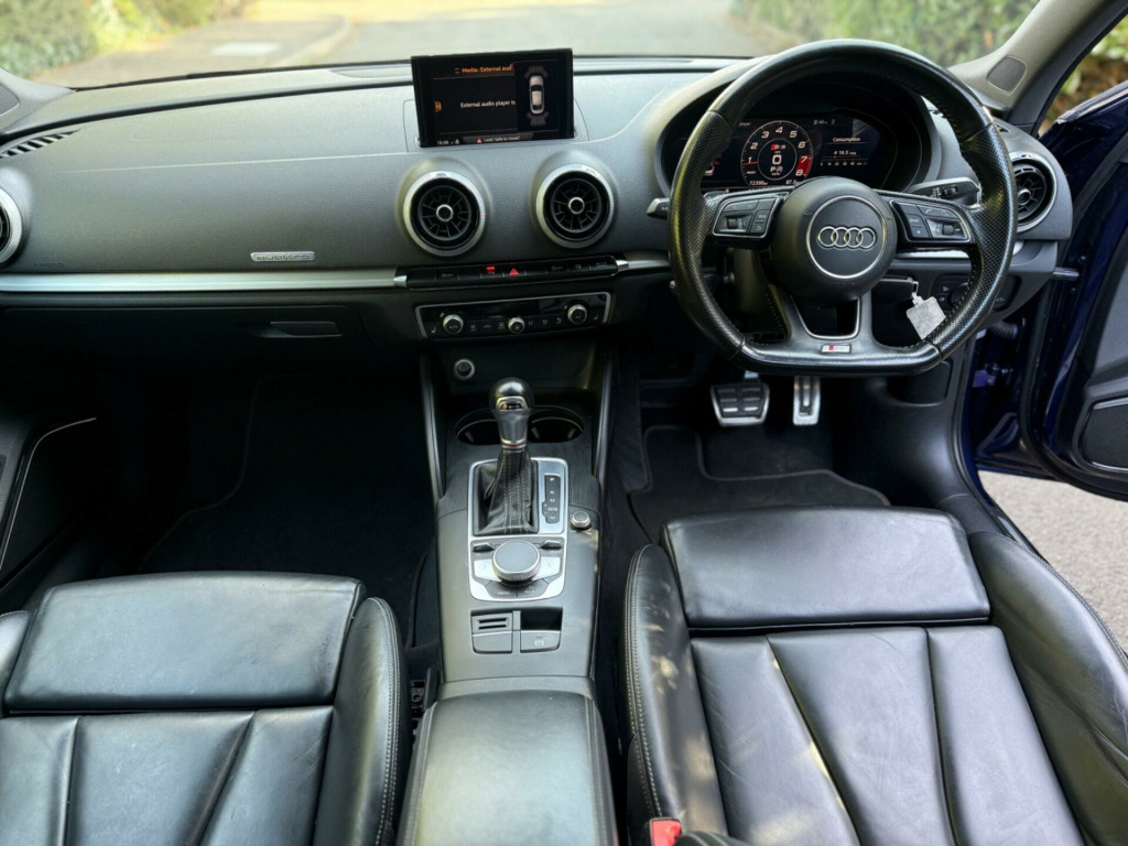 HPI CLEAR SERVICE HISTORY ENGINE AND GEARBOX WARRANTY AVB 1 YEAR AA BREAKDOWN COVER FINANCE AVAILABLE NATIONWIDE DELIVERY AVAILABLE SMOKE FREE PET FREE - LONG MOT - INSPECTION REPORT IMMACULATE CONDITION hi mfort and sound package, inlays - matt brushed aluminium - illuminated design, privacy glass, driver assistance package, headlights - high-beam assist, 19in alloy wheels - 5 twin spoke star design in contrast grey with diamond cut finish, 2 x usb charging ports and 1 x aux-in, 6-airbag system with knee airbag for driver, aluminium interior elements, aluminium-effect door mirror housings, anti theft locking wheel bolts, anti-theft alarm, audi beam, audi connect infotainment services - 3 month trial, audi drive select, audi magnetic ride, audi smartphone interface, audi sound system, bluetooth interface, body coloured door mirrors, brake calipers - black with s3 logo, cd drive, child locks - manual, colour drivers information system - dis, cruise control, dab digital radio, door mirrors - electrically adjustable and heated with integrated led side indicators, dual-zone electronic climate control, esc - electronic stabilisation control inc abs - asr and edl, electric windows - front and rear, electromechanical parking brake, exhaust tailpipe - dual-branch oval twin with chrome finish, first aid kit, front centre armrest, front and rear floor mats, headlights washers, heated front seats, isofix child seat mounting and top tether, illuminated door sill trims with s logo, immobiliser, inlays - matt brushed aluminium, instrument dials with s3 logo, led headlights with led rear lights and dynamic rear indicators, led interior light package, light and rain sensor, luggage compartment - lashing points x4, mmi navigation - sd card based, mmi radio plus with 7in electrically retractable colour mmi screen, manual front seat adjustment, non-smoking package, pedals in stainless steel, platinum grey s grille with chrome plated finish, progressive steering, remote central locking with 2 fold away keys, s design body styling, s sport suspension, seat belt monitoring, seat belt reminder for all seats, seats - split folding rear - 60-40, space saver spare wheel, sport side air inlet grille and diffuser insert, steering wheel - 3-spoke leather-multifunction-flat bottomed-shift paddles, storage compartments in the door side trims-centre console-under drivers seat, storage package, tool kit and car jack, tyre pressure monitoring system, warning triangle, window surrounds - aluminium