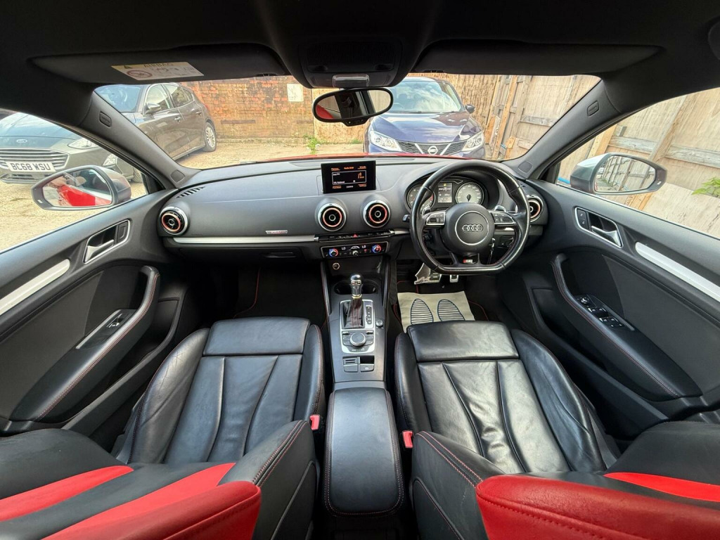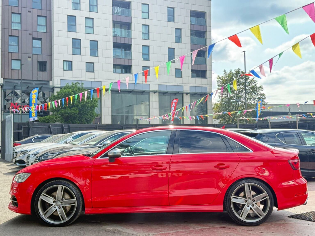 SELECT MOTORS IS DELIGHTED TO OFFER YOU THIS EYE CATCHING AUDI S3 4DR IN AUDI INDIVIDUAL MISANO RED METALLIC COLOUR AND COMPLEMENTED WITH 19IN 5 TWIN SPOKE STAR DESIGN ANTHRACITE PARTLY POLISHED ALLOY WHEELS. THIS VEHICLE HAS AN IMPRESSIVE SPECIFICATION WHICH INCLUDES THE FOLLOWING; BLUETOOTH CONNECTIVITY FOR PHONE AND MEDIA, DAB-FM/AM RADIO, FRONT AND REAR PARKING DISTANCE CONTROL SENSORS, FRONT HEATED SEATS WITH LUMBAR SUPPORT, CRUISE CONTROL, AUDI DRIVE SELECT, 3 SPOKE LEATHER TRIMMED STEERING WHEEL, DUAL ZONE ELECTRONIC CLIMATE CONTROL, FRONT FOG LIGHTS, ELECTRICALLY ADJUSTABLE HEATED DOOR MIRRORS, BI XENON PLUS HEADLIGHTS , 5.8 INCH COLOUR DISPLAY SCREEN, TYRE PRESSURE WARNING SYSTEM. THIS VEHICLE IS ULEZ EXEMPT. WE ARE OFFERING NATIONWIDE DELIVERY ON ALL VEHICLE (PLEASE GET IN TOUCH DIRECTLY FOR DETAILS). WE CAN ALSO CONDUCT VIRTUAL VIEWINGS AND ACCOMMODATE ANY REQUESTS YOU MAY HAVE. ALL OUR ADVERTISED STOCK IS TEST-DRIVEN, INSPECTED BY OUR MECHANIC TO MAKE SURE OUR CUSTOMERS DRIVE AWAY WITH THE BEST QUALITY CARS. WE CAN PROVIDE A VIDEO WALK AROUND THIS VEHICLE UPON REQUEST. ALL OF OUR VEHICLES ARE SUPPLIED WITH A 3 MONTHS WARRANTY WITH EXTENDED OPTION. 12 MONTHS FREE AA BREAKDOWN COVER. FINANCE AVAILABLE.