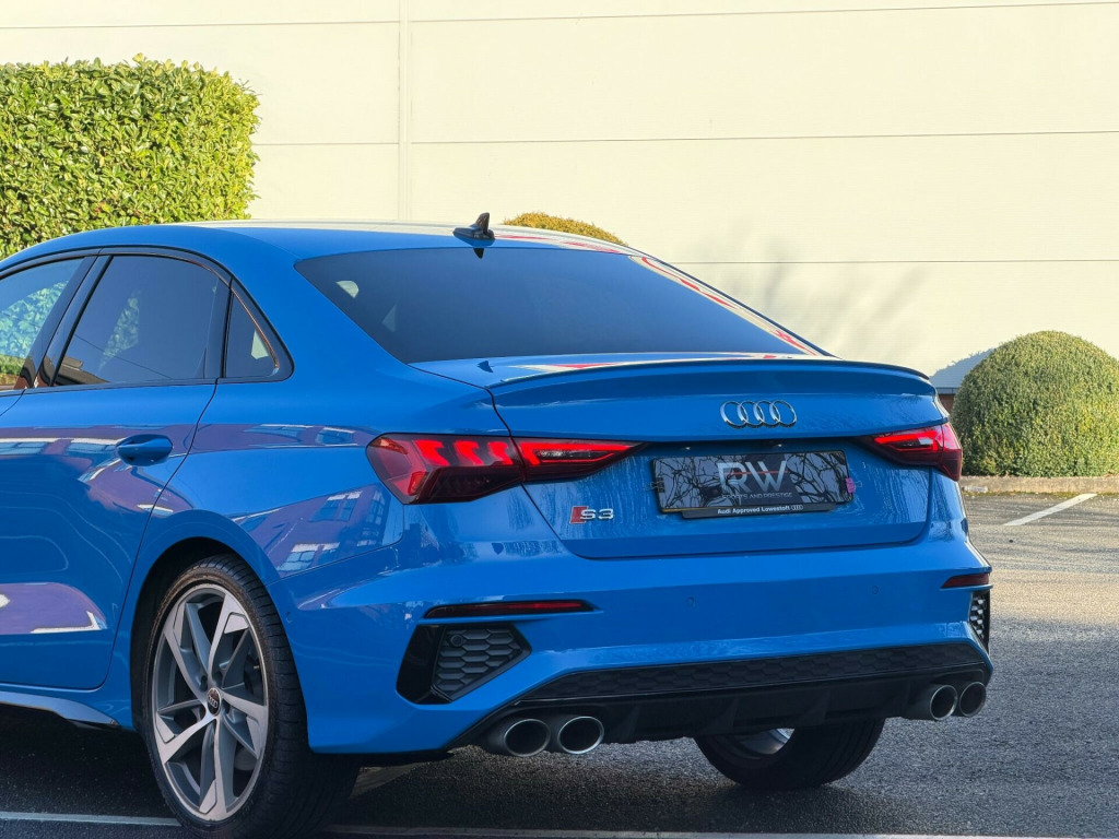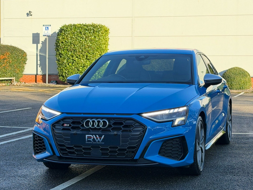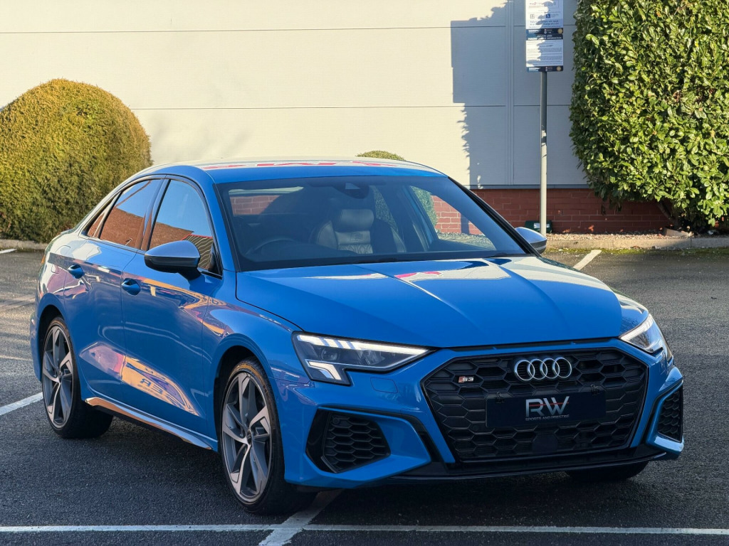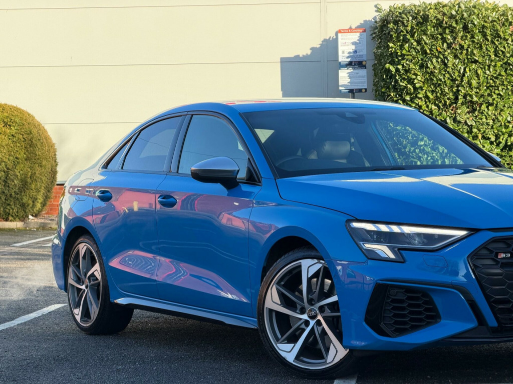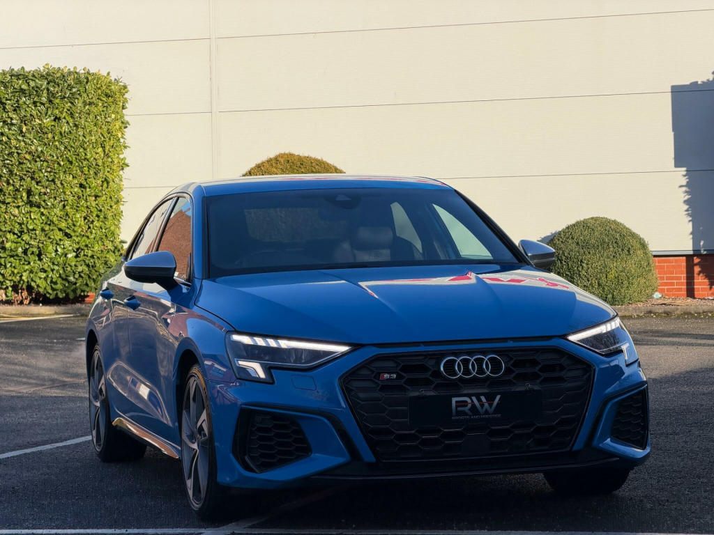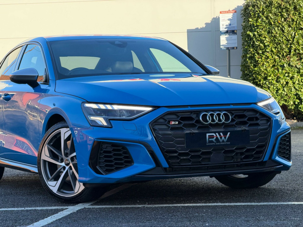 2022 AUDI S3 2.0 TFSI S TRONIC QUATTRO EURO 6| 1 OWNER NEW| BANG & OLUSFEN SOUND SYSTEM | 19” ALLOYS | 1 OWNER FROM NEW| 12 MONTHS MOT| JUST BEEN SERVICED | 2022 MODEL| SATNAV| HEATED SEATS| AUDI SERVICE HISTORY | TURBO BLUE| FULL LEATHER INTERIOR | SATNAV| BLACK EDITION STYLING PACKAGE| PRIVACY GLASS| FINANCE ARRANGED £0 DEPOSIT NEEDED| PART EXCHANGE WELCOME | LOW MONTHLY PAYMENTS| HP & PCP FINANCE DEALS AVAILABLE| RAC APPROVED DEALERSHIP| HIGHLY RATED FOR OUR CUSTOMER SERVICE OVER 5 STAR REVIEWS ON AUTOTRADER |. 12v Socket and Storage Compartment in Front Centre Console, 18in Alloy Wheels - 10-Spoke Star Style, 2 USB-C Ports with Charge and Data Functions, 6 Passive Loudspeakers, Airbags - Driver and Front Passenger with Passenger Airbag Deactivation, Aluminium Interior Elements, Aluminium Look Door Mirror Housings, Aluminium Window Trims, Anti Theft Locking Wheel Bolts, Anti-Theft Alarm, Audi Beam, Audi Connect Emergency Call and Service, Audi Connect Navigation and Infotainment Services Plus (3 Year Subscription From New), Audi Drive Select, Audi Pre-Sense Front with Pedestrian and Cyclist Recognition, Audi Smartphone Interface, Audi Virtual Cockpit, Auto Dimming and Frameless Rear View Mirror, Automatic Start-Stop System with Recuperation, Bluetooth Interface, Brake Calipers Painted in Glossy Black, Child Locks - Manual, Cloth Headlining in Black, Collision Avoidance Assistant, Cruise Control, DAB Digital Radio, Dual-Branch Oval Twin Tailpipes in Chrome-Plated Finish, Dual-Zone Electronic Climate Control, ESC - Electronic Stabilisation Control inc ABS - ASR and EDL, Electric Windows - Front, Electronically Operated Child Locks, Exterior Mirrors - Electrically Adjustable - Heated and Folding - Automatically Dimming on Both Sides with Built-In LED Side Indicators - Including Automatic Kerb-Side Function for the Passenger-Side, First Aid Kit and Warning Triangle and 2 Safety Vests, Front Side Airbags with Head Airbags and Interaction Airbag, Front and Rear Centre Armrest in Leather, Front and Rear Floor Mats, Headlights Washers, Heated Front Seats, Hill Hold Assist, I-Size and Top Tether Child Seat Mounting for the Outer Rear Seats, Illuminated Door Sill Trims with Aluminium Inserts and S Logo, Illuminated Vanity Mirrors, Inlays - Dark Spectrum Aluminium, LED Headlights with LED Rear Lights and Dynamic Rear Indicators, Lane Departure Warning, Light and Rain Sensor, Luggage Compartment Floor Covering, MMI Navigation Plus with High Resolution 10.1in Touchscreen Colour Display, Manual Boot Compartment Lid, Pedals in Stainless Steel and Footrest in Black, Privacy Glass, Privacy Glass - Dark-Tinted Rear Window - Rear Door and Side Window., Progressive Steering, Rear Parking Sensors, Remote Central Locking, S Sport Suspension, S3 Design Body Styling, Seat Belt Monitoring, Split-Folding Rear Seat Bench can be Split 40: 20: 40 or Fully, with Centre Armrest and Cup Holders, Steering Wheel - Sports Contour Leather-Wrapped with Multi-Function Plus 3-Spoke - Shift Paddles Flat-bottomed, Storage Package, Tool Kit, Tyre Pressure Loss Indicator, Tyre Repair Kit, Voice Control System with Natural Language Interaction, Windscreen with Acoustic Glazing, 19in Alloy Wheels - 5-Arm Trapezoid Design in Titanium Matt Grey - Diamond Cut Finish, Comfort and Sound Package.
