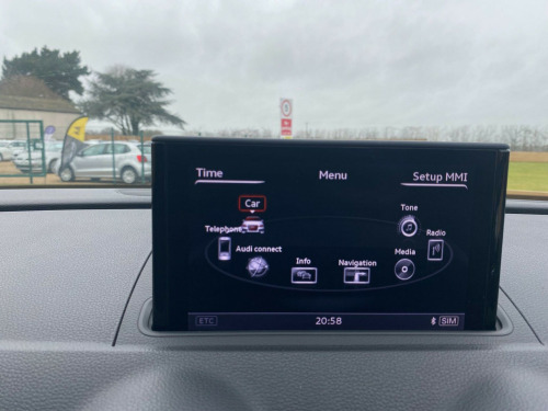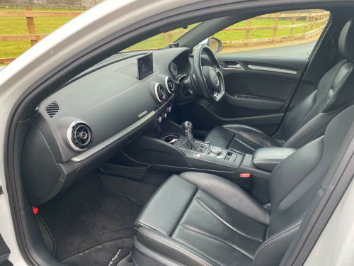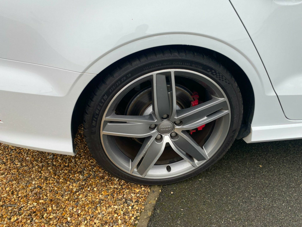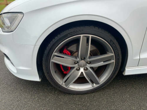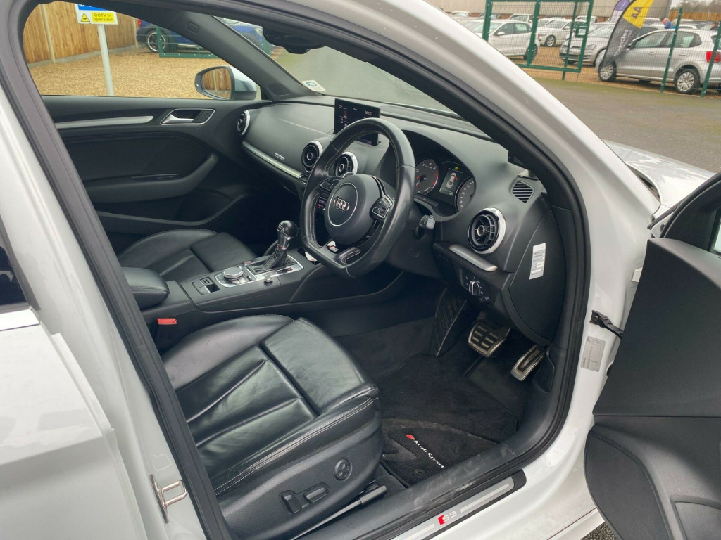 . 12V Power Socket - Luggage Compartment, 12V Power Socket - Rear Centre Console, 19in Alloy Wheels - 5-Twin-Spoke Star Design Anthracite Partly Polished, 2 x SDXC Card Readers, ABS - Anti-Lock Braking System, AMI - Audi Music Interface, ASR - Anti Slip Regulation, Active Bonnet, Adaptive Brake Lights, Air Humidity Sensor, Air Vents - Aluminium Look, Airbags - Driver, Airbags - Drivers Knee, Airbags - Front Passenger, Airbags - Front Side, Airbags - Sideguard Head System Rear, Alarm - Thatcham Category 1, Aluminium Interior Elements, Aluminium-Effect Door Mirror Housings, Anti Theft Locking Wheel Bolts, Audi Drive Select, Audi Magnetic Ride, Body Coloured Door Mirrors, Brake Calipers - Black with S3 Logo, Child Locks - Manual, Cloth Headlining in Black, Coat Hooks - B Pillar - Both Sides, Colour Drivers Information System - DIS, Cup Holders - Front, Cup Holders - Rear, DAB Digital Radio, Display Screen Colour - 5.8in, Door Mirrors - Built-in LED Side Indicators, Door Mirrors - Electrically Adjustable and Heated, Door Sill Trims - Aluminium with S3 Logo, Dual-Zone Electronic Climate Control, EBD - Electronic Brakeforce Distribution, EDL - Electronic Differential Lock, ESP - Electronic Stability Programme, Electric Windows - Front and Rear, Electromechanical Parking Brake, Exhaust Tailpipe - Dual-Branch Oval Twin, First Aid Kit, Floor Mats - Front and Rear in Velour, Fog Lights - Chrome Surrounds, Front Centre Armrest, Front Fog Lights, Front Passenger Airbag Deactivation Switch, Front Sun Visors with Illuminated Vanity Mirrors, Gear Knob - Silver Stitching, Headlights - Automatic Dynamic Range Control, Headlights - Bi-Xenon Plus, Headlights - Washer System, Heated Windscreen Washer Jets, Hydraulic Brake Assist, ISOFIX Child Seat Mounting for Front Passenger, ISOFIX Child Seat Mounting for Rear Seats, Inlays - Matt Brushed Aluminium, Instrument Dials in Grey with White Needles and Aluminium Look Needle Hub, Interior Lighting, LED Daytime Running Lights, LED Rear Lights, Luggage Compartment - Additional Multi-Fastening Point, Luggage Compartment - LED Light, Luggage Compartment - Lashing Points x4, MMI Radio Plus, Mobile Telephone Preparation - Bluetooth Interface, Net in the Side Compartment, Pedals and Footrest - Stainless Steel, Progressive Steering, Radiator Grille - Platinum Grey with Horizontal Double Chrome Bars, Rear Diffuser - Double Chrome Bar at the Top of the Diffuser, Remote Central Locking, Rest Recommendation System, S Logos on the MMI, S3 Front Bumper, Seat Belt Reminder for All Seats, Seats - Backrests - Storage Net, Seats - Heated Front, Seats - Split Folding Rear - 60-40 or All, Seats - Sports, Secondary Collision Brake Assist, Smoking Package Inc 12V Socket, Space Saver Spare Wheel, Speakers x8, Spoiler - S3 Design, Steering Wheel - 3-Spoke Leather, Steering Wheel - Contrast Stitching, Steering Wheel - Flat Bottomed, Steering Wheel - Gear-Shift Paddles, Steering Wheel - Multi-function, Storage Comparment Under the Rear Seat, Storage Compartments in the Door Side Trims - in the Centre Console and under the Front Drivers Seat, Storage Net in the Front Passenger Footwell, Storage and Luggage Compartment Package, Suspension - S Sports - Dynamic Spring-Damper Settings and Lowered by 25mm, Tool Kit, Tow Away Protection and Interior Monitoring, Two Fold Away Keys, Voice Control - Telephone, Warning Triangle, Window Surrounds - Aluminium Side Windows, Reversing Camera, Privacy Glass, Electrically Adjustable Front Seats.