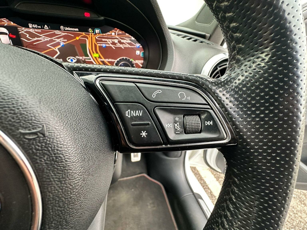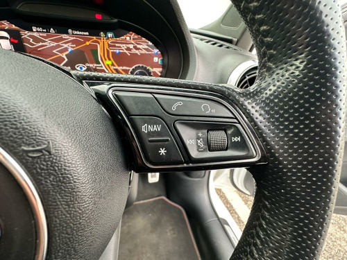 This 2017 Audi S3 TFSI offers an exceptional blend of performance and advanced technology. Powered by a potent 2.0 litre petrol engine and featuring Audis renowned four wheel drive system, this Euro 6 compliant model delivers exhilarating driving dynamics. Inside, youll find a wealth of desirable features, including a comprehensive Technology Package that incorporates Bluetooth connectivity and wireless phone charging, ensuring you stay connected on the go. Manoeuvring is made easier with a rear view camera and parking assistance, while the panoramic glass sunroof floods the cabin with light. For added convenience and safety, this S3 is equipped with adaptive cruise control, which includes Pre-Sense Front technology. Experience impressive efficiency with a fuel economy of up to 44 miles per gallon, a notable advantage for a vehicle of this calibre. Furthermore, its acceleration from 0 to 62 miles per hour in just 4.6 seconds demonstrates its superior performance capabilities compared to many other cars in its class. This Audi S3 TFSI is designed to provide a refined and dynamic driving experience, combining everyday practicality with thrilling performance.