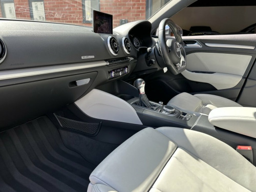 STUNNING PANTHER BLACK AUDI S3 SALOON | FINE NAPPA S LINE FULL HEATED LEATHER INTERIOR | 19" GLOSS GREY ALLOY WHEELS | PRIVACY GLASS | PADDLE SHIFT AUTO | CRUISE CONTROL | BLUETOOTH | PARKING SENSORS | XENON HEADLAMPS | GENUINE LOW MILEAGE CONDITION THROUGHOUT | SERVICE HISTORY | A LOVELY SPEC HIGH PERFORMANCE PREMIUM SALOON | Now available at Goldstone Cars, this 2014 Audi S3 Saloon is a true driver's machine — blending blistering turbocharged performance with premium comfort and a commanding road presence. Finished in rare Panther Black, this example stands out with its deep, high-gloss finish and aggressive stance on 19" Gloss Grey Alloy Wheels. Powered by Audi's renowned 2.0 TFSI engine and backed by the Quattro all-wheel-drive system, this S3 delivers rapid acceleration, exceptional handling, and confident grip in all conditions. Performance & Driving Dynamics: 2.0 TFSI Turbocharged Petrol Engine – 296 BHP S Tronic 6-Speed Dual-Clutch Automatic Gearbox with Paddle Shift Quattro All-Wheel Drive – legendary traction and control Sport Suspension – sharp, planted, and refined Genuine Low Mileage – enthusiast-owned and carefully maintained Exterior & Interior Features: Stunning Panther Black Paintwork – deep metallic finish with subtle sparkle 19" Gloss Grey Alloy Wheels – aggressive styling and precise stance Fine Nappa Leather Interior – full S Line sport seats with heating Privac 18in Alloy Wheels - 5-Arm Structured Des, Satellite Navigation System - SD Card Ba, Cruise Control, Fine Nappa Leather - Sports Seats - Luna, Privacy Glass, Panther Black, 12V Power Socket - Centre Console, 12V Power Socket - Luggage Compartment, 12V Power Socket - Rear, 19in Alloy Wheels - 5-Twin-Spoke Star De, 50 Station Memory with Dynamic Station L, ABS - Anti-Lock Braking System, AMI - Audi Music Interface, ASR - Anti Slip Regulation, Active Bonnet, Adaptive Brake Lights, Air Humidity Sensor, Air Vent Sleeves - Aluminium Look, Airbags - Driver, Airbags - Drivers Knee, Airbags - Front Passenger, Airbags - Front Side, Airbags - Head Level Side For Front and , Alarm - Thatcham Category 1,