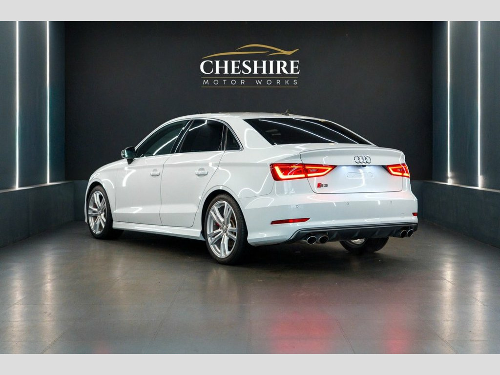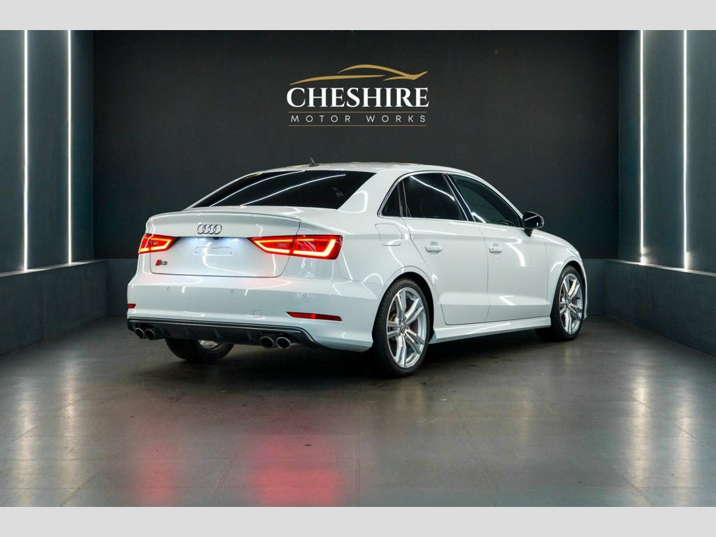Cheshire Motor Works are delighted to present this stunning Audi S3 Saloon finished in the stunning Glacier White Metallic paint. This vehicle features a 2.0 petrol engine paired with a 7 speed automatic gearbox. The S3 meets the latest Euro 6 emission requirements. This Audi S3 is comprehensively equipped with a range of sought-after features including; * Keyless Entry * Keyless Start * Reversing Camera * Parking Sensors * Privacy Glass * Adaptive Cruise Control * Electric Parking Brake * 18" Alloys * Driving Modes (Efficiency/Comfort/Auto/Dynamic/Individual) * Auto Dimming Mirror * Folding Mirrors * Heated Mirrors * Audi Media Interface * FM & AM Radio Connectivity * TV & Navigation Fitted * Sport Seats Half Cloth/Half Leather with Contrasting Red Stitching *Additionally offering a high level of specification as standard, ensuring both luxury and practicality. For added peace of mind, this vehicle comes with service history, and has 1 key. At Cheshire Motor Works, we take exceptional care in our vehicle preparation standards. This Audi S3 has passed an extensive 156-point inspection heath check, has been fully detailed, and has also recently been serviced. It will be supplied with a new 12-month MOT. Additionally, we will provide a complimentary platinum 6-month warranty with this vehicle, if the manufacturer's warranty is no longer valid. You have the option to extend this coverage up to 48 months for continued peace of mind. Paint protection optio 10.25in Touchscreen Satellite Navigation, 12V Power Socket - Front - Centre Consol, 17in Alloy Wheels, 3 x Passenger Assist Grips, 4.2in Supervision Colour Cluster Display, 60-40 Split Folding Rear Seats, 7-Speaker Audio System, ABS with Electronic Brakeforce Distribut, Alarm System, All-Round 3-Point Seatbelts, All-Round Electric Windows with Driver a, All-Round Height Adjustable Headrests, Android Auto with Voice Control, Apple CarPlay with Voice Control, Auto Dimming Rear-View Mirror, Automatic Defog System, Automatic Headlight Control, Black High Gloss Front Console Garnish a, Bluetooth with Voice Recognition and Mus, Body Coloured Bumpers, Body Coloured Door Mirrors, Body Coloured Exter