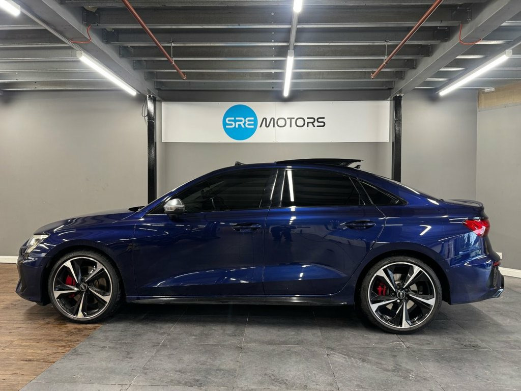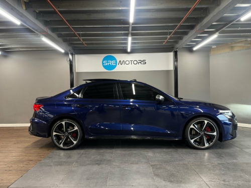 Audi S3 2.0 petrol finished in metallic Navarra blue with 51,982 miles, is now available at SRE Motors. The vehicle is in great condition and has been well maintained by the previous owner. The vehicle has had a full vehicle inspection, it will also come with a 9 month minimum MOT, 3 months warranty and 12 months breakdown cover. This 2021 Audi S3 TFSI offers an exhilarating driving experience with its powerful 2.0 litre petrol engine and four wheel drive system. As a Euro 6 compliant vehicle, it meets stringent emission standards. This S3 is equipped with a host of desirable features, including a panoramic sunroof that can be opened for an airy cabin feel, and a Comfort and Sound Package that enhances your journey with a luxury branded sound system, heated seats, and comprehensive parking assistance including front and rear sensors and a rear camera. The striking 19 inch alloy wheels in a titanium matt grey trapezoid design with a diamond cut finish, red brake calipers, and an extended ambient lighting pack further elevate its sophisticated appeal. The performance of this Audi S3 is truly impressive, achieving 0 to 60 miles per hour in just 4.8 seconds. This rapid acceleration demonstrates its capability and sets it apart from many other vehicles in its class. The combination of its dynamic performance, advanced technology, and premium comfort features makes this 2021 Audi S3 TFSI a compelling choice for those seeking a refined and engaging drive. Contact us today to arr Brake Calipers - Red, 19in Alloy Wheels - 5-Arm Trapezoid Desi, Navarra Blue, Comfort and Sound Package, Extended Ambient Lighting Pack, Panoramic Sunroof, 12v Socket and Storage Compartment in Fr, 18in Alloy Wheels - 10-Spoke Star Style, 2 USB-C Ports with Charge and Data Funct, 6 Passive Loudspeakers, Airbags - Driver and Front Passenger wit, Aluminium Interior Elements, Aluminium Look Door Mirror Housings, Aluminium Window Trims, Anti Theft Locking Wheel Bolts, Anti-Theft Alarm, Audi Beam, Audi Connect Emergency Call and Service, Audi Connect Navigation and Infotainment, Audi Drive Select, Audi Pre-Sense Front with Pedestrian and, Audi Smartphone Interface, Audi Virtual Cockpit, Auto Dimm