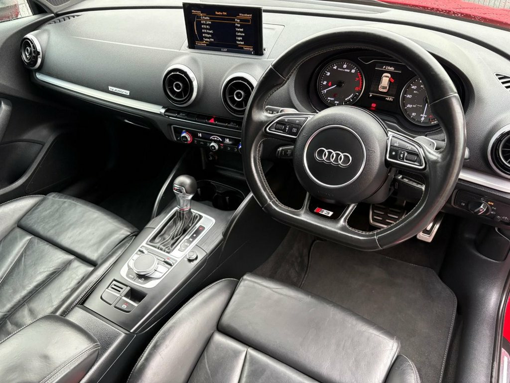 12V Power Socket - Centre Console, 12V Power Socket - Rear, 18in Alloy Wheels - 5-Twin-Spoke Star De, 2 x SDXC Card Readers, ABS - Anti-Lock Braking System, AMI - Audi Music Interface, ASR - Anti Slip Regulation, Adaptive Brake Lights, Airbags - Driver, Airbags - Drivers Knee, Airbags - Front Passenger, Airbags - Front Side, Airbags - Head Level Side For Front and , Alarm - Thatcham Category 1, Aluminium Interior Elements, Aluminium-Effect Door Mirror Housings, Anti Theft Locking Wheel Bolts, Audi Drive Select, Audio Output - 80 Watts, Brake Calipers - Black with S3 Logo, Car Jack, Child Locks - Manual, Cloth Headlining in Black, Coat Hooks - B Pillar - Both Sides, Colour Drivers Information