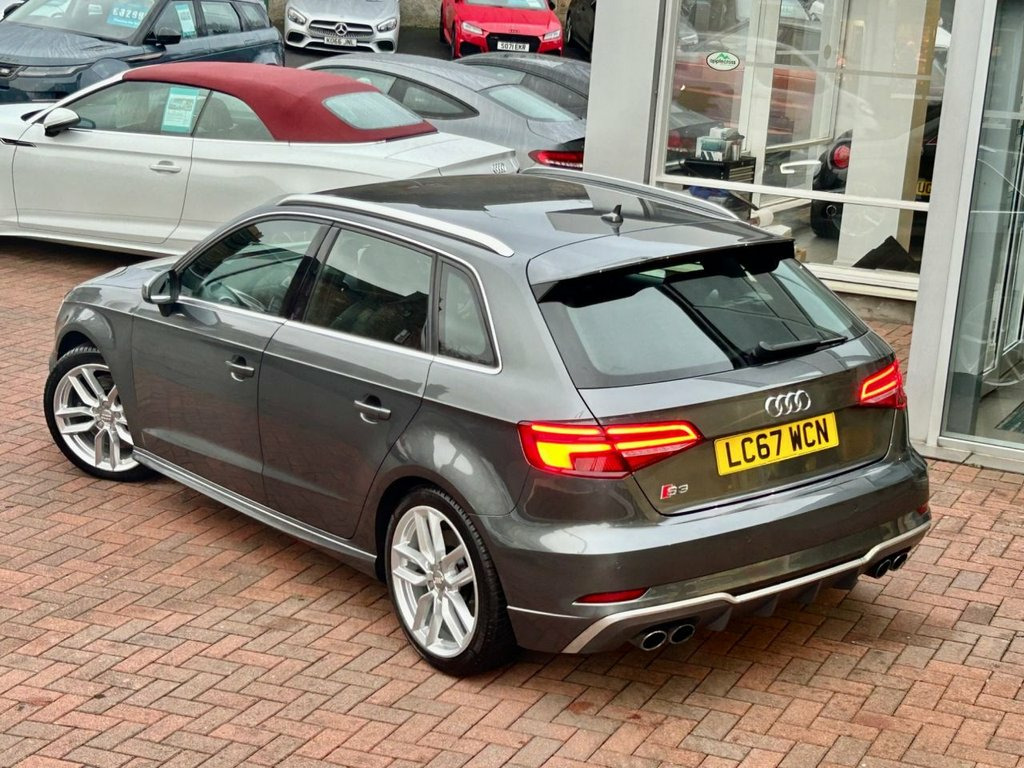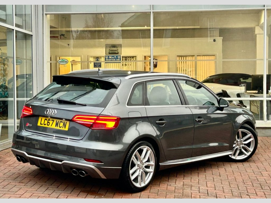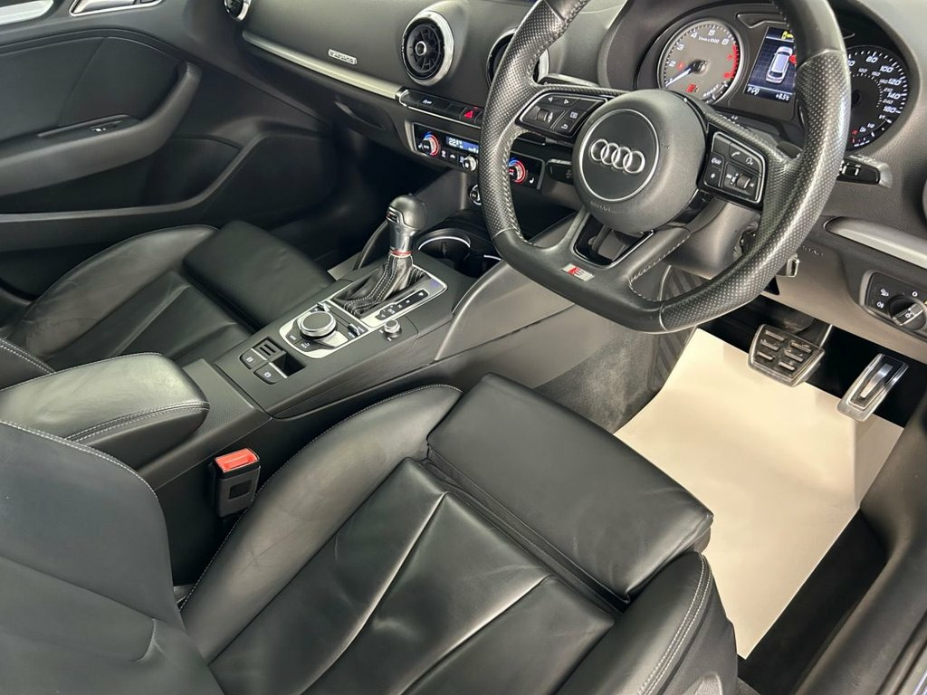 Great Value Now and Incredible Fun to Drive! Our S3 is a 2 Owner car and is Presented in Daytona Grey with Optional Black Nappa Leather Upholstery and 18 Inch Double Spoke Alloy Wheels. Trim Level Features all you need and includes Bluetooth and Multi-media Connectivity, Satellite Navigation, Apple Car Play, Cruise Control, Climate control, 3 Stage Seat Heating, Electric and Heated Mirrors, Reverse Parking Sensors and Switchable Drive Modes via Audi's Drive Select System. Supplied with Original Hand book pack and 2 Keys. A fresh service including Haldex oil change has also been carried out as part of our pre-sale preparation. 18in Alloy Wheels - 10-Spoke Design , Aluminium Roof Rails, Daytona Grey