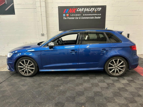 WE ARE DELIGHTED TO OFFER THIS LOVELY AUDI S3 WITH EXTRAS SUCH AS FULL LEATHER SEATS, REAR PARKING SENSORS AND MUCH MORE. THIS GEM OF CAR IS SUPPLIED WITH FULL AUDI DEALER SERVICE HISTORY, TWO KEYS AND A SUPERB MOT HISTORY. 2015 AUDI S3 2.0 TFSI Sportback 5dr is offered to you for sale in Sheffield, South Yorkshire, finished in blue this AUDI S3 2.0 TFSI Sportback 5dr is one of many handpicked used cars that used car dealer, NK Car Sales, Sheffield, South Yorkshire have available for sale. We are a family-owned company that prides itself on the quality of vehicles and all of them are carefully chosen, handpicked examples that are always HPI Clear for your peace of mind. We have an indoor showroom where you can view any potential purchase in total comfort and away from the elements. We offer all the usual used Car Dealer facilities such as Low-rate finance and extended warranties and operate a no-pressure environment where you can relax and enjoy good old-fashioned service with a smile. 12V Power Socket - Centre Console, 12V Power Socket - Rear, 18in Alloy Wheels - 5-Twin-Spoke Star De, ABS - Anti-Lock Braking System, Airbags - Driver, Airbags - Drivers Knee, Airbags - Front Passenger, Airbags - Front Side, Airbags - Head Level Side For Front and , Alarm - Thatcham Category 1, Aluminium Interior Elements, Aluminium-Effect Door Mirror Housings, AMI - Audi Music Interface, Anti Theft Locking Wheel Bolts, ASR - Anti Slip Regulation, Audi Drive Select, Brake Calipers - Black with S3 Logo, Car Jack, Colour Drivers Information System - DIS, Cup Holders - Rear x2, Cup Holders - x2 in Centre Console, DAB Digital Radio, Display Screen Colour - 5.8in, Door Handles - Chrome, Door Mirr