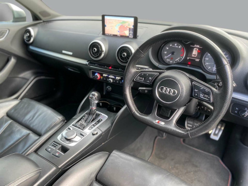 This 2016 Audi S3 TFSI offers an exceptional blend of performance and refinement, boasting a powerful 2.0 litre petrol engine and a sophisticated four wheel drive system for confident handling in all conditions. As a Euro 6 compliant vehicle, it meets stringent emission standards. Inside, you'll find the comfort of heated front seats and the luxurious feel of Fine Nappa Leather S embossed Super Sports Seats in black with striking Rock Grey stitching. The Technology Package, including Bluetooth connectivity, ensures you stay connected on the go, while the Park Assist system, complete with front and rear parking sensors, makes manoeuvring effortless.Experience exhilarating acceleration with this Audi S3, capable of reaching 0 to 62 miles per hour in a rapid 4.6 seconds, a performance that sets it apart from many other vehicles in its class. The striking LED headlights, complemented by LED rear lights and dynamic rear indicators, not only enhance visibility but also contribute to the car's modern aesthetic. Furthermore, the generous boot space provides ample room for luggage or shopping, making this S3 a practical choice for everyday use as well as spirited driving. orage package, warning triangle, voice control, tyre pressure monitoring system, tool kit and car jack, storage compartments in the door side trims-centre console-under drivers seat, steering wheel - 3-spoke leather-multifunction-flat bottomed-shift paddles, space saver spare wheel, seats - split folding rear - 60-40, seat belt monitoring, s3 roof spoiler, s3 front bumper, s sport suspension, s design body styling, remote central locking with 2 fold away keys, progressive steering, pollen filter, audi sound system, electromechanical parking brake, electric windows - front and rear, esc - electronic stabilisation control inc abs - asr and edl, dual-zone electronic climate control, door mirrors - electrically adjustable and heated, dab digital radio, cruise control, colour drivers information system - dis, cd drive, brake calipers - black with s3 logo, bluetooth interface, exhaust tailpipe - dual-branch oval twin with chrome finish, audi smartphone interface, audi drive select, audi connect infotainment services - 3 month trial, audi beam, anti-theft alarm, anti theft locking wheel bolts, aluminium-effect door mirror housings, aluminium window trims, aluminium interior elements, 6-airbag system with knee airbag for driver, 2 x usb charging ports and 1 x aux-in, led headlights with led rear lights and dynamic rear indicators, platinum grey s grille with chrome plated dual struts and s3 logo, pedals in stainless steel, non-smoking package, manual front seat adjustment, mmi radio plus with 7in electrically retractable colour mmi screen, mmi navigation - sd card based, luggage compartment - lashing points x4, light and rain sensor, led interior light package, 18in alloy wheels - 5 twin spoke star design in contrast grey with diamond cut finish, instrument dials with s3 logo, inlays - matt brushed aluminium, immobiliser, illuminated door sill trims with s logo, isofix child seat mounting and top tether for front passenger and outer rear seats, heated front seats, headlights washers, front and rear floor mats, front centre armrest, first aid kit