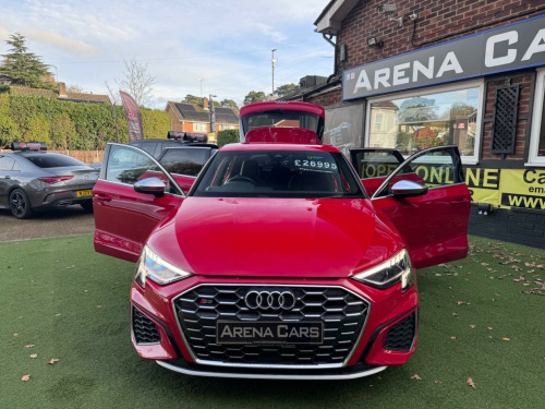6 months or 12 months warranty available on this car. Finance available subject to status. Front & Rear Parking SensorsBang & OlufsenTouch Screen Sat NavRear CameraQuad ExhaustsHeated Front SeatsApple CarPlayBluetooth & AudioFull Super Sports Leather Trim With Grey Diamond StitchingPark AssistCruise Control & Speed LimterLane Departure WarningBlack Brake Calipers With 'S' DecalsKeyless StartMulti Functional Flat Bottom Steering WheelDriver AssistKeyless StartStop StartRear SpoilerSide SkirtsDigital Dual Zone Climate Controlled AC IsofixFlappy PaddlesElectric Mirrors & Power FoldDAB/FM RadioSpeed WarningDistance WarningAudi Pre-SenseRest RecommendationService HistoryAuto Lights LEDRear Privacy GlassTraction ControlRain SensorsDrive Select''S'' Embossed SeatsRear DiffuserAluminium Door MirrorsRemote Central LockingElectric WindowsHeadlight WashersOn Board Trip ComputerImmobiliserAlarmAndroid AutoTwin Air BagsSide Air BagsPASRear HeadrestsAero WipersFront & Rear Centre ArmrestThis Audi S3 TFSI boasts a clear vehicle history check, offering you peace of mind. Under the bonnet, you'll find a powerful 2.0 litre petrol engine paired with a four wheel drive system, ensuring excellent traction and performance. This Euro 6 model is registered in 2020 and comes with an MOT valid until August 2026. Inside, you'll appreciate the convenience of a Bluetooth interface, dual zone electronic climate control, and heated front seats. The Audi Smartphone Interface, compatible with Apple CarPlay, keeps you connected, while rear parking sensors make manoeuvring easier.Experience exhilarating performance with the Audi S3's impressive 0-62mph acceleration of just 4.8 seconds, that sets it apart from many other vehicles in its class. This performance is complemented by a generous boot, making it a practical choice for everyday use and longer trips. The combination of its dynamic capabilities, advanced technology, and thoughtful features makes this Audi S3 a compelling option for those seeking a premium driving experience. '' diamond turned & grey alloys, front & rear parking sensors, bang & olufsen, touch screen sat nav, rear camera, quad exhausts, heated front seats, apple carplay, bluetooth & audio, full super sports leather trim with grey diamond stitching, park assist, cruise control & speed limter, lane departure warning, black brake calipers with 's' decals, keyless start, multi functional flat bottom steering wheel, driver assist, keyless start, stop start, rear spoiler, side skirts, digital dual zone climate controlled air con, isofix, flappy paddles, electric mirrors & power fold, dab/fm radio, speed warning, distance warning, audi pre-sense, rest recommendation, service history, auto lights led, rear privacy glass, traction control, rain sensors, drive select, ''s'' embossed seats, rear diffuser, aluminium door mirrors, remote central locking, electric windows, headlight washers, on board trip computer, immobiliser, alarm, android auto, twin air bags, side air bags, pas, rear headrests, aero wipers, front & rear centre armrest, metallic paintwork, chain no cambelt, cup holders, 16v, usb x 2