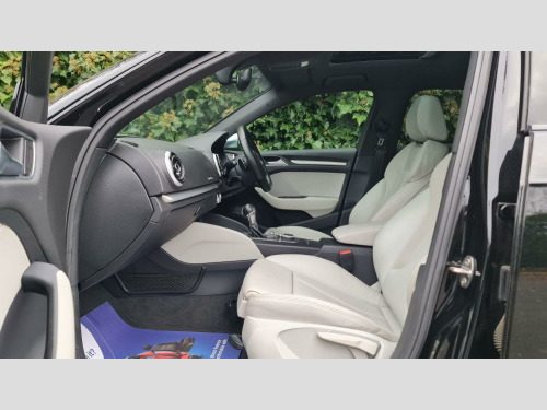 Presented in beautiful Mythos Black bodywork with contrasting Full Cream Leather Interior, this stunning S3 is packed with a fabulous list of equipment, options and extras. The car has covered only 51k miles from new and really does driive exceptionally well. , SPECIFICATION:, Cream Nappa Leather Sports Seats (HEATED)... Audi Multi-Media Interface (MMI) with Satellite Navigation, CD, USB, AUX and 2 x SD Card Slots... Bluetooth Handsfree and Audio Streaming... Dual Zone Digital Climate Control with Auto A/C... Auto-Activating Bi-Xenon Headlights with LED DRLs (Daytime Running Lights)... Multi-Function Flat-Bottom Leather Steering Wheel... Reverse Parking Sensors... Cruise Control with Speed Limiter... Audi Drive Select Driving Modes... Power Folding Mirrors... Privacy Tinted Glass... 19 S3 Rotary Alloy Wheels... Red Brake Calipers... 2 x RCL Key Fobs... and a long list of additional standard features. The car is also Euro 6 - ULEZ complaint. , MOT:, Comes with a new 12 month MOT. , SERVICE HISTORY:, Full Service History (including S-Tronic Gearbox Service), and comes with an additional fresh service prior to sale. , WARRANTY:, This S3 comes supplied to you with a nationwide Warranty plan included., , FINANCE:, Yes, finance packages available - Quotes and proposals can be done over the phone., , PART EXCHANGE:, Yes, all part exchange vehicles are welcome.