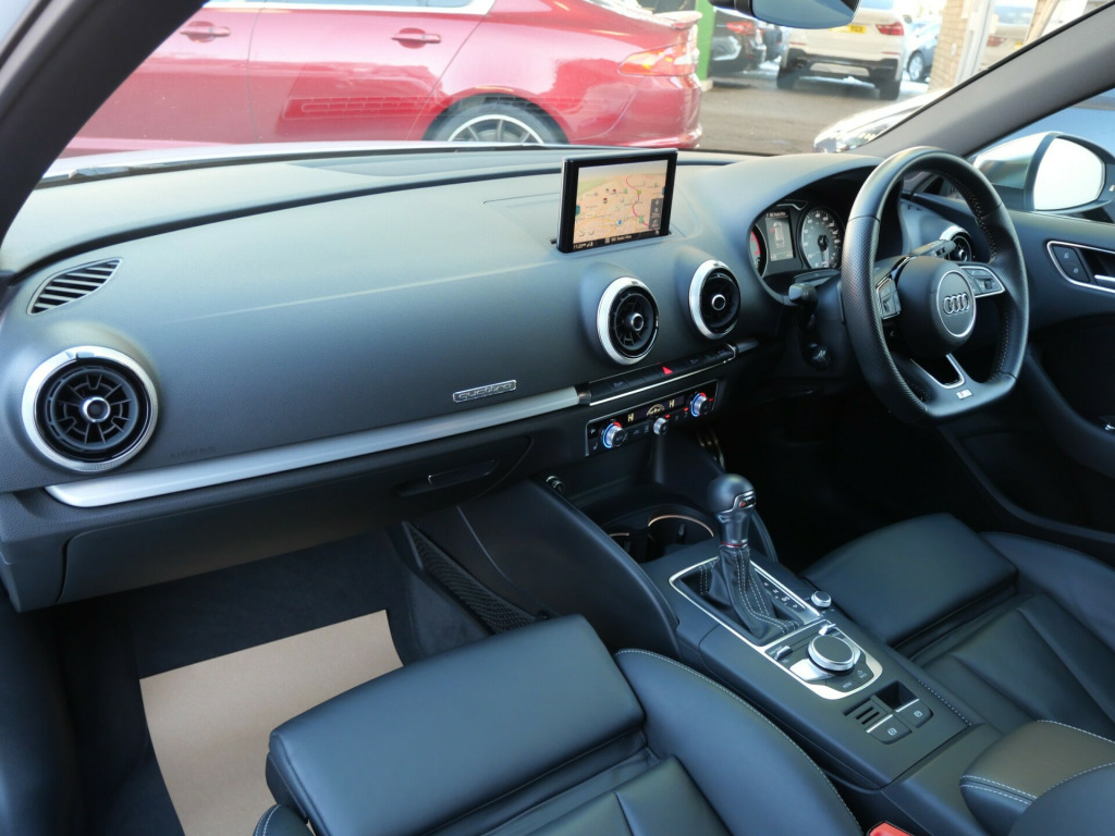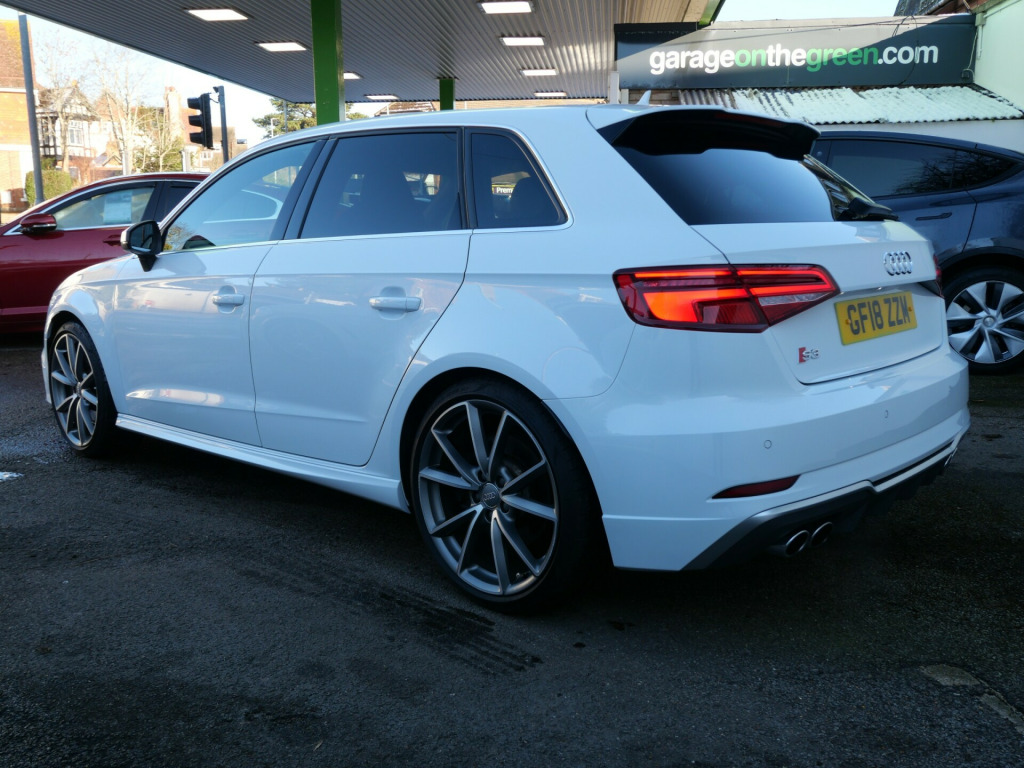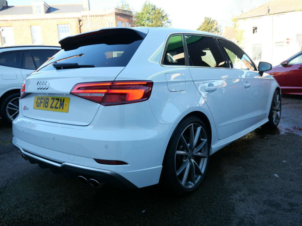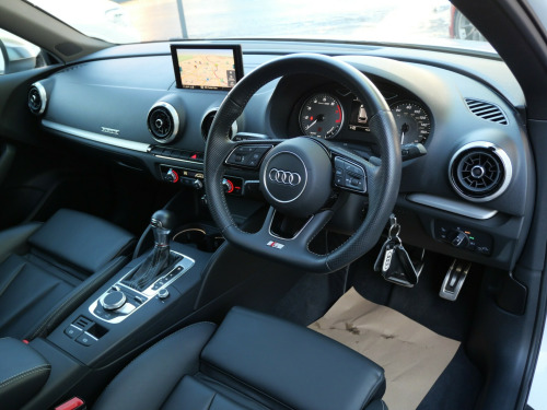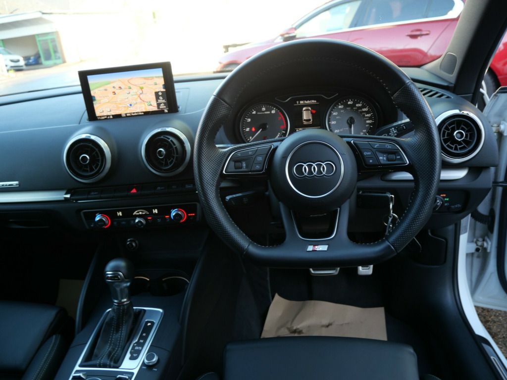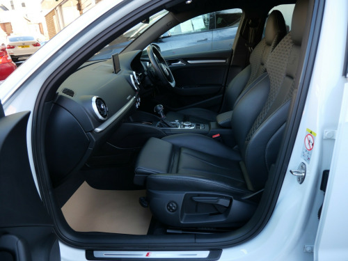 £3,195 Of Optional Equipment,Audi Magnetic Ride £99519? x 8.0J ?5-V-spoke? design alloy wheels in matt titanium look, diamond cut finish with 235/35 R19 tyres £900Front Super Sport seats with 'S' embossed logo in Fine Nappa leather £650Privacy glass £375Door mirrors (folding with auto-dimming function) £275Glacier white, metallic £0Total Price of Optional Equipment £3,195Stunning Audi S3 S Tronic In Glacier White Metallic With Only 14000 From New, Great Spec & Full Audi Service History, 9.9% APR Finance Available. Buy This Car Online Using Our Simple Click & Collect Service Or Free Home Delivery Within A 60 Mile Radius (Longer distance Delivery Charges Apply) All Vehicles Are Sanitised Before Collection Or Delivery. uminium window trims, aluminium-effect door mirror housings, anti theft locking wheel bolts, brake calipers painted in black with s3 logo at the front, electric windows - front, exhaust tailpipe - dual-branch oval twin with chrome finish, heated windscreen washer jets, platinum grey s grille with chrome plated dual struts and s3 logo, s design body styling, space saver spare wheel, 2 x usb charging ports and 1 x aux-in, audi connect infotainment services - 3 month trial, audi smartphone interface, audi sound system, bluetooth interface, cd drive, dab digital radio, mmi navigation - sd card based, mmi radio plus with 7in electrically retractable colour mmi screen, online media streaming - audi mmi connect app required, 6-airbag system with knee airbag for driver, anti-theft alarm, audi hill hold assist, esc - electronic stabilisation control inc abs - asr and edl, electromechanical parking brake, first aid kit and warning triangle, isofix child seat mounting and top tether, remote central locking with 2 fold away keys, seat belt monitoring, aluminium interior elements, auto-dimming rear-view mirror with light and rain sensor, cloth headlining in black, dual-zone electronic climate control, email and text messages can be displayed on your vehicles mmi, front centre armrest, front and rear floor mats, heated front seats, illuminated door sill trims with s logo, inlays - matt brushed aluminium, instrument dials with s3 logo, led interior light package, lashing points in luggage compartment, non-smoking package, pedals in stainless steel, split folding rear seat bench - 60-40 or fully, steering wheel - 3-spoke leather-multifunction-flat bottomed-shift paddles, storage compartments in the door side trims-centre console-under drivers seat, storage package, tool kit and car jack, audi beam, headlights washers, led headlights with led rear lights and dynamic rear indicators, audi drive select, colour drivers information system - dis, cruise control, progressive steering, rear parking sensors, s sport suspension, tyre pressure warning light