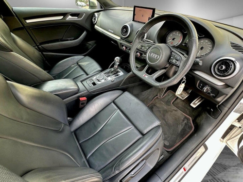 **DEPOSIT TAKEN**, This 2019 Audi S3 TFSI offers an exceptional ownership proposition with its remarkably low mileage of just 35,000 miles, having been cherished by only one owner. Powered by a potent 2.0 litre petrol engine and featuring Audis renowned four wheel drive system, this Euro 6 compliant model delivers exhilarating performance. Its impressive acceleration of 0-62mph in a mere 4.7 seconds is complemented by a suite of advanced features, including a Panoramic Glass Sunroof, Matrix LED Exterior Lighting Pack for superior visibility, and Park Assist with front and rear sensors for effortless manoeuvring. Safety is paramount, with Audi Pre Sense rear side airbags providing added peace of mind. The vehicle comes with all handbooks, Audi service history [inc Haldex service] with a service performed by ourselves prior to sale with new rear brakes and spark plugs and a new MOT prior to collection. The spacious boot offers ample room for all your luggage, making it a practical choice for everyday use and longer journeys alike. The combination of its impressive acceleration and the advanced lighting and parking systems clearly sets this Audi S3 apart from other vehicles in its class. This particular S3 TFSI represents a superb blend of performance, technology, and practicality, all presented in excellent condition with low mileage and single owner history. For further information call Anthony on: 07968 409091. Viewing by appointment. P/X, Competitive Finance Deals inc PCP, Extended Warranty options and home delivery available.