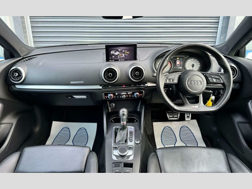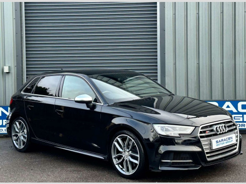 Audi S3 2.0 Sportback TFSI Quattro Semi-Auto 4WD 5dr finished in Agate Black with Ebony embossed S leather seats. 18 alloy wheels, DAB radio, Bluetooth, Audi Sound System, Audi Smartphone Interface, MMI Radio+ with 7electrically retractable screen, rear parking sensors, cruise control, electrically adjustable and heated door mirrors, heated windscreen washer jets, front and rear electric windows, LED DRLs, storage package, 3-Spoke flat bottom multifunction Nappa leather wrapped steering wheel, dual zone electric climate control, heated front seats. Here at Saracen Motor Group we have been awarded AA Platinum dealership recognition along with being nominated for best customer service by Autotrader for 2021,2022,2023,2024 & 2025. We are a 5-star dealership with over 600 5-star reviews across all internet platforms including Autotrader and have been regarded as one of the best dealerships to buy from in the UK. Our preparation team inspects each vehicle to the highest level possible for its age and mileage. You can rest assured your next car has been cared for to the highest standard. Service history, V5 and the HPI certificate will all be present on viewing and collection. With our location based in Battlesbridge, Essex you can enjoy a haggle-free buying experience where you can drive away the same day if prior arranged, additional fees apply please see our website for details.