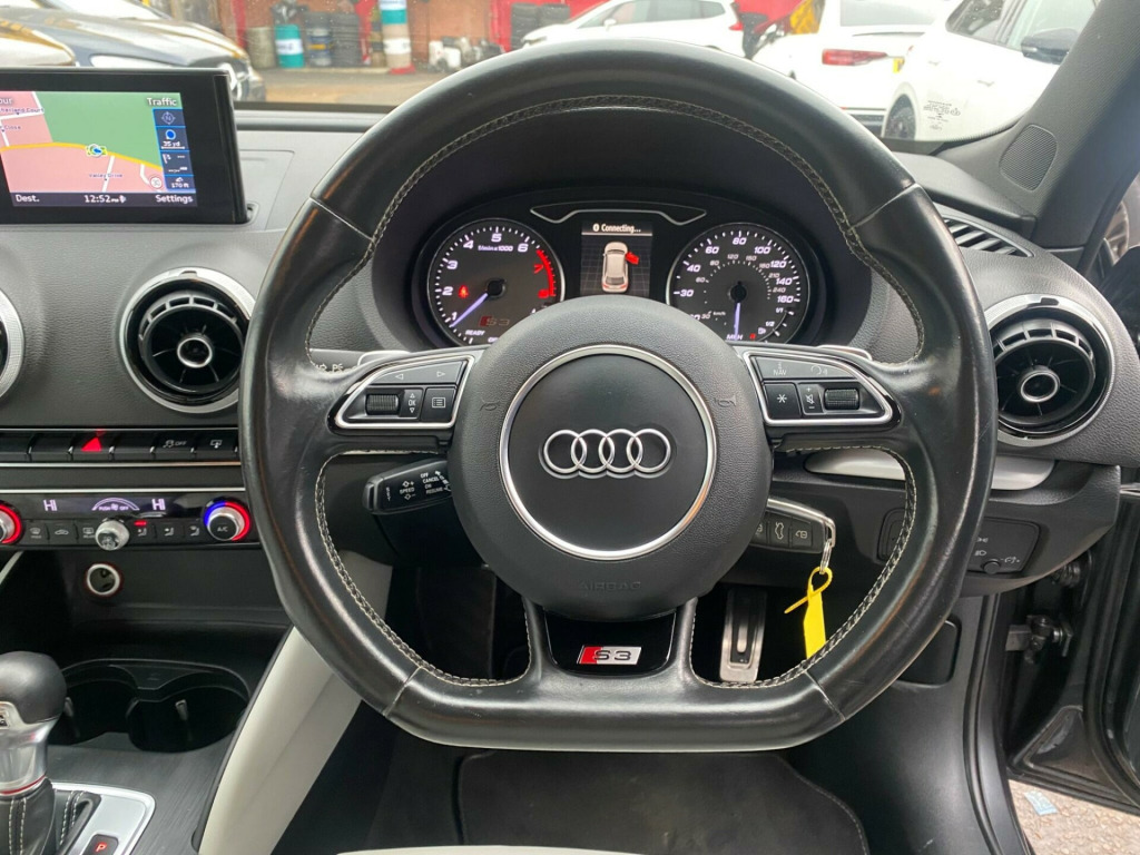 Cars Yard is delighted to present this stunning AUDI S3 SPORTBACK ((((((***FREE 6 MONTHS WARRANTY + 12 MONTHS FREE AA BREAKDOWN COVER ****))))) USED BY ONE FORMER KEEPER, SERVICE HISTORY, GREAT CONDITION IN AND OUT ***Excellent condition*** 5 Day Driveaway Insurance at Additional cost available for cars up to 10 years old STS, FINANCE AVAILABLE, CALL US ON 02045392878. AA Approved Dealer, FCA registered Dealer ng and olufsen sound system, cruise control, 12v power socket - centre console, 12v power socket - rear, 18in alloy wheels - 5-twin-spoke star design, 2 x sdxc card readers, abs - anti-lock braking system, ami - audi music interface, asr - anti slip regulation, adaptive brake lights, airbags - driver, airbags - drivers knee, airbags - front passenger, airbags - front side, airbags - head level side for front and rear, alarm - thatcham category 1, aluminium interior elements, aluminium-effect door mirror housings, anti theft locking wheel bolts, audi drive select, audio output - 80 watts, brake calipers - black with s3 logo, car jack, child locks - manual, cloth headlining in black, coat hooks - b pillar - both sides, colour drivers information system - dis, cup holders - x2 in centre console, dab digital radio, display screen colour - 5.8in, door mirrors - body coloured with integrated led indicators, door mirrors - electrically adjustable and heated, door sill trims - aluminium with s3 logo, dual-zone electronic climate control, ebd - electronic brakeforce distribution, edl - electronic differential lock, esp - electronic stability programme, electric windows - front and rear, electromechanical parking brake, first aid kit, front centre armrest, front fog lights, front passenger airbag deactivation switch, front sports seats, front and rear floor mats, full european map data, glovebox - illuminated, grab handles - dampered, head restraints - rear, headlights - automatic dynamic range control, headlights - bi-xenon plus, headlights washers, heat insulating glass, heated front seats, heated rear windscreen, heated windscreen washer jets, hydraulic brake assist, isofix child seat mounting for front passenger and rear outer seats, illuminated vanity mirrors, immobiliser, inlays - matt brushed aluminium, interior elements - air vents - aluminium, interior elements - frame around the inside door handle - aluminium, interior elements - glove compartment - aluminium, interior elements - window control switches - aluminium, interior lighting, led daytime running lights, led rear indicators, luggage compartment - illuminated, luggage compartment - lashing points x4, luggage compartment - side net, mmi radio, matt-brushed aluminium door trims, mobile telephone preparation - bluetooth interface, model and engine technology badges at rear, pedals in stainless steel, pollen filter, progressive steering, radiator grille - platinum grey with horizontal double chrome bars, rear diffuser, rear parcel shelf removable, remote central locking with 2 fold away keys, rest recommendation system, s design body styling, s sport suspension, s logos on the mmi and dis, s3 - instrument dials in grey with white needles and aluminium look needle hub, s3 front bumper, satellite navigation system - sd card based, seat belt reminder for all seats, seats - adjustment for cushion depth, seats - extendable thigh support, seats - front height adjustment, seats - split folding rear - 60-40, secondary collision brake assist, smoking package, space saver spare wheel, speakers x8, spoiler - body coloured, steering wheel - 3-spoke leather-multifunction-flat bottomed-shift paddles, steering wheel - gear shift paddles, steering wheel - height and reach adjustable, steering wheel - multi-function, storage compartment - centre console, storage compartment under rear seat, storage compartments - door side trims, storage net in front passenger footwell and front seat backrests, storage and luggage package, sun blinds - manual for side window, sun visors - with covered vanity mirrors, tool kit, tyre pressure monitoring system, usb connection, voice control, voice control - navigation, warning triangle, washer fluid level indicator, window surrounds - aluminium
