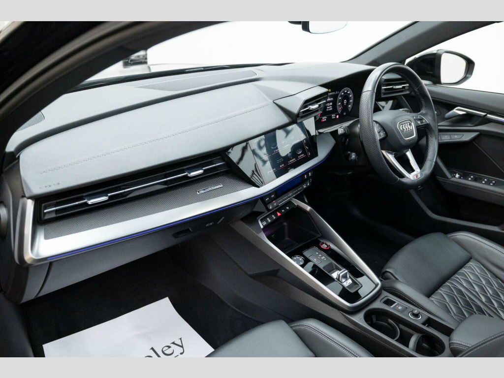 New Arrival at Berkeley Performance! We are proud to present this stunning, low mileage, Audi S3 2.0 TFSI Vorsprung finished in Mythos Black Metallic with Black leather interior. This particular example comes fitted a Maxton Design exterior styling kit finished in gloss Black and has the following options;, Panoramic Glass Sunroof, Bang & Olufsen Sound System, Comfort And Sound Pack, Head-Up Display, Carbon Inlays, Adaptive Cruise Control, Heated And Electrically Adjustable Front Seats With Memory Function, Audi LED Matrix Headlights With Dynamic Front And Rear Indicators, Privacy Glass, Audi Virtual Cockpit Plus, Lane Change Assist, Extended Ambient Lighting Pack, S Suspension With Damping Control And Many More. Audi Manufacturers Warranty Until 01/09/2026, Finance available from 7.9% apr subject to status, All viewings by appointment only, Visit www.berkeleyperformance.co.uk for further details, See our website for similar stock.