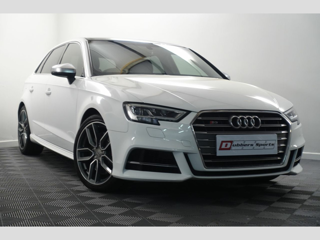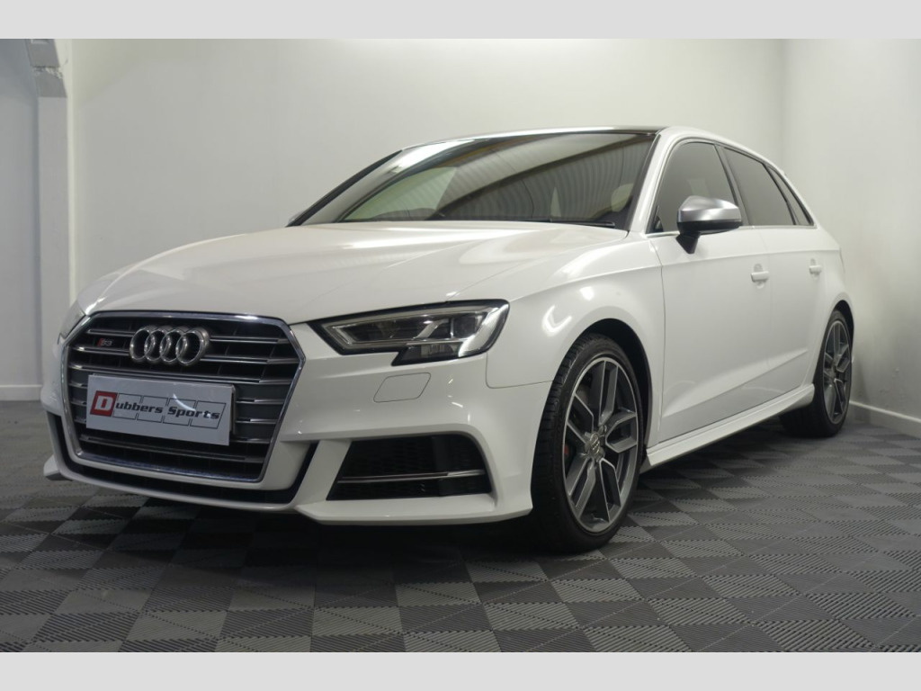 To avoid disappointment viewing is strictly by appointment only Stunning unmarked ibis white with contrasting black leather interior and pan roof only 37843 miles backed up by a full service history only 1 former keeper from new recent work include genuine Audi waterpump 4 new tyres and new brakes haldex oil changed gearbox oil change not due now until 80k 2 keys all owner manuals and hand books Hpi clear supplied with 12 month mot still under manufacturers extended warranty part exchange possible finance arranged last service carried out at 35k a standard s3 that hasnt been modified or remapped features on this vehicle include unmarked heated leather interior electric windows electric heated mirrors multifunction steering wheel cruise control climate control sat nav blue tooth dab radio bang and olufsen stereo centre armrest Audi drive select remote central locking xenon headlights lights parking sensors privacy glass pan roof 18inch diamond cut alloy wheels must be viewed all our cars are viewed in doors viewing is strictly by appointment only Dubbers Sports established in 2002 and proud members of the good garage scheme secure with a reservation fee of 199.99