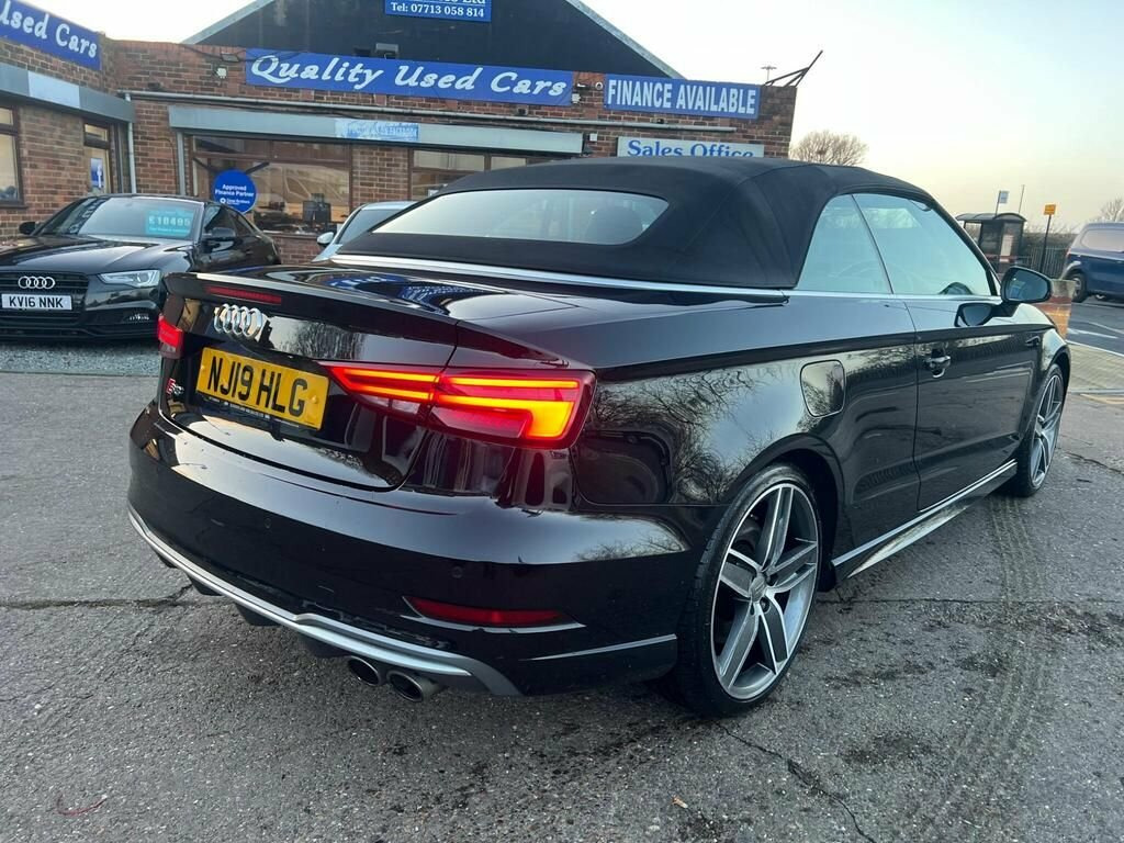 2019 Audi S3 2.0 TFSI Cabriolet S Tronic quattro Euro 6 (s/s) 2dr 82k Miles Full Service History One Owner ( Lady Owner ) 12 Month MOT Lovely Original Example Xenon LED Headlights Cruise Control Bluetooth Sat Navigation Heated Leather Seats Diamond Cut Alloys 6 Month Warranty Finance Available £14,995 This 2019 Audi S3 TFSI is a superb example, having been cherished by just one owner since new. Under the bonnet, you'll find a powerful 2.0 litre petrol engine paired with a four wheel drive system, ensuring confident performance in all conditions. This Euro 6 compliant model also boasts a range of desirable features, including convenient rear parking sensors with parking assistance, heated front seats for those colder mornings, and an automatic light and rain sensor system that manages your headlights and wipers. Stay connected on the go with the integrated Bluetooth interface, and enjoy enhanced visibility and a modern aesthetic thanks to the LED headlights, LED rear lights, and dynamic rear indicators. Experience exhilarating performance with this Audi S3, capable of accelerating from 0 to 62 miles per hour in a swift 5.2 seconds, a figure that truly sets it apart from many other vehicles in its class. Beyond its impressive speed, this S3 offers practicality with its large boot space, making it suitable for both daily commutes and weekend adventures. The combination of its dynamic capabilities, advanced technology, and the assurance of single owner 19in Alloy Wheels - 5-Twin-Spoke Dynamic, 3-Spoke Leather Multi-Function Steering , 6 Passive Loud Speakers, 6-Airbag System, Adjustable Rear Seat Bench-Backrest with, Aluminium Roof Rails, Aluminium Window Trims, Ambient Lighting Pack, Anti Theft Locking Wheel Bolts, Anti-Theft Alarm, Audi Connect Infotainment Services Plus , Audi Connect Safety and Service - e-call, Audi Drive Select, Audi Pre-Sense Front with Pedestrian and, Audi Side Assist, Audi Smartphone Interface, Audi Virtual Cockpit - 10.25in Display, Auto Dimming and Frameless Rear View Mir, B and C-Pillar Trim in High-Gloss Black, Bluetooth Interface, Body Coloured Door Mirrors, Bumpers in Full Body Colour Paint Finish, Cloth Hea