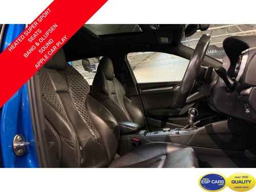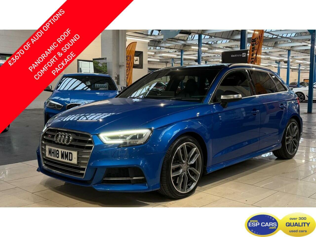 £3670 OF AUDI OPTIONS: Panoramic Glass Sunroof, Comfort and Sound Pack including Heated SuperSport Leather Seats, Keyless Entry and GO and Bang and Olufsen Sound, Bluetooth Streaming, USB, Apple Carplay, 18'' Alloys, Privacy Glass, Ara Blue, Crystal Effect .OWNERS: 1 Former KeeperSERVICE HISTORY: REMAINING SPECIFICATION:FINANCE:- Our 40 year relationships with some of the major finance houses in the country enable us to obtain the very best terms available for you.WHY ESP CARS?:- Family run business established 1975, All vehicles HPI CLEAR, AutoProtect Product Supplier, Extensive pre-delivery programme including 145 point check, excellent after sales service.CONTACT US:- 01159464500 : [email protected] : www.espcars.com FOR OVER 400 CARS IN GROUP STOCK. FIND US:- NG10 3LE,PLEASE QUOTE REF:- MH18 When enquiring on this vehicle.. 2 x USB Charging Ports and 1 x AUX-IN, Audi Connect Infotainment Services - 3 Month Trial, Audi Smartphone Interface, Audi Sound System, Bluetooth Interface, CD Drive, DAB Digital Radio, MMI Navigation - SD Card Based, MMI Radio Plus with 7in Electrically Retractable Colour MMI Screen, Online Media Streaming - Audi MMI Connect App Required, Audi Drive Select, Colour Drivers Information System - DIS, Cruise Control, Rear Parking Sensors, Tyre Pressure Warning Light, 18in Alloy Wheels - 5 Twin Spoke Star Design in Contrast Grey with Diamond Cut Finish, Aluminium Window Trims, Aluminium-Effect Door Mirror Housings, Anti Theft Locking Wheel Bolts, Brake Calipers Painted in Black with S3 Logo at the Front, Door Mirrors - Electrically Adjustable and Heated with Integrated LED Side Indicators, Electric Windows - Front, Exhaust Tailpipe - Dual-Branch Oval Twin with Chrome Finish, Heated Windscreen Washer Jets, Platinum Grey S Grille with Chrome Plated Dual Struts and S3 Logo, S Design Body Styling, Space Saver Spare Wheel, Audi Beam, Headlights Washers, LED Headlights with LED Rear Lights and Dynamic Rear Indicators, Aluminium Interior Elements, Auto-Dimming Rear-View Mirror with Light and Rain Sensor, Cloth Headlining in Black, Dual-Zone Electronic Climate Control, Email and Text Messages can be Displayed on your Vehicles MMI, Front and Rear Floor Mats, Front Centre Armrest, Heated Front Seats, Illuminated Door Sill Trims with S Logo, Inlays - Matt Brushed Aluminium, Instrument Dials with S3 Logo, Lashing Points in Luggage Compartment, LED Interior Light Package, Non-Smoking Package, Pedals in Stainless Steel, Split Folding Rear Seat Bench - 60-40 or Fully, Steering Wheel - 3-Spoke Leather-Multifunction-Flat Bottomed-Shift Paddles, Storage Compartments in the Door Side Trims-Centre Console-Under Drivers Seat, Storage Package, Tool Kit and Car Jack, Progressive Steering, S Sport Suspension, 6-Airbag System with Knee Airbag for Driver, Anti-Theft Alarm, Audi Hill Hold Assist, Electromechanical Parking Brake, ESC - Electronic Stabilisation Control inc ABS - ASR and EDL, First Aid Kit and Warning Triangle, ISOFIX Child Seat Mounting and Top Tether, Remote Central Locking with 2 Fold Away Keys, Seat Belt Monitoring, Ara Blue, Comfort and Sound Package, Fine Nappa Leather - S Embossed Super Sports Seats, Panoramic Glass Sunroof, Privacy Glass.
