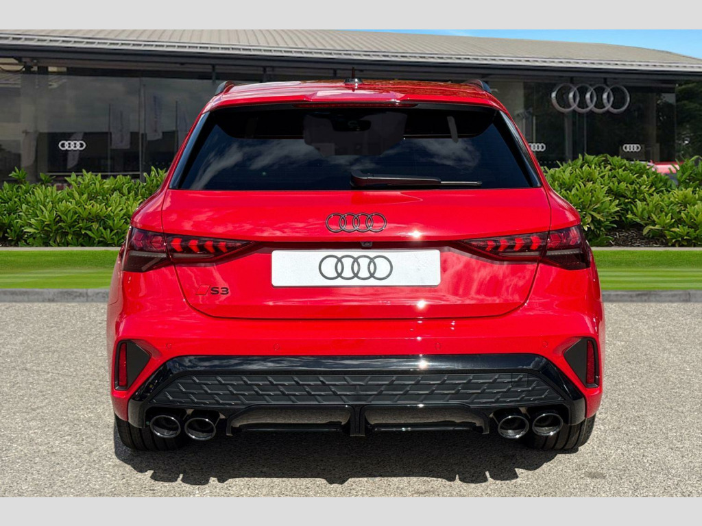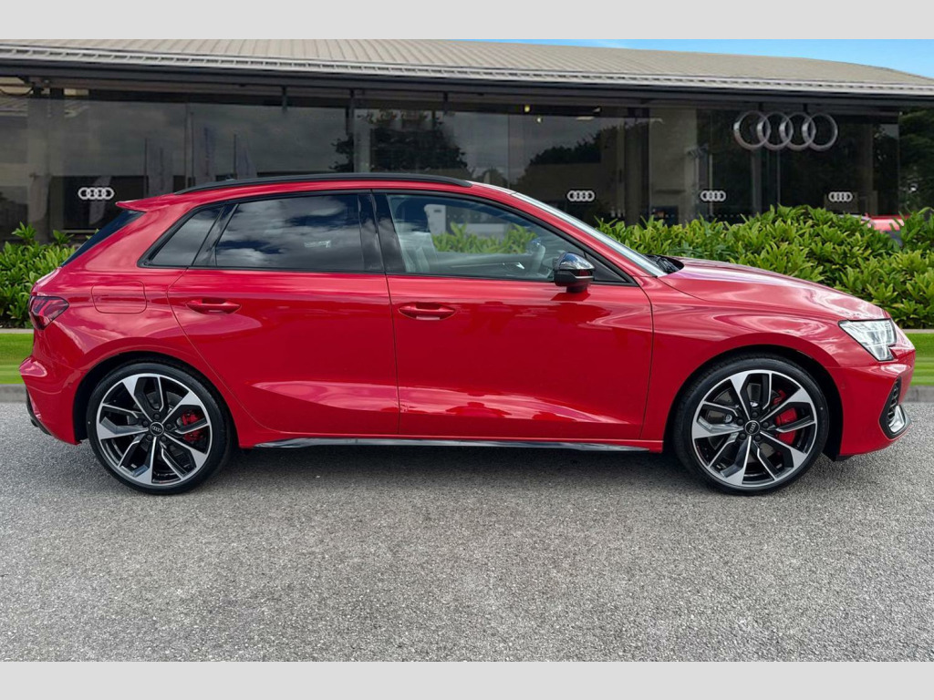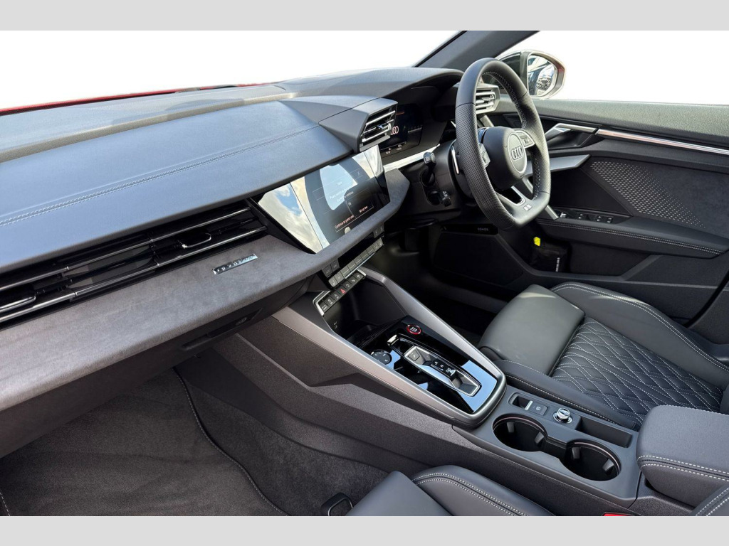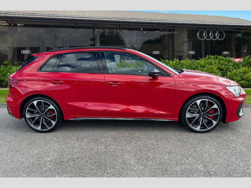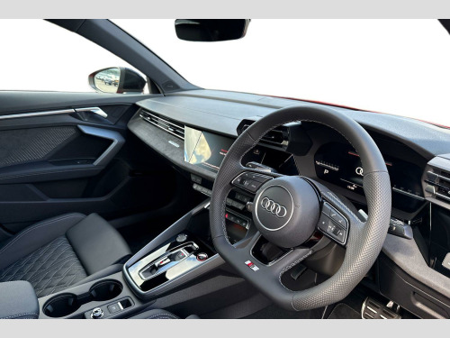 Fine Nappa Leather - S Embossed Sports Seats - Black with Rock Grey Stitching, Brake Calipers - Red, Black Roof Rails, 12v Socket and Storage Compartment in Front Centre Console, 19in Alloy Wheels - 5-Twin Spoke Edge - Anthracite Black - Gloss Turned Finish, 3-Zone Deluxe Automatic Air Conditioning, 4-Way Lumbar Support for Front Seats, Airbags - Driver and Front Passenger with Passenger Airbag Deactivation, Aluminium Interior Elements, Aluminium Window Trims, Anti Theft Locking Wheel Bolts, Anti-Theft Alarm, Audi Beam, Audi Connect Navigation and Infotainment Services Plus (3 Year Subscription From New), Audi Drive Select, Audi Phone Box Light with Wireless Charging, Audi Pre-Sense Front with Pedestrian and Cyclist Recognition, Audi Smartphone Interface, Audi Virtual Cockpit Plus, Auto Dimming and Frameless Rear View Mirror, Automatic Start-Stop System with Recuperation, Black Styling Pack, Brake Calipers Painted in Black with S Lettering, Camera Based Traffic Sign Recognition, Cloth Headlining in Black, Collision Avoidance Assistant, DAB Digital Radio, Dinamica Microfibre Decorative Inlays - Black, Distraction and Fatigue Warning, Dual-Branch Oval Twin Tailpipes in Chrome-Plated Finish, ESC - Electronic Stabilisation Control inc ABS - ASR and EDL, Electronically Operated Child Locks, Emergency Call - E-Call, Extended Ambient Lighting Pack, Exterior Mirrors - Electrically Adjustable - Heated and Folding - Automatically Dimming on Both Sides with Built-In LED Side Indicators - Including Automatic Kerb-Side Function for the Passenger-Side, First Aid Kit and Warning Triangle and 2 Safety Vests, Flat-Bottomed 3-Spoke Leather Multi-Function Sports Steering Wheel with Gear-Shift Paddles, Front Side Airbags with Head Airbags and Interaction Airbag, Front Sports Seats, Front and Rear Centre Armrest in Artificial Leather, Front and Rear Floor Mats, Headlights Washers, Hill Hold Assist, I-Size and Top Tether Child Seat Mounting for the Outer Rear Seats, Illuminated Door Sill Trims with Aluminium Inserts and S Logo, LED Headlights with LED Rear Lights and Dynamic Rear Indicators, Lane Departure Warning, Light and Rain Sensor, MMI Navigation Plus with High Resolution 10.1in Touchscreen Colour Display, Manual Boot Compartment Lid, Model Badging - Exterior, Multi-Coloured Extended LED Interior Light Pack, Park Assist Pack with Park Assist Plus, Pedals in Stainless Steel and Footrest in Black, Privacy Glass, Progressive Steering, Remote Central Locking with Safelock, S Sport Suspension, S3 Design Body Styling, Seat Belt Monitoring, Split-Folding Rear Seat Backrest - 40-20-40 Split or Fully Collapsable, Storage Package, Technology Pack, Tool Kit, Tyre Pressure Loss Indicator, Tyre Repair Kit, USB Ports with Charging Function in Rear, Windscreen with Heat-Insulating Glass