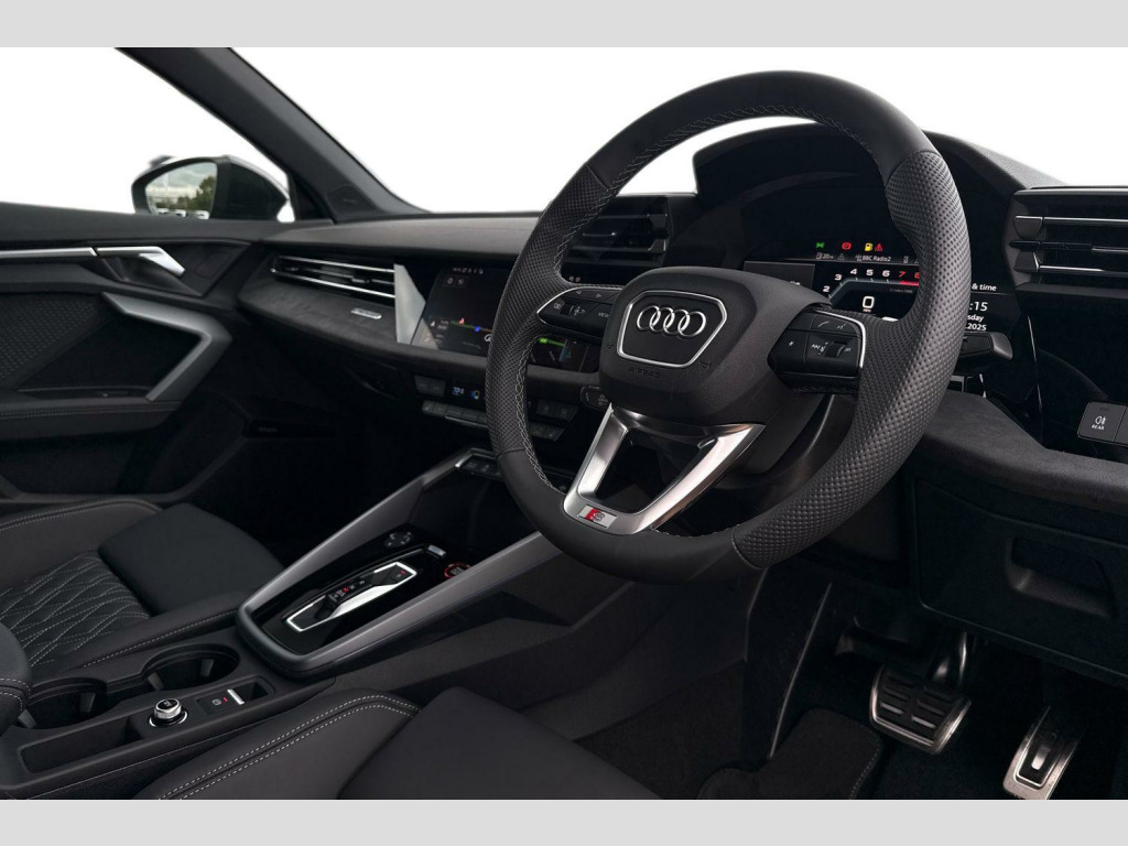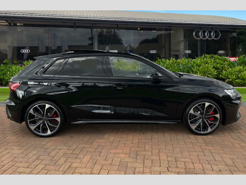 Technology Pack Pro, drive & park assist pack, Brake Calipers - Red, 12v Socket and Storage Compartment in Front Centre Console, 19in Alloy Wheels - 5-Twin Spoke Edge - Anthracite Black - Gloss Turned Finish, 3-Zone Deluxe Automatic Air Conditioning, 4-Way Lumbar Support for Front Seats, Airbags - Driver and Front Passenger with Passenger Airbag Deactivation, Aluminium Interior Elements, Aluminium Window Trims, Anti Theft Locking Wheel Bolts, Anti-Theft Alarm, Audi Beam, Audi Connect Navigation and Infotainment Services Plus (3 Year Subscription From New), Audi Drive Select, Audi Phone Box Light with Wireless Charging, Audi Pre-Sense Front with Pedestrian and Cyclist Recognition, Audi Smartphone Interface, Audi Virtual Cockpit Plus, Auto Dimming and Frameless Rear View Mirror, Automatic Start-Stop System with Recuperation, Black Styling Pack, Brake Calipers Painted in Black with S Lettering, Camera Based Traffic Sign Recognition, Cloth Headlining in Black, Collision Avoidance Assistant, DAB Digital Radio, Dinamica Microfibre Decorative Inlays - Black, Distraction and Fatigue Warning, Dual-Branch Oval Twin Tailpipes in Chrome-Plated Finish, ESC - Electronic Stabilisation Control inc ABS - ASR and EDL, Electronically Operated Child Locks, Emergency Call - E-Call, Extended Ambient Lighting Pack, Exterior Mirrors - Electrically Adjustable - Heated and Folding - Automatically Dimming on Both Sides with Built-In LED Side Indicators - Including Automatic Kerb-Side Function for the Passenger-Side, First Aid Kit and Warning Triangle and 2 Safety Vests, Flat-Bottomed 3-Spoke Leather Multi-Function Sports Steering Wheel with Gear-Shift Paddles, Front Side Airbags with Head Airbags and Interaction Airbag, Front Sports Seats, Front and Rear Centre Armrest in Artificial Leather, Front and Rear Floor Mats, Headlights Washers, Hill Hold Assist, I-Size and Top Tether Child Seat Mounting for the Outer Rear Seats, Illuminated Door Sill Trims with Aluminium Inserts and S Logo, LED Headlights with LED Rear Lights and Dynamic Rear Indicators, Lane Departure Warning, Light and Rain Sensor, MMI Navigation Plus with High Resolution 10.1in Touchscreen Colour Display, Manual Boot Compartment Lid, Model Badging - Exterior, Multi-Coloured Extended LED Interior Light Pack, Park Assist Pack with Park Assist Plus, Pedals in Stainless Steel and Footrest in Black, Privacy Glass, Progressive Steering, Remote Central Locking with Safelock, S Sport Suspension, S3 Design Body Styling, Seat Belt Monitoring, Split-Folding Rear Seat Backrest - 40-20-40 Split or Fully Collapsable, Storage Package, Technology Pack, Tool Kit, Tyre Pressure Loss Indicator, Tyre Repair Kit, USB Ports with Charging Function in Rear, Windscreen with Heat-Insulating Glass
