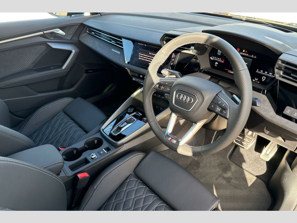 Technology Pack Pro, Brake Calipers - Red, 12v Socket and Storage Compartment in Front Centre Console, 19in Alloy Wheels - 5-Twin Spoke Edge - Anthracite Black - Gloss Turned Finish, 3-Zone Deluxe Automatic Air Conditioning, 4-Way Lumbar Support for Front Seats, Airbags - Driver and Front Passenger with Passenger Airbag Deactivation, Aluminium Interior Elements, Aluminium Window Trims, Anti Theft Locking Wheel Bolts, Anti-Theft Alarm, Audi Beam, Audi Connect Navigation and Infotainment Services Plus (3 Year Subscription From New), Audi Drive Select, Audi Phone Box Light with Wireless Charging, Audi Pre-Sense Front with Pedestrian and Cyclist Recognition, Audi Smartphone Interface, Audi Virtual Cockpit Plus, Auto Dimming and Frameless Rear View Mirror, Automatic Start-Stop System with Recuperation, Black Styling Pack, Brake Calipers Painted in Black with S Lettering, Camera Based Traffic Sign Recognition, Cloth Headlining in Black, Collision Avoidance Assistant, DAB Digital Radio, Dinamica Microfibre Decorative Inlays - Black, Distraction and Fatigue Warning, Dual-Branch Oval Twin Tailpipes in Chrome-Plated Finish, ESC - Electronic Stabilisation Control inc ABS - ASR and EDL, Electronically Operated Child Locks, Emergency Call - E-Call, Extended Ambient Lighting Pack, Exterior Mirrors - Electrically Adjustable - Heated and Folding - Automatically Dimming on Both Sides with Built-In LED Side Indicators - Including Automatic Kerb-Side Function for the Passenger-Side, First Aid Kit and Warning Triangle and 2 Safety Vests, Flat-Bottomed 3-Spoke Leather Multi-Function Sports Steering Wheel with Gear-Shift Paddles, Front Side Airbags with Head Airbags and Interaction Airbag, Front Sports Seats, Front and Rear Centre Armrest in Artificial Leather, Front and Rear Floor Mats, Headlights Washers, Hill Hold Assist, I-Size and Top Tether Child Seat Mounting for the Outer Rear Seats, Illuminated Door Sill Trims with Aluminium Inserts and S Logo, LED Headlights with LED Rear Lights and Dynamic Rear Indicators, Lane Departure Warning, Light and Rain Sensor, MMI Navigation Plus with High Resolution 10.1in Touchscreen Colour Display, Manual Boot Compartment Lid, Model Badging - Exterior, Multi-Coloured Extended LED Interior Light Pack, Park Assist Pack with Park Assist Plus, Pedals in Stainless Steel and Footrest in Black, Privacy Glass, Progressive Steering, Remote Central Locking with Safelock, S Sport Suspension, S3 Design Body Styling, Seat Belt Monitoring, Split-Folding Rear Seat Backrest - 40-20-40 Split or Fully Collapsable, Storage Package, Technology Pack, Tool Kit, Tyre Pressure Loss Indicator, Tyre Repair Kit, USB Ports with Charging Function in Rear, Windscreen with Heat-Insulating Glass