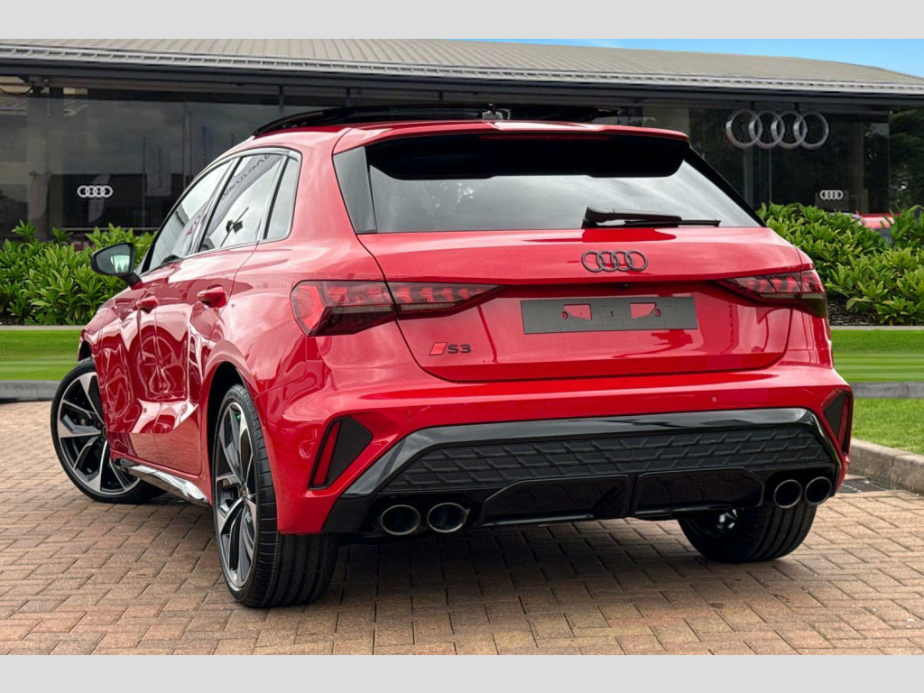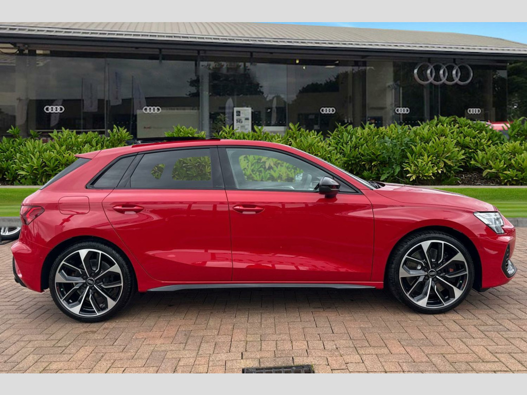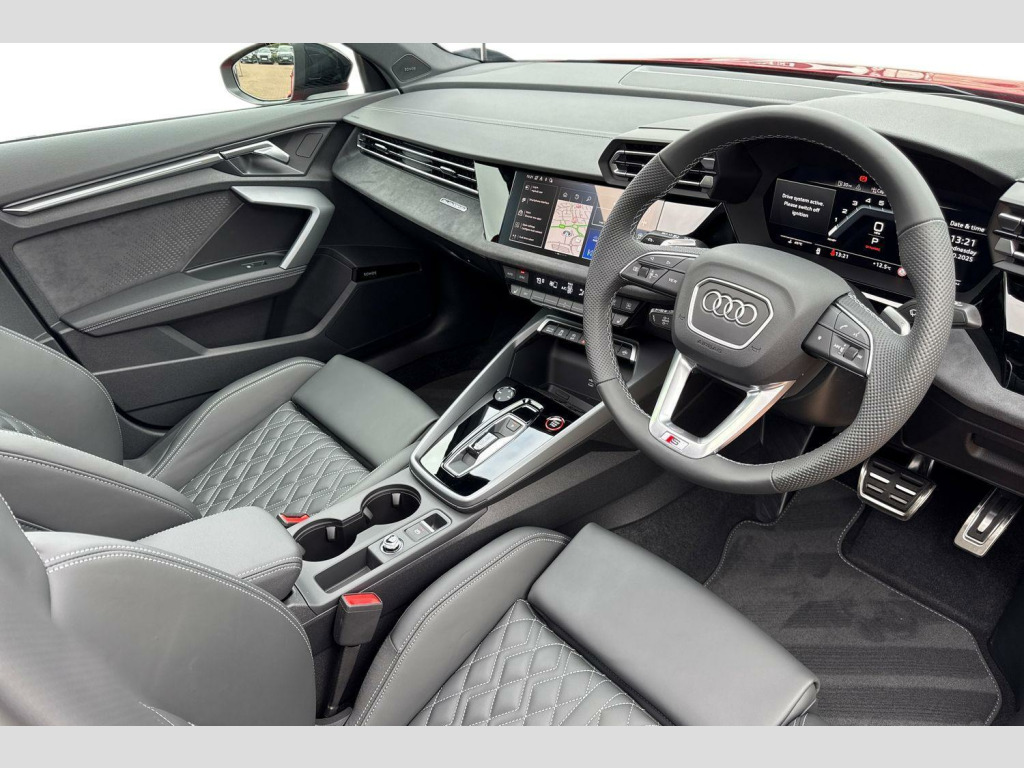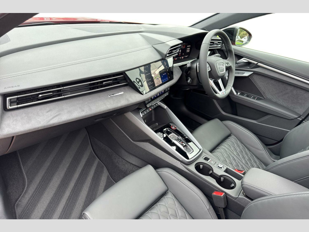 Technology Pack Pro, 12v Socket and Storage Compartment in Front Centre Console, 19in Alloy Wheels - 5-Twin Spoke Edge - Anthracite Black - Gloss Turned Finish, 3-Zone Deluxe Automatic Air Conditioning, 4-Way Lumbar Support for Front Seats, Airbags - Driver and Front Passenger with Passenger Airbag Deactivation, Aluminium Interior Elements, Aluminium Window Trims, Anti Theft Locking Wheel Bolts, Anti-Theft Alarm, Audi Beam, Audi Connect Navigation and Infotainment Services Plus (3 Year Subscription From New), Audi Drive Select, Audi Phone Box Light with Wireless Charging, Audi Pre-Sense Front with Pedestrian and Cyclist Recognition, Audi Smartphone Interface, Audi Virtual Cockpit Plus, Auto Dimming and Frameless Rear View Mirror, Automatic Start-Stop System with Recuperation, Black Styling Pack, Brake Calipers Painted in Black with S Lettering, Camera Based Traffic Sign Recognition, Cloth Headlining in Black, Collision Avoidance Assistant, DAB Digital Radio, Dinamica Microfibre Decorative Inlays - Black, Distraction and Fatigue Warning, Dual-Branch Oval Twin Tailpipes in Chrome-Plated Finish, ESC - Electronic Stabilisation Control inc ABS - ASR and EDL, Electronically Operated Child Locks, Emergency Call - E-Call, Extended Ambient Lighting Pack, Exterior Mirrors - Electrically Adjustable - Heated and Folding - Automatically Dimming on Both Sides with Built-In LED Side Indicators - Including Automatic Kerb-Side Function for the Passenger-Side, First Aid Kit and Warning Triangle and 2 Safety Vests, Flat-Bottomed 3-Spoke Leather Multi-Function Sports Steering Wheel with Gear-Shift Paddles, Front Side Airbags with Head Airbags and Interaction Airbag, Front Sports Seats, Front and Rear Centre Armrest in Artificial Leather, Front and Rear Floor Mats, Headlights Washers, Hill Hold Assist, I-Size and Top Tether Child Seat Mounting for the Outer Rear Seats, Illuminated Door Sill Trims with Aluminium Inserts and S Logo, LED Headlights with LED Rear Lights and Dynamic Rear Indicators, Lane Departure Warning, Light and Rain Sensor, MMI Navigation Plus with High Resolution 10.1in Touchscreen Colour Display, Manual Boot Compartment Lid, Model Badging - Exterior, Multi-Coloured Extended LED Interior Light Pack, Park Assist Pack with Park Assist Plus, Pedals in Stainless Steel and Footrest in Black, Privacy Glass, Progressive Steering, Remote Central Locking with Safelock, S Sport Suspension, S3 Design Body Styling, Seat Belt Monitoring, Split-Folding Rear Seat Backrest - 40-20-40 Split or Fully Collapsable, Storage Package, Technology Pack, Tool Kit, Tyre Pressure Loss Indicator, Tyre Repair Kit, USB Ports with Charging Function in Rear, Windscreen with Heat-Insulating Glass