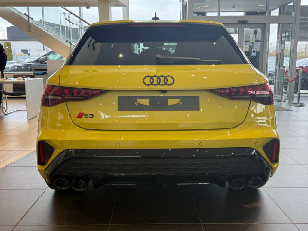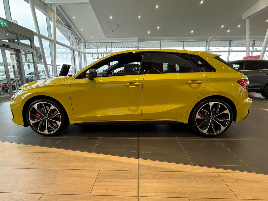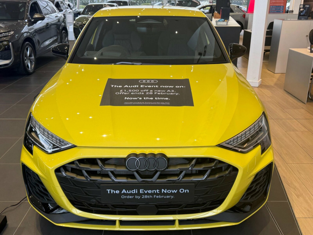 Vehicle price shown includes a deposit contribution of £2500 when purchased on finance by 31/03/2026. Solutions Personal Contract Plan. 7.9% APR Representative. Audi Financial Services. Terms and Conditions apply. Brake Calipers - Red, 12v Socket and Storage Compartment in Front Centre Console, 19in Alloy Wheels - 5-Twin Spoke Edge - Anthracite Black - Gloss Turned Finish, 3-Zone Deluxe Automatic Air Conditioning, 4-Way Lumbar Support for Front Seats, Airbags - Driver and Front Passenger with Passenger Airbag Deactivation, Aluminium Interior Elements, Aluminium Window Trims, Anti Theft Locking Wheel Bolts, Anti-Theft Alarm, Audi Beam, Audi Connect Navigation and Infotainment Services Plus (3 Year Subscription From New), Audi Drive Select, Audi Phone Box Light with Wireless Charging, Audi Pre-Sense Front with Pedestrian and Cyclist Recognition, Audi Smartphone Interface, Audi Virtual Cockpit Plus, Auto Dimming and Frameless Rear View Mirror, Automatic Start-Stop System with Recuperation, Black Styling Pack, Brake Calipers Painted in Black with S Lettering, Camera Based Traffic Sign Recognition, Cloth Headlining in Black, Collision Avoidance Assistant, DAB Digital Radio, Dinamica Microfibre Decorative Inlays - Black, Distraction and Fatigue Warning, Dual-Branch Oval Twin Tailpipes in Chrome-Plated Finish, ESC - Electronic Stabilisation Control inc ABS - ASR and EDL, Electronically Operated Child Locks, Emergency Call - E-Call, Extended Ambient Lighting Pack, Exterior Mirrors - Electrically Adjustable - Heated and Folding - Automatically Dimming on Both Sides with Built-In LED Side Indicators - Including Automatic Kerb-Side Function for the Passenger-Side, First Aid Kit and Warning Triangle and 2 Safety Vests, Flat-Bottomed 3-Spoke Leather Multi-Function Sports Steering Wheel with Gear-Shift Paddles, Front Side Airbags with Head Airbags and Interaction Airbag, Front Sports Seats, Front and Rear Centre Armrest in Artificial Leather, Front and Rear Floor Mats, Headlights Washers, Hill Hold Assist, I-Size and Top Tether Child Seat Mounting for the Outer Rear Seats, Illuminated Door Sill Trims with Aluminium Inserts and S Logo, LED Headlights with LED Rear Lights and Dynamic Rear Indicators, Lane Departure Warning, Light and Rain Sensor, MMI Navigation Plus with High Resolution 10.1in Touchscreen Colour Display, Manual Boot Compartment Lid, Model Badging - Exterior, Multi-Coloured Extended LED Interior Light Pack, Park Assist Pack with Park Assist Plus, Pedals in Stainless Steel and Footrest in Black, Privacy Glass, Progressive Steering, Remote Central Locking with Safelock, S Sport Suspension, S3 Design Body Styling, Seat Belt Monitoring, Split-Folding Rear Seat Backrest - 40-20-40 Split or Fully Collapsable, Storage Package, Technology Pack, Tool Kit, Tyre Pressure Loss Indicator, Tyre Repair Kit, USB Ports with Charging Function in Rear, Windscreen with Heat-Insulating Glass, Adaptive Cruise Control, Attention and Fatigue Detection, Comfort Key and Safelock, Heated Front Seats, Intersection Assist, Park Assist with Parking System Plus, Rear-View Camera