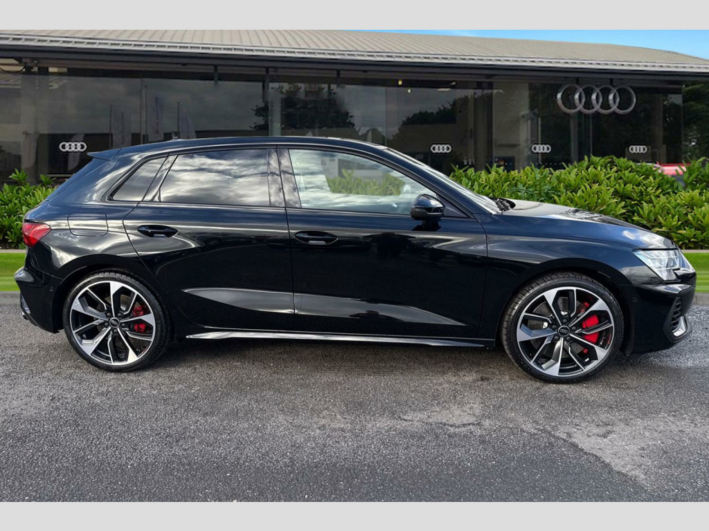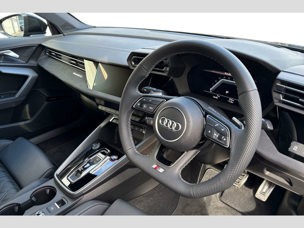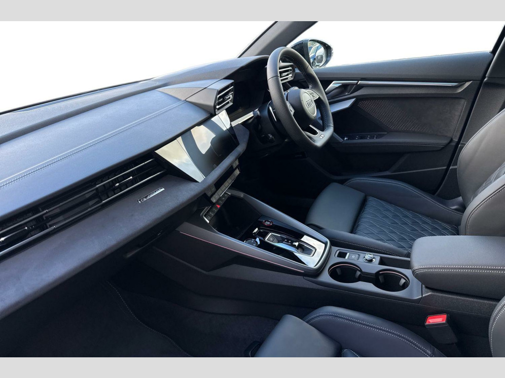 Brake Calipers - Red, Fine Nappa Leather - S Embossed Sports Seats - Black with Rock Grey Stitching, 12v Socket and Storage Compartment in Front Centre Console, 19in Alloy Wheels - 5-Twin Spoke Edge - Anthracite Black - Gloss Turned Finish, 3-Zone Deluxe Automatic Air Conditioning, 4-Way Lumbar Support for Front Seats, Airbags - Driver and Front Passenger with Passenger Airbag Deactivation, Aluminium Interior Elements, Aluminium Window Trims, Anti Theft Locking Wheel Bolts, Anti-Theft Alarm, Audi Beam, Audi Connect Navigation and Infotainment Services Plus (3 Year Subscription From New), Audi Drive Select, Audi Phone Box Light with Wireless Charging, Audi Pre-Sense Front with Pedestrian and Cyclist Recognition, Audi Smartphone Interface, Audi Virtual Cockpit Plus, Auto Dimming and Frameless Rear View Mirror, Automatic Start-Stop System with Recuperation, Black Styling Pack, Brake Calipers Painted in Black with S Lettering, Camera Based Traffic Sign Recognition, Cloth Headlining in Black, Collision Avoidance Assistant, DAB Digital Radio, Dinamica Microfibre Decorative Inlays - Black, Distraction and Fatigue Warning, Dual-Branch Oval Twin Tailpipes in Chrome-Plated Finish, ESC - Electronic Stabilisation Control inc ABS - ASR and EDL, Electronically Operated Child Locks, Emergency Call - E-Call, Extended Ambient Lighting Pack, Exterior Mirrors - Electrically Adjustable - Heated and Folding - Automatically Dimming on Both Sides with Built-In LED Side Indicators - Including Automatic Kerb-Side Function for the Passenger-Side, First Aid Kit and Warning Triangle and 2 Safety Vests, Flat-Bottomed 3-Spoke Leather Multi-Function Sports Steering Wheel with Gear-Shift Paddles, Front Side Airbags with Head Airbags and Interaction Airbag, Front Sports Seats, Front and Rear Centre Armrest in Artificial Leather, Front and Rear Floor Mats, Headlights Washers, Hill Hold Assist, I-Size and Top Tether Child Seat Mounting for the Outer Rear Seats, Illuminated Door Sill Trims with Aluminium Inserts and S Logo, LED Headlights with LED Rear Lights and Dynamic Rear Indicators, Lane Departure Warning, Light and Rain Sensor, MMI Navigation Plus with High Resolution 10.1in Touchscreen Colour Display, Manual Boot Compartment Lid, Model Badging - Exterior, Multi-Coloured Extended LED Interior Light Pack, Park Assist Pack with Park Assist Plus, Pedals in Stainless Steel and Footrest in Black, Privacy Glass, Progressive Steering, Remote Central Locking with Safelock, S Sport Suspension, S3 Design Body Styling, Seat Belt Monitoring, Split-Folding Rear Seat Backrest - 40-20-40 Split or Fully Collapsable, Storage Package, Technology Pack, Tool Kit, Tyre Pressure Loss Indicator, Tyre Repair Kit, USB Ports with Charging Function in Rear, Windscreen with Heat-Insulating Glass