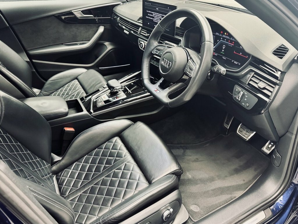Finished in Navarra Blue with Fine Nappa Leather Black Interior. --- FACTORY SPEC --- A very high spec Audi S4 Black Edition with some awesome factory options including; Comfort and Sound Package / Driver Assistance Pack - Tour / 19in Alloy Wheels - 5-Arm Rotor Matt Titanium Look / Audi Phone Box with Wireless Charging / Audi Smartphone Interface / Audi Virtual Cockpit / Cruise Control System with Speed Limiter / High Gloss Package / AdBlue Tank 24 Litres / LED Headlights with LED Rear Lights and Dynamic Rear Indicators / Headlights - High-Beam Assist / Lumbar Support - Pneumatically Adjustable with Massage Function / Heated Front Seats / Hill Hold Assist / Parking System Plus - Front and Rear Sensors / Rear-View Camera / MMI Navigation Plus including MMI Touch / DAB Radio / Bluetooth / Power Operated Tailgate / Door Mirrors - Folding with Auto-Dimming / Auto-Dimming Rear-View Mirror / Tyre Pressure Warning / Privacy Glass and Front Acoustic Glazing plus so much more. --- SERVICE HISTORY --- Well maintained with AUDI Service history present, most recent service included Oil and a Brake Fluid carried out on 41,785 miles. Independent Multi-point health check just carried out showing a clean bill of health with new tyres. MOT due 20/08/2026 Navarra Blue, Fine Nappa Leather - Black, AdBlue Tank 24 Litres, Driver Assistance Pack - Tour, Comfort and Sound Package, 19in Alloy Wheels - 5-Arm Rotor Matt Tit, 2 USB Charging Ports, 6-Airbag System, Anti Theft Locking Wheel Bolts, Anti-Theft Alarm, Audi Beam, Audi Connect Infotainment Services (36 M, Audi Connect Safety and Service, Audi Drive Select, Audi Phone Box with Wireless Charging, Audi Smartphone Interface, Audi Sound System, Audi Virtual Cockpit, Auto-Dimming Rear-View Mirror, Automatic Start-Stop with Coasting Funct, Bluetooth Interface, Body Coloured Side Sill Trims, Brake Calipers Painted in Black with S4 , Cloth Headlining in Black, Contrast Stitching on Seats - Steering W