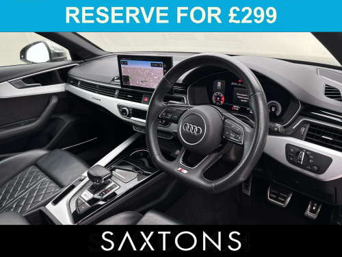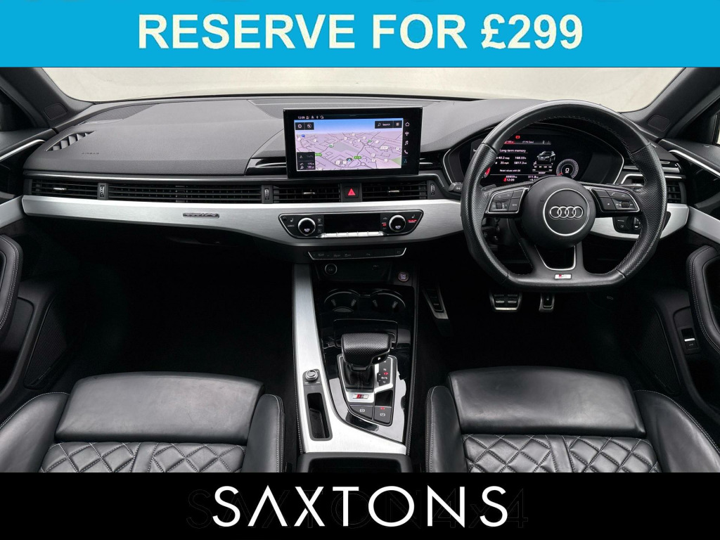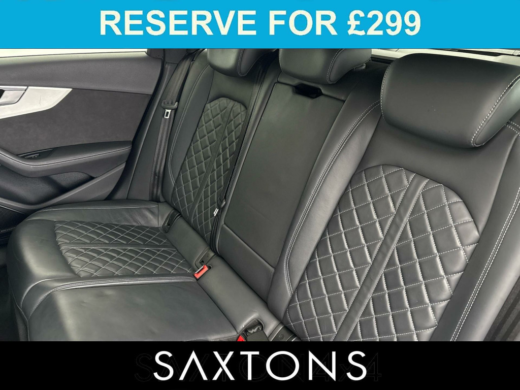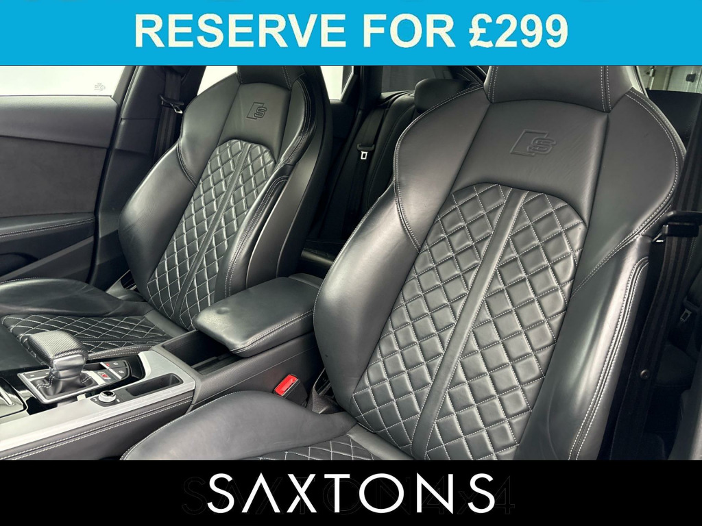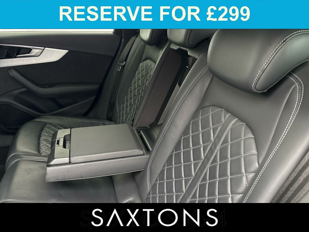 . 2 USB Charging Ports, 6-Airbag System, Aluminium Roof Rails, Aluminium-Effect Door Mirror Housings, Anti Theft Locking Wheel Bolts, Anti-Theft Alarm, Audi Beam, Audi Connect Infotainment Services (36 Month Subscription From New), Audi Connect Safety and Service, Audi Drive Select, Audi Phone Box with Wireless Charging, Audi Smartphone Interface, Audi Sound System, Auto-Dimming Rear-View Mirror, Automatic Start-Stop with Coasting Functionality and Efficiency Programme, Bluetooth Interface, Body Coloured Side Sill Trims, Brake Calipers Painted in Black with S4 Logo at the Front, Cloth Headlining in Black, Contrast Stitching on Seats - Steering Wheel and Gear-Lever Gaiter, Cruise Control System with Speed Limiter, DAB Digital Radio Reception, Deluxe 3-Zone Electronic Climate Control, Door Handles - Body Coloured, Door Mirrors - Folding with Auto-Dimming, Electric Load Area Cover, Electric Windows - Front, Electromechanical Power Steering, Email - Calendar and Text Messages can be Displayed on your Vehicles MMI, ESC - Electronic Stabilisation Control inc ABS - ASR and EDL, Extended Leather Package, First Aid Kit and Warning Triangle, Flat-Bottomed 3-spoke Leather High Multi-Function Steering Wheel with Chrome Clip, Front Centre Armrest, Front S Super Sport Seats - Electrically Adjustable with S Embossed Logo, Front Spoiler Lip in Body Colour, Gear-lever Knob in Black Leather, Gear-lever with Diamond S Badge, Headlights - High-Beam Assist, Heated Front Seats, High Gloss Package, Hill Hold Assist, Illuminated Door Sill Trims with S Logo, Inlays - Matt Brushed Aluminium, ISOFIX Child Seat Mounting and Top Tether, Key with S4 Logo, Keyless Go, LED Headlights with LED Rear Lights and Dynamic Rear Indicators, LED Interior Lighting Pack, Light and Rain Sensor, Lumbar Support - Pneumatically Adjustable with Massage Function, MMI Navigation Plus including MMI Touch, Multi Collision Brake Assist, Parking System Plus - Front and Rear Sensors, Pedals and Footrest - Stainless Steel, Pop-Up Bonnet for Pedestrian Protection, Power Operated Tailgate, Pre-Sense City, Privacy Glass, Rear-View Camera, S Instrument Dials, S line Front and Rear Bumpers and Side Skirts, S Model Enhanced Braking System, S Radiator Grille in Twilight Grey Matt with Dual Struts in Aluminium and S4 Logo, S Rear Diffuser in Twilight Grey - Matt and Honeycomb Grille in Black, S Rear Spoiler, S Specific Air Inlets in Titan Black with Chrome Inlays in Unique S Design, S Specific Dual-Branch Chrome Tailpipes with Twin Oval Pipes Each on Left and Right, S Sport Suspension, Seat Belt Monitoring, Split-Folding Rear Seat Bench in 3 Parts - 40-20-40 with Rear Centre Armrest, Steering Wheel - Gear Shift Paddles, Tool Kit, Tyre Repair Kit, Voice Control, Windscreen with Acoustic Glazing, 19in Alloy Wheels - 8.5J 5-Spoke-V Design in Contrasting Grey, Tow Bar - Folding, Comfort and Sound Package, Fine Nappa Leather - Black, Storage and Luggage Compartment Package, Bang & Olufsen Premium Sound System, Audi Virtual Cockpit, 19in Alloy Wheels - 8.5J 5-Spoke-V Design in Contrasting Grey.