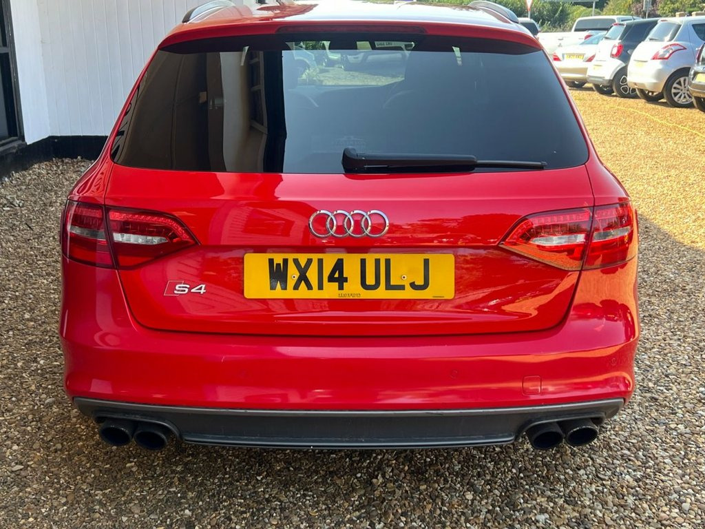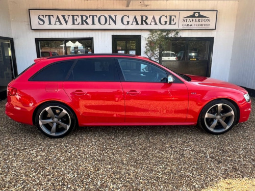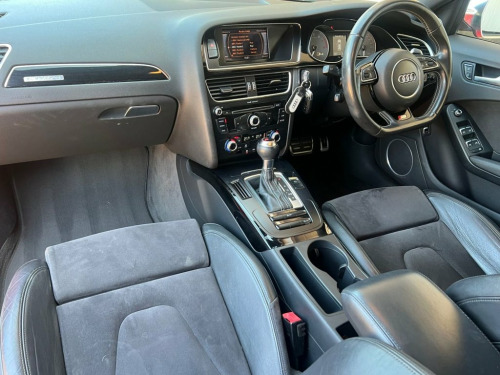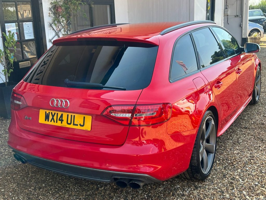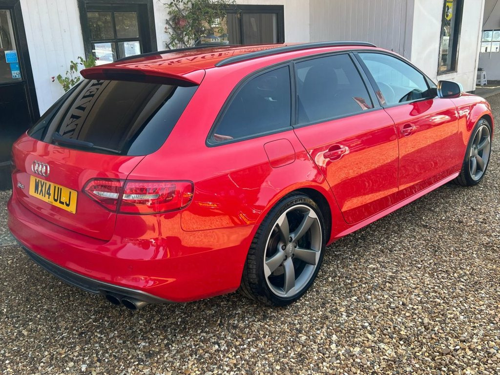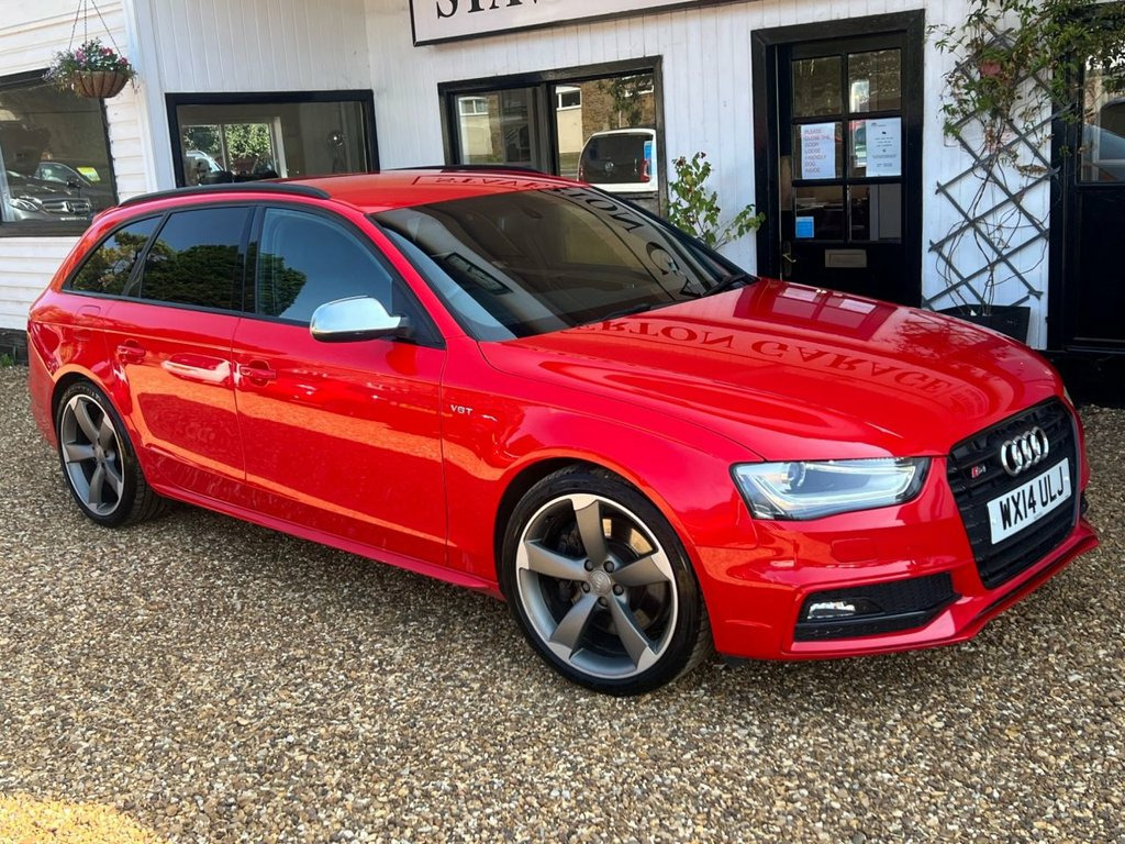 We are delighted to present for your consideration an Audi S4 Avant 3.0 TFSi Black Edition S-Tronic 7 Speed Paddleshift finished in Brilliant Red with Black 1/2 Leather Alcantara trim. 3 Former keepers from new with Service history, the last one lass than 1,00 miles ago. You'll soon establish she's in superb condition with a great Service History. The specification includes 19" Alloys, Black Exterior Pack, Privacy Glass, Electric Seats, DAB Radio with CD Player and Audi AIMi system, Bang & Olufsen Speakers, Power Tailgate, Bluetooth Telephone Integration, Cruise Control and more. £395 Road Tax, Insurance Group 36 so an affordable super estate... Classic Red, 19in Alloy Wheels - 5-Segment-Spoke Desi, 12V Power Socket, 12V Power Socket - Luggage Compartment, 12V Power Socket x2, 19in Alloy Wheels - 5-Arm Rotor Design T, 6.5in Display Screen, ABS - Anti-Lock Braking System, AMI - Audi Music Interface, AUX-IN Socket, Acoustic Windscreen, Active Door Reflectors, Airbags - Driver, Airbags - Front Passenger, Airbags - Front Side, Airbags - Head System, Alarm - Thatcham Category 1, Aluminium-Effect Door Mirror Housings, Anti Theft Locking Wheel Bolts, Audi Sound System, Auto-Dimming Rear-View Mirror, Automatic Wipers with Rain Sensor, Bang and Olufsen Sound System, Black Roof Rails, Black Styling Package, Brake Calipers - Painted with S4 Lo