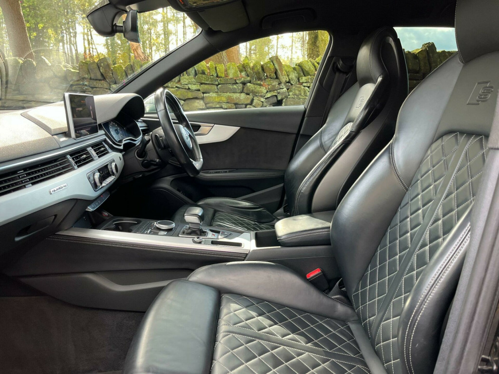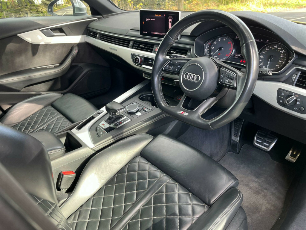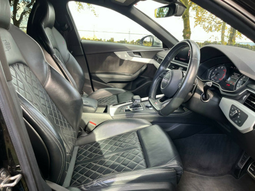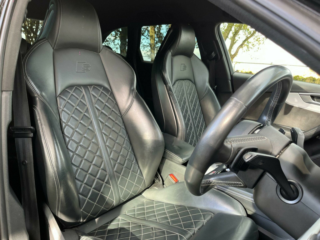 SMOKE AND PET FREE,VERY CLEAN STUNNING LOOKING CAR,PLEASE CALL LEE ON 07976263597. in alloy wheels - 10-v spoke design, 4-way electric lumbar support, 6-airbag system, aluminium roof rails, aluminium-effect door mirror housings, anti theft locking wheel bolts, anti-theft alarm, audi beam - exterior puddle lighting with audi rings logo, audi connect (3 year subscription from new), audi connect safety and service - e-call, audi drive select, audi smartphone interface, audi sound system, auto-dimming rear-view mirror, bluetooth interface, brake calipers painted in black with s4 logo at the front, cd drive, cloth headlining in black, cruise control system with freewheeling capability and speed limiter, dab digital radio, deluxe 3-zone electronic climate control, door handles with chrome trim, door mirrors - electrically adjustable and heated with built-in led indicators, driver information system - 7in colour display, esc - electronic stabilisation control inc abs - asr and edl, electric load area cover, electric windows - front and rear, electrically adjustable front seats, electromechanical power steering, extended interior upholstery pack, first aid kit and warning triangle, flat bottomed 3-spoke leather high multi-function steering wheel, front centre armrest, gear-lever knob in black leather, gear-lever with diamond s badge, heated front seats, high gloss package, high-beam assist, isofix child seat mounting and top tether, illuminated door sill trims with s logo, inlays - matt brushed aluminium, key with s4 logo, keyless go, led headlights with led rear lights and dynamic rear indicators, led interior light package, light and rain sensor, mmi navigation plus with 8.3in high resolution colour screen, mmi touch control panel, multi collision brake assist, parking system plus, pedals and footrest - stainless steel, pop-up bonnet for pedestrian protection, power operated tailgate, pre-sense city, rear spoiler, remote central locking, s instrument dials, s model enhanced braking system, s radiator grille in twilight grey matt with dual struts in aluminium and s4 logo, s rear diffuser in twilight grey - matt and honeycomb grille in black, s specific air inlets in titan black with chrome inlays in unique s design, s specific dual-branch chrome tailpipes with twin oval pipes each on left and right, s sport suspension, seat belt monitoring, space saver spare wheel, split-folding rear seat bench in 3 parts - 40-20-40 with rear centre armrest, sun visors - with vanity mirror, tool kit and car jack, towbar preparation, two usb charging ports, tyre pressure warning light, voice control, windscreen with acoustic glazing