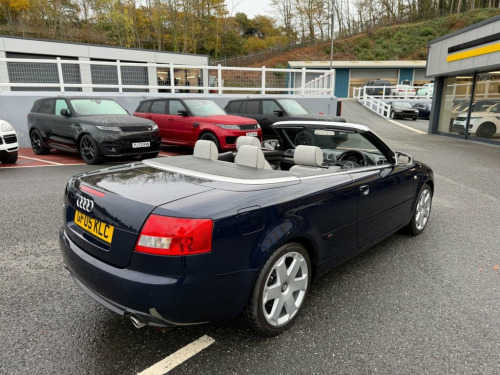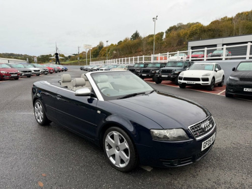 This 2005 Audi S4 Cabriolet 4.2 Convertible 2dr Petrol Manual quattro (331 g/k Convertible is currently available for £8,750 in Liskeard Cornwall with Petrol engine and Manual gearbox. For more information or to arrange a viewing, click here to send us an email using form below.