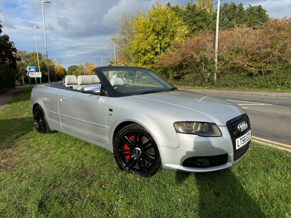 This 2006 Audi S4 Cabriolet  4.2 Convertible 2dr Petrol Tiptronic quattro (302 g/km, 339 bhp) JUST 81k S Convertible is currently available for £7,995 in Bristol Bristol with Petrol engine and Automatic gearbox. For more information or to arrange a viewing, click here to send us an email using form below.