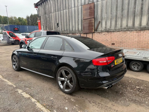 WR12EYY AUDI S4 3.0 TFSI V6 Black Edition Saloon 4dr Petrol S Tronic quattro Euro 5 (s/s) (333 ps) - Automatic S-Tronic - Brilliant Black paint work - 80k Miles - 2 Remote Keys - 4 Former Keepers - Audi main dealer service history - just serviced for sale by independent German car specialist 12V Power Socket, 12V Power Socket - Luggage Compartment, 19in Alloy Wheels - 5-Arm Rotor Design T, ABS - Anti-Lock Braking System, AMI - Audi Music Interface, AUX-IN Socket, Acoustic Parking System - Rear, Airbags - Driver, Airbags - Front Passenger, Airbags - Front Side System, Airbags - Head System, Alarm - Thatcham Category 1, Audi Parking System Plus, Auto Opening Boot Lid, Auto-Dimming Rear-View Mirror, Automatic Wipers with Rain Sensor, Bang and Olufsen Sound System, Black Styling Package, Climate Control - Electronic 3-Zone, Cloth Headlining in Black, Concert Radio, Cruise Control, DAB Digital Radio, Door Mirrors - Electrically Adjustable a, Drivers Information System - DIS, ESP - El