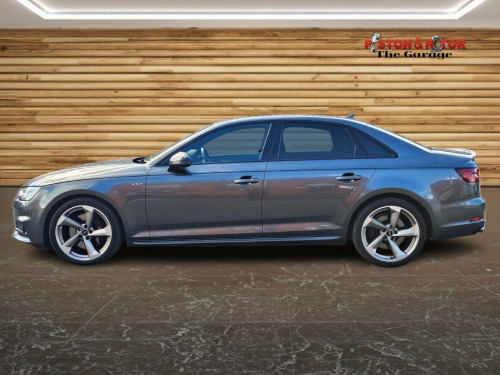 THIS STUNNING LOOKING AND GREAT CONDITION EXAMPLE OF THE AUDI S4 IS PRESENTED IN GUN METALLIC GREY WITH FULL S BODY TRIM INCLUDING FRONT AND REAR BUMPERS, FRONT DIFFUSER AND RADIATOR GRILLE IN TWILIGHT GREY WITH SIDESKIRTS PLUS QUAD STAINLESS STEEL EXHAUST TRIM. THE LOOK IS COMPLETED BY UPGRADED 19 ROTOR STYLE DIAMOND CUT AND SILVER ALLOY WHEELS. THE RESPONSIVE, POWERFUL AND RELIABLE 3.0 TFSI V6 PETROL ENGINE IS CONNECTED TO A TIPTRONIC AUTOMATIC GEARBOX, AND TOGETHER WITH THE QUATTRO ALL-WHEEL DRIVE MAKES FOR AN EXHILARATING YET SURE-FOOTED DRIVING EXPERIENCE AROUND TOWN, ON B ROADS AND MOTORWAYS. THE INTERIOR DOES NOT DISAPPOINT WITH FULL DIAMOND QUILTED LEATHER SPORTS SEATS (FRONT HEATED) WITH MATCHING BLACK HEADLINING AND MATT BRUSHED ALUMINIUM TRIM ON THE DOOR CARDS, WITH THE LEATHER TRIMMED MULTIFUNCTION STEERING WHEEL AND PERFORATED LEATHER-TRIMMED AUTO GEAR SELECTOR COMPLETING THE LUXURY AND SPORTING FEEL. THE INTERIOR ALSO BENEFITHS FROM THE LED INTERIOR LIGHTING PACKAGE AND ILLUMINATED DOOR SILLS WITH S LOGO. INFORTAINMENT IS PROVIDED VIA THE 8.3 TOUCHSCREEN MMI (MULTI-MEDIA INTERFACE) SCREEN WITH ACCESS TO THE DAB/FM RADIO, BLUETOOTH AUDIO STREAMING AND TELEPHONE, 3D SATELLITE NAVIGATION, AUDI CONNECT ONLINE SERVICES (SUBSCRIPTION REQUIRED) AND SMARTPHONE INTEGRATION. FURTHER EQUIPMENT INCLUDES KEYLESS GO, CRUISE CONTROL WITH SPEED LIMITER, FRONT AND REAR PARKING SENSORS WITH PARK SYSTEM PLUS, LED HEADLIGHTS AND REAR LIGHTS WITH DYNAMIC REAR LED INDICATORS WITH A RAFT OF SAFETY FEATURES BOTH ACTIVE AND PASSIVE, TO HELP KEEP YOU SAFE ON THE ROAD. , WE HAVE FULLY INSPECTED AND SERVICED THIS CAR, SO THE ONLY ISSUE FOR ITS NEW OWNER WILL BE WHERE THE NEXT TRIP SHOULD BE. PLEASE CALL 0161 761 3452 (OPTION 2) TO ARRANGE A VIEWING, TO RESERVE THE CAR OR FOR MORE INFORMATION. WHILST EVERY EFFORT HAS BEEN MADE TO ENSURE THAT THE STATED SPECIFICATION IS ACCURATE, PLEASE CHECK WITH A MEMBER OF THE SALES TEAM IF A PARTICULAR SPECIFICATION/FEATURE IS IMPORTANT TO YOU.