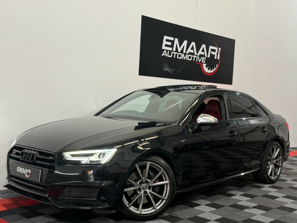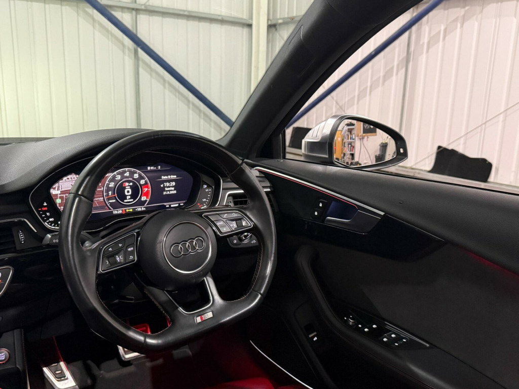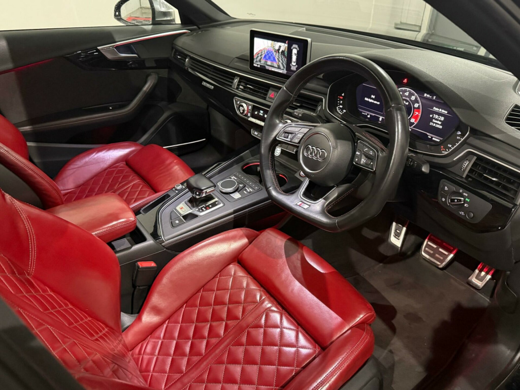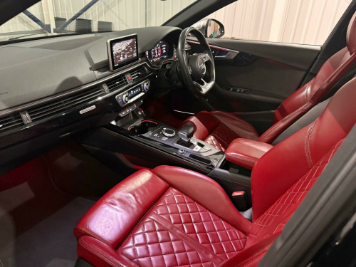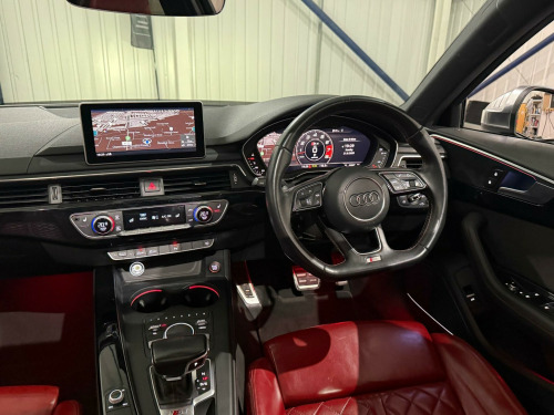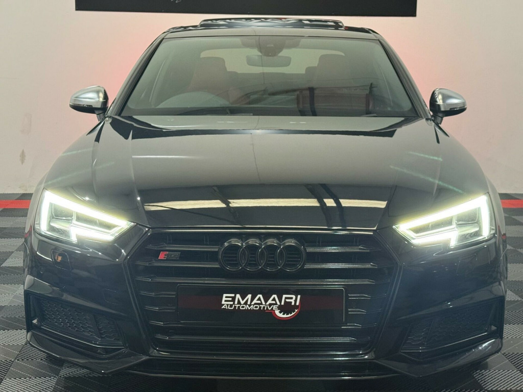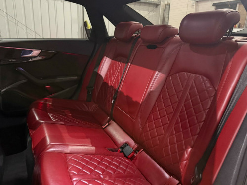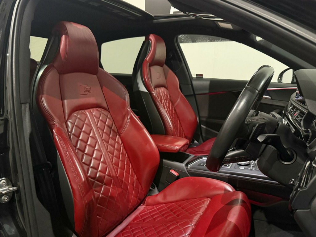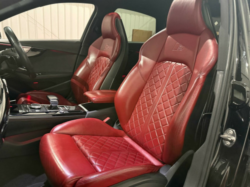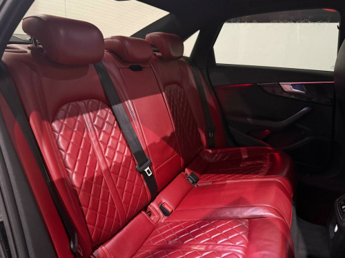 * FSH* GHOST IMMOBILISER* SUNROOF* B&O UPGRADED SOUND SYSTEM* FLAT BOTTOM STEERING WHEEL* VIRTUAL COCKPIT* REVERSE CAMERA WITH FRONT AND REAR SENSORS* MULTICOLOURED INTERIOR LIGHTING* APPLE CARPLAY* HEATED & MASSAGE SEATS* MAGMA RED LEATHER SEAT* ALL BLACKED OUT* REZ DELETE in alloy wheels - 5-v spoke design in matt black - diamond cut finish, 3d navigation, 6-airbag system, aluminium-effect door mirror housings, anti theft locking wheel bolts, anti-theft alarm, audi connect (3 year subscription from new), audi drive select, audi smartphone interface, audi sound system, auto-dimming rear-view mirror, bluetooth interface, brake calipers painted in black with s4 logo at the front, cloth headlining in black, cruise control with speed limiter, dab digital radio, deluxe 3-zone electronic climate control, door mirrors - electrically adjustable and heated with built-in led indicators, driver information system - 7in colour display, esc - electronic stabilisation control inc abs - asr and edl, electric boot lid release, electric windows - front and rear, electromechanical parking brake, electromechanical power steering, extended interior upholstery pack, first aid kit and warning triangle, front and rear floor mats, gear lever knob in black perforated leather, headlight washers, heated front seats, high gloss package, high-beam assist, isofix child seat mounting and top tether, illuminated door sill trims with s logo, inlays - matt brushed aluminium, keyless go, led headlights with led rear lights and dynamic rear indicators, led interior light package, leather door armrests and knee pad, light and rain sensor, luggage compartment mat, mmi navigation plus with 8.3in high resolution colour screen, mmi touch control panel, model and engine technology badges at rear, multi collision brake assist, non-smoking package, parking system plus, pedals and footrest - stainless steel, pop-up bonnet for pedestrian protection, pre-sense city, rear spoiler, remote central locking, s instrument dials, s line 3-spoke leather multi-function sport steering wheel - grips in perforated leather, s model enhanced braking system, s radiator grille in twilight grey - matt with dual struts in aluminium, s rear diffuser in twilight grey - matt and honeycomb grille in black, s specific air inlets in titan black with chrome inlays in unique s design, s specific dual-branch chrome tailpipes with twin oval pipes each on left and right, s specific front and rear bumpers, s sport suspension, s4 badges on grille - the front wing panels and rear, seat belt monitoring, space saver spare wheel, split-folding rear seat bench in 3 parts - 40-20-40 with rear centre armrest, sun visors - with vanity mirror, tool kit and car jack, towbar preparation, tyre pressure warning light, variable restraint system, windscreen with acoustic glazing, electric slide and tilt sunroof, audi virtual cockpit - 12.3in high resolution lcd display, bang and olufsen 3d sound system, comfort and sound package, extended led interior lighting package - multi-coloured, fine nappa leather - s super sport seats - s embossed - magma red, dynamic steering, rear view camera, flat-bottomed 3-spoke leather trimmed high multi-function steering wheel, light and vision pack, 19in alloy wheels - 5-v spoke design in matt titanium look - diamond cut finish, inlays - piano finish - black, door mirrors - electrically folding-auto-dimming with memory and built-in led indicators and kerb view on passenger side