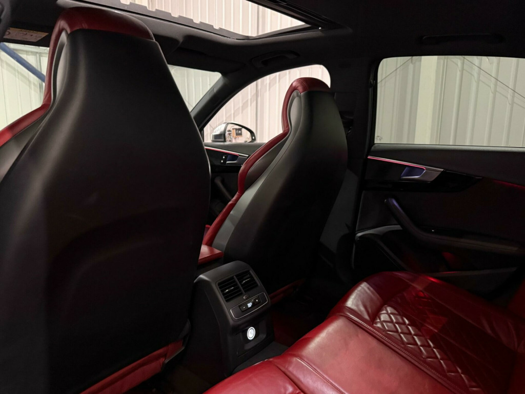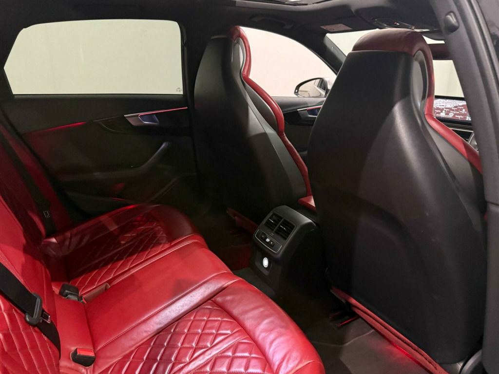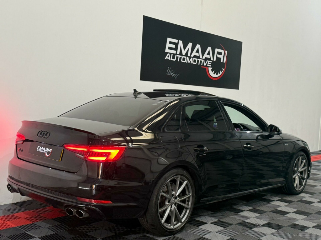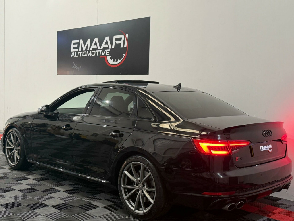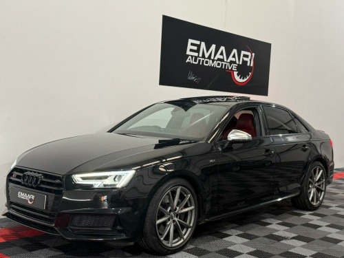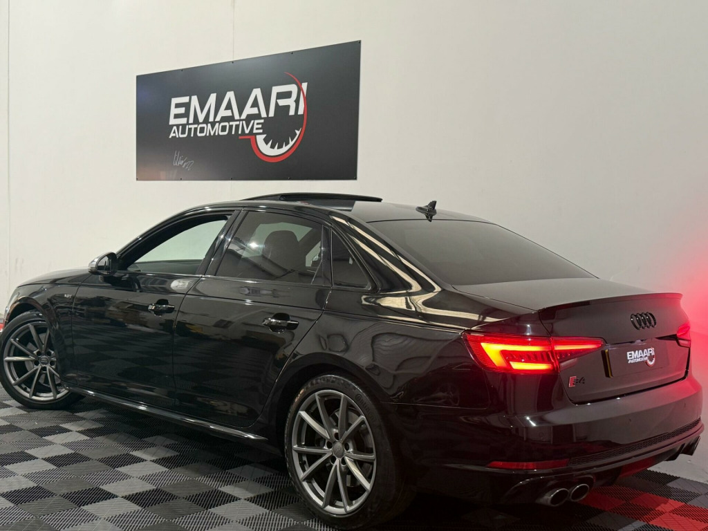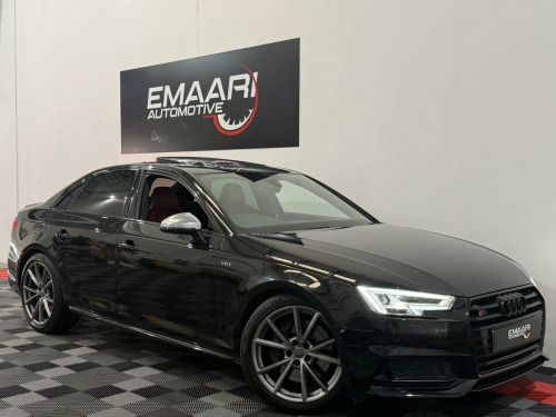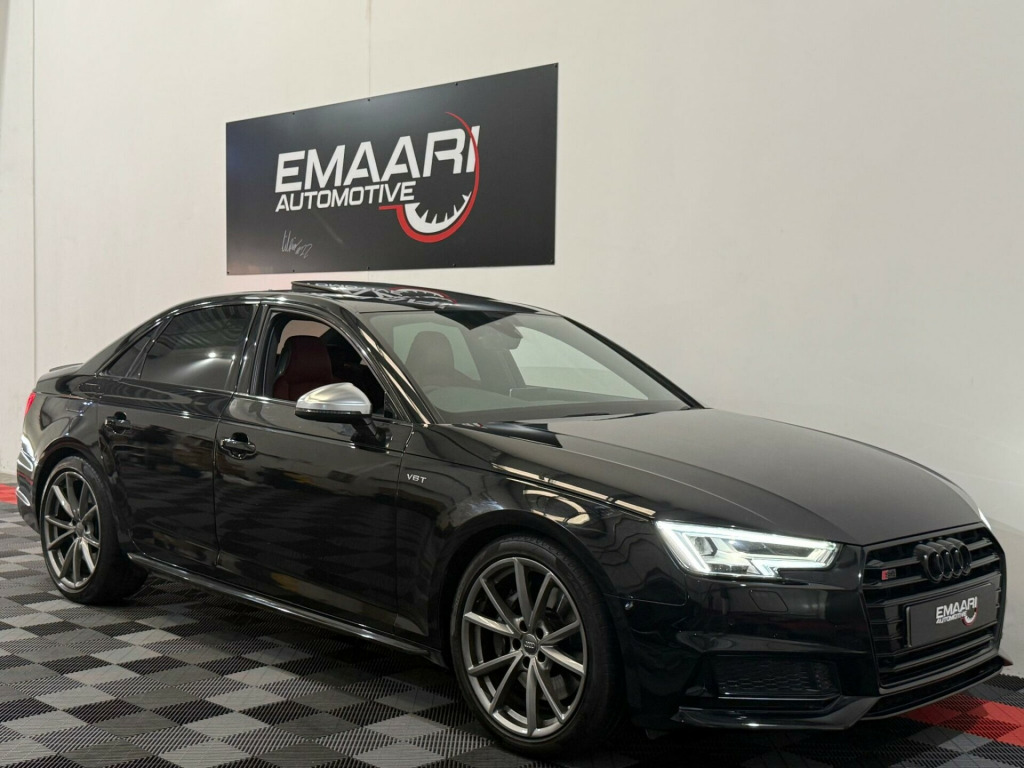 * FSH* GHOST IMMOBILISER* SUNROOF* B&O UPGRADED SOUND SYSTEM* FLAT BOTTOM STEERING WHEEL* VIRTUAL COCKPIT* REVERSE CAMERA WITH FRONT AND REAR SENSORS* MULTICOLOURED INTERIOR LIGHTING* APPLE CARPLAY* HEATED & MASSAGE SEATS* MAGMA RED LEATHER SEAT* ALL BLACKED OUT* REZ DELETE in alloy wheels - 5-v spoke design in matt black - diamond cut finish, 3d navigation, 6-airbag system, aluminium-effect door mirror housings, anti theft locking wheel bolts, anti-theft alarm, audi connect (3 year subscription from new), audi drive select, audi smartphone interface, audi sound system, auto-dimming rear-view mirror, bluetooth interface, brake calipers painted in black with s4 logo at the front, cloth headlining in black, cruise control with speed limiter, dab digital radio, deluxe 3-zone electronic climate control, door mirrors - electrically adjustable and heated with built-in led indicators, driver information system - 7in colour display, esc - electronic stabilisation control inc abs - asr and edl, electric boot lid release, electric windows - front and rear, electromechanical parking brake, electromechanical power steering, extended interior upholstery pack, first aid kit and warning triangle, front and rear floor mats, gear lever knob in black perforated leather, headlight washers, heated front seats, high gloss package, high-beam assist, isofix child seat mounting and top tether, illuminated door sill trims with s logo, inlays - matt brushed aluminium, keyless go, led headlights with led rear lights and dynamic rear indicators, led interior light package, leather door armrests and knee pad, light and rain sensor, luggage compartment mat, mmi navigation plus with 8.3in high resolution colour screen, mmi touch control panel, model and engine technology badges at rear, multi collision brake assist, non-smoking package, parking system plus, pedals and footrest - stainless steel, pop-up bonnet for pedestrian protection, pre-sense city, rear spoiler, remote central locking, s instrument dials, s line 3-spoke leather multi-function sport steering wheel - grips in perforated leather, s model enhanced braking system, s radiator grille in twilight grey - matt with dual struts in aluminium, s rear diffuser in twilight grey - matt and honeycomb grille in black, s specific air inlets in titan black with chrome inlays in unique s design, s specific dual-branch chrome tailpipes with twin oval pipes each on left and right, s specific front and rear bumpers, s sport suspension, s4 badges on grille - the front wing panels and rear, seat belt monitoring, space saver spare wheel, split-folding rear seat bench in 3 parts - 40-20-40 with rear centre armrest, sun visors - with vanity mirror, tool kit and car jack, towbar preparation, tyre pressure warning light, variable restraint system, windscreen with acoustic glazing, electric slide and tilt sunroof, audi virtual cockpit - 12.3in high resolution lcd display, bang and olufsen 3d sound system, comfort and sound package, extended led interior lighting package - multi-coloured, fine nappa leather - s super sport seats - s embossed - magma red, dynamic steering, rear view camera, flat-bottomed 3-spoke leather trimmed high multi-function steering wheel, light and vision pack, 19in alloy wheels - 5-v spoke design in matt titanium look - diamond cut finish, inlays - piano finish - black, door mirrors - electrically folding-auto-dimming with memory and built-in led indicators and kerb view on passenger side
