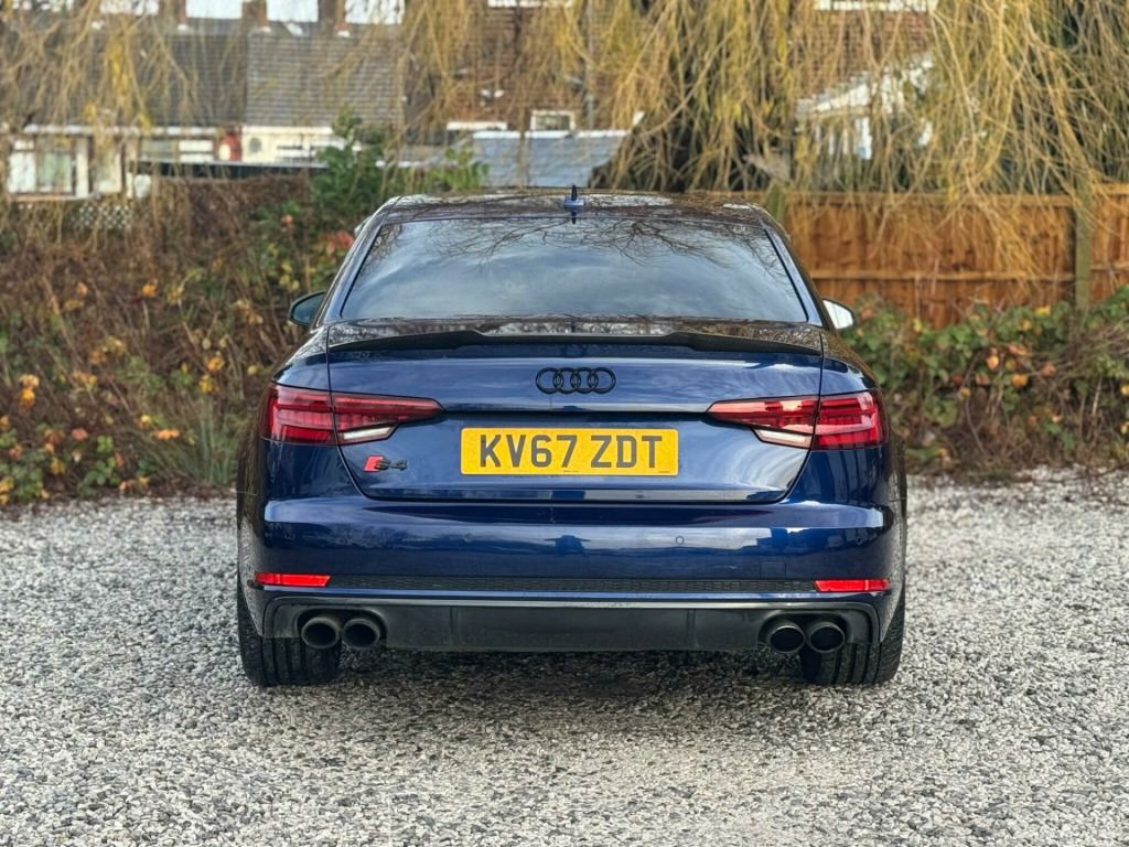 PART SERVICE HISTORYLOGBOOKK219in Alloy Wheels - 5-V Spoke Design in Matt Titanium Look - Diamond Cut FinishRareValuableAudi Entertainment MobileVery rareDigital TV ReceptionVery rareBlack Styling PackageValuableDoor Mirrors - Electrically FoldingRareAudi Virtual Cockpit - 12.3in High Resolution LCD DisplayRareMatrix LED Headlights with LED Rear Lights and Dynamic Front and Rear IndicatorsRareFine Nappa Leather - S Super Sport Seats - S Embossed - BlackPrivacy Glass and Front Acoustic GlazingAudi Virtual CockpitEquipment:Air ConditioningAuto Climate ControlAutomatic LightsAutomatic WipersAux InBluetoothCruise ControlDABDual Zone ClimateFront Parking SensorsThis 2017 Audi S4 TFSI V6 is a remarkable example, boasting a powerful 3.0 litre petrol engine and a sophisticated four wheel drive system. As a Euro 6 compliant vehicle, it meets modern emissions standards. This S4 comes equipped with the convenient Parking System Plus, featuring front and rear sensors to aid manoeuvring, and a Light and Rain Sensor that automatically activates the headlights. The striking LED headlights are complemented by LED rear lights and dynamic rear indicators, enhancing both visibility and style. Inside, you will find Deluxe 3-Zone Electronic Climate Control for personalised comfort and a Bluetooth Interface for seamless connectivity.The performance of this Audi S4 is truly impressive, with an acceleration of 0-60mph achieved in just 4.5 seconds, demonstrating its dynamic capabilities. Furthermore, its placement in a low insurance group makes it a more economical choice for many drivers compared to similar vehicles. These highlights, combined with its advanced features and robust engineering, position this 2017 Audi S4 TFSI V6 as a compelling option for those seeking a blend of performance, technology, and practicality. in alloy wheels - 5-v spoke design in matt titanium look - diamond cut finish, audi entertainment mobile, digital tv reception, black styling package, door mirrors - electrically folding, audi virtual cockpit - 12.3in high resolution lcd display, matrix led headlights with led rear lights and dynamic front and rear indicators, fine nappa leather - s super sport seats - s embossed - black, privacy glass and front acoustic glazing, audi virtual cockpit, 18in alloy wheels - 5-v spoke design in matt black - diamond cut finish, 3d navigation, 6-airbag system, aluminium-effect door mirror housings, anti theft locking wheel bolts, anti-theft alarm, audi connect (3 year subscription from new), audi drive select, audi smartphone interface, audi sound system, auto-dimming rear-view mirror, bluetooth interface, brake calipers painted in black with s4 logo at the front, cloth headlining in black, cruise control with speed limiter, dab digital radio, deluxe 3-zone electronic climate control, door mirrors - electrically adjustable and heated with built-in led indicators, driver information system - 7in colour display, esc - electronic stabilisation control inc abs - asr and edl, electric boot lid release, electric windows - front and rear, electromechanical parking brake, electromechanical power steering, extended interior upholstery pack, first aid kit and warning triangle, front and rear floor mats, gear lever knob in black perforated leather, headlight washers, heated front seats, high gloss package, high-beam assist, isofix child seat mounting and top tether, illuminated door sill trims with s logo, inlays - matt brushed aluminium, keyless go, led headlights with led rear lights and dynamic rear indicators, led interior light package, leather door armrests and knee pad, light and rain sensor, luggage compartment mat, mmi navigation plus with 8.3in high resolution colour screen, mmi touch control panel, model and engine technology badges at rear, multi collision brake assist, non-smoking package, parking system plus, pedals and footrest - stainless steel, pop-up bonnet for pedestrian protection, pre-sense city, rear spoiler, remote central locking, s instrument dials, s line 3-spoke leather multi-function sport steering wheel - grips in perforated leather, s model enhanced braking system, s radiator grille in twilight grey - matt with dual struts in aluminium, s rear diffuser in twilight grey - matt and honeycomb grille in black, s specific air inlets in titan black with chrome inlays in unique s design, s specific dual-branch chrome tailpipes with twin oval pipes each on left and right, s specific front and rear bumpers, s sport suspension, s4 badges on grille - the front wing panels and rear, seat belt monitoring, space saver spare wheel, split-folding rear seat bench in 3 parts - 40-20-40 with rear centre armrest, sun visors - with vanity mirror, tool kit and car jack, towbar preparation, tyre pressure warning light, variable restraint system, windscreen with acoustic glazing