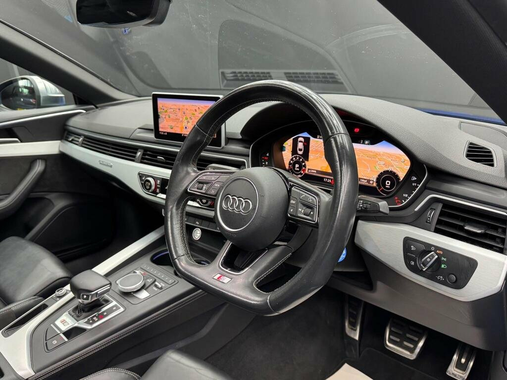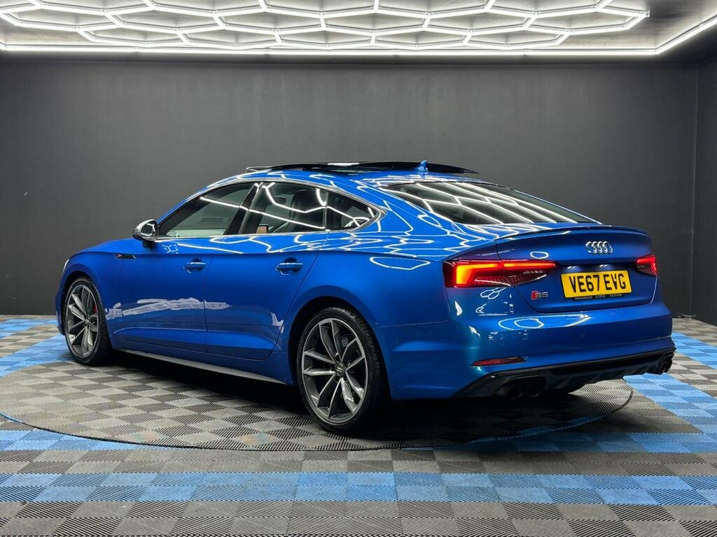 we are delighted to offer an Audi S5 3.0 TFSI V6 Sportback Tiptronic quattro. This vehicle is in immaculate condition inside and out. This specific vehicle is finished in a METALLIC BLUE and is contrasted by a BLACK LEATHER interior. This vehicle comes included with: FRONT & REAR PARKING SENSORS, FRONT ELECTRIC/ MASSAGING SEATS, AUDI SUPER SPORT STITCHED SEATS, FRONT & REAR HEATED SEATS, CRUSIE CONTROL, DIGITAL COCKPIT, AUTOMATIC HEADLIGHT CONTROL, TWIN CUPHOLDERS, KEYLESS START, CLIMATE CONTROL, TELEPHONE CONNECTIVITY, BLUETOOTH AUDIO, DAB RADIO, AUDI DRIVE SELECT, SLIDING GLASS PANORAMIC ROOF AND MUCH MORE! Our Audi S5 3.0 TFSI V6 Sportback Tiptronic quattro has come to us with SERVICE HISTORY and is a 1 FORMER KEEPER FROM NEW