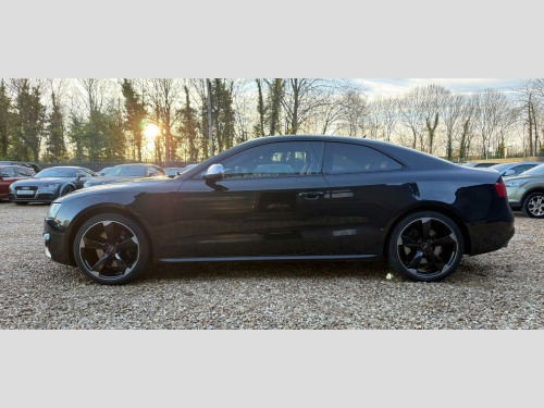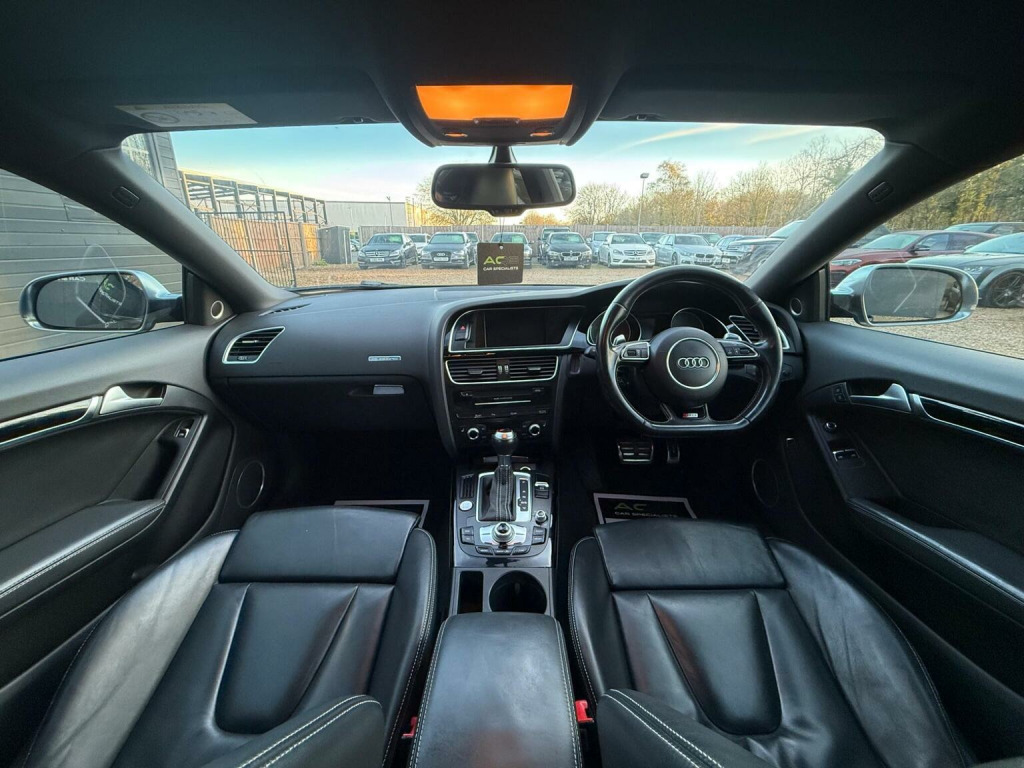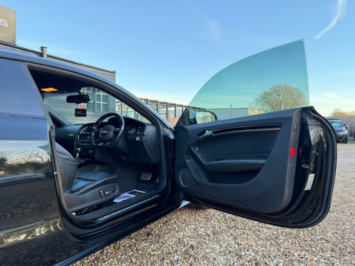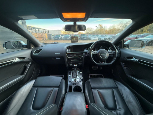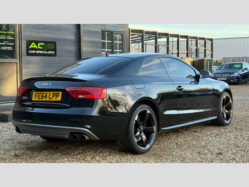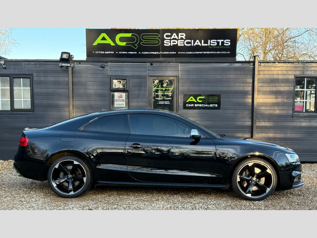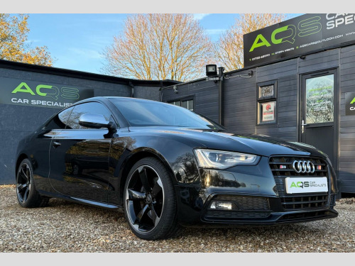 Here at AQS Car Specialist we take pride in being one of the few highly rated dealers for our customer service from Autotrader working closely together so we can go the extra mile to make sure you are getting the best service out there. All vehicles undergo a full visual and Mechanical health inspection, driven and tested. All essential work carried out with no expense spared. We offer an extended nation wide warranty with the option to extend up to 36 months, giving our customers full peace of mind and security when purchasing a car from AQS car specialists. Any inspection welcome, Test drive welcome, Part exchanges welcome. All dealer facilities available on site. Here at AQS Car Specialist we are delighted to offer this fantastic looking example of an Audi S5 3.0 V6 Black Edition S Tronic Quattro. Finished in Black with a matching full Black leather interior alongside newly refurbished 19 inch S Line alloys. Recently serviced and complimented by a partial history (6 Stamps) as well as a long MOT. In great condition both inside and out, this is an honest example of how an S5 should drive. These S5s are renown for their stylish looks and having exceptional performance while still being reliable. This particular example benefits from being fitted with some great features which include, Tri-Zone Climate Controlled Air Conditioning, Cruise Control, Sat Nav, Bluetooth Connectivity, DAB Radio, Auto Bi-Xenon Headlights, Auto Rain Sensing Wipers, Reverse Camera, Front and Rear Parking Sensors with Visual Aid, Keyless Go, Electrically Adjustable and Heated Front Sports Seats, MultiFunctional Flat Bottomed Steering Wheel, Full S Line Styling from Factory and the super useful Split Fold Rear Bench amongst all the usual Audi refinements you expect.