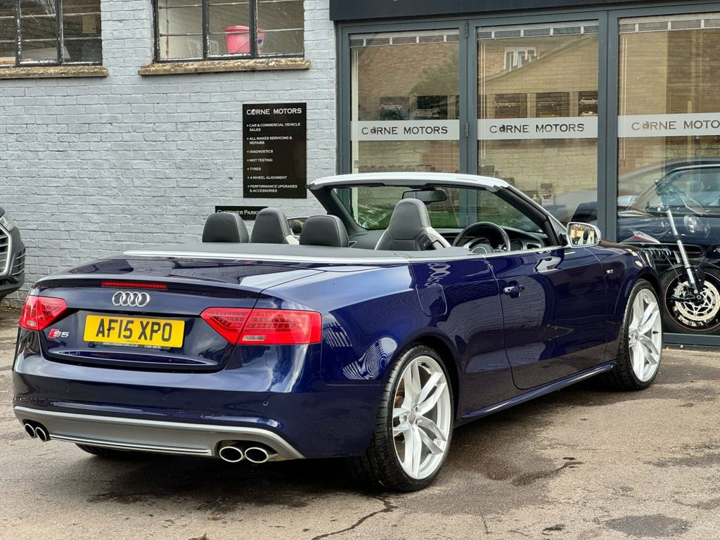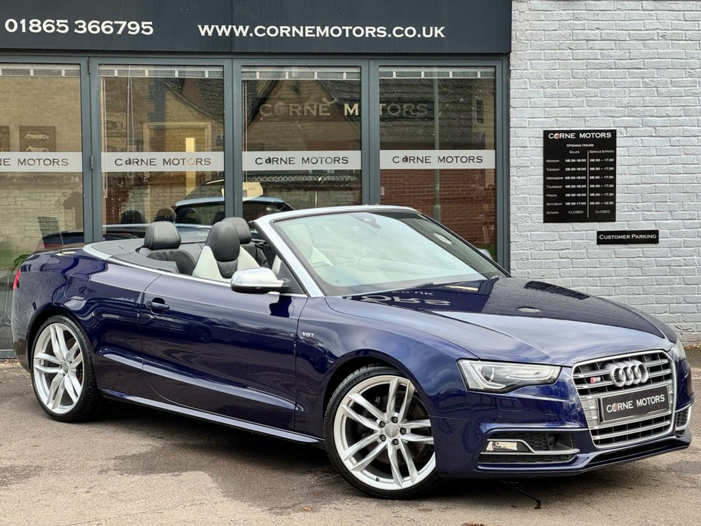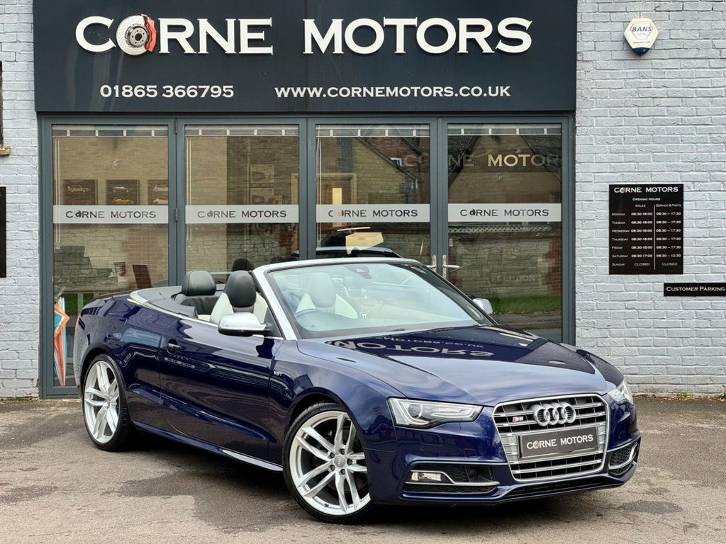 AUDI S5 CABRIOLET 3.0 V6 TFSI 333PS QUATTRO S-TRONIC 7 SPEED AUTOMATIC 2DR CONVERTIBLE FINISHED IN AUDI EXCLUSIVE PAINT COMPLIMENTED WITH TWO TONE AUDI SPORTS SEATS, 1 OF A KIND AUDI EXCLUSIVE SPECIFICATION WITH OVER £8,000 WORTH OF FACTORY OPTIONS, FULLY HPI CHECKED & CLEARED, SERVICE HISTORY, MAJOR SERVICE INCLUDING S-TRONIC GEARBOX SERVICE, BRAKE FLUID CHANGE & SPARK PLUG REPLACEMENT IN OCTOBER 2025, 4 BRAND NEW MICHELIN PILOT SPORT 4S TYRES, 2 KEYS, FULLY HPI CHECKED & CLEARED, FLEXIBLE FINANCE PACKAGES AVAILABLE AND PART EXCHANGES WELCOMED, SUPPLIED WITH APPROVED USED WARRANTY, GREAT SPECIFICATION INCLUDING 20" ALLOY WHEELS, BANG & OLUFSEN SOUND SYSTEM, HEATED FRONT & REAR OUTER SEATS, ELECTRIC ADJUSTABLE MEMORY FRONT SEATS, FRONT & REAR PARK AID, REVERSE CAMERA, CARBON DASH INLAYS, KEYLESS START, XENON HEADLAMPS WITH LED DAYTIME RUNNING LAMPS, DAB RADIO, BLUETOOTH PHONE, ADAPTIVE CRUISE CONTROL, LEATHER SPORTS MULTI FUNCTION STEERING WHEEL, QUATTRO 4WD SYSTEM, CLIMATE CONTROL, QUAD EXHAUST SYSTEM, FOLDING DOOR MIRRORS, MULTI FUNCTION TRIP COMPUTER + MUCH MORE. CORNE MOTORS IS A FAMILY RUN INDEPENDENT VOLKSWAGEN AUDI GROUP SPECIALIST DEALERSHIP LOCATED IN SOUTHMOOR NEAR WITNEY / ABINGDON IN OXFORDSHIRE. WE PRIDE OURSELVES ON PROVIDING THE HIGHEST LEVELS OF CUSTOMER SERVICE AND SATISFACTION. ALL OF OUR SALES VEHICLES ARE PREPARED TO THE HIGHEST OF STANDARDS AND UNDERGO A THOROUGH MULTI POINT INSPECTION PRIOR TO SALE, WE ARE PROUD TO BE A 10 Speakers, 12V Power Socket, 19in 5 parallel Spoke design Alloy Wheel, 19in Alloy Wheels - 5-Parallel Spoke S D, 3Spoke Multifunction Leather Steering Wh, 4Spoke Leather Multifunction Steering Wh, ABS - Anti-Lock Braking System, Acoustic Hood - Fully Automatic, Acoustic Parking System - Rear, Airbags - Driver, Airbags - Front Passenger, Alarm - Thatcham Category 1, Automatic Wipers with Rain Sensor, AUX-IN Socket, Auxiliary input socket, Bi-Xenon Headlights, Climate Control - Electronic 3-Zone, Concert Radio & CD player with MP3 S, Concert Radio & single CD player wit, Concert Radio - MP3-CD Player, Delete capacity designation at Rear, Deletion of model & engine designati, Door