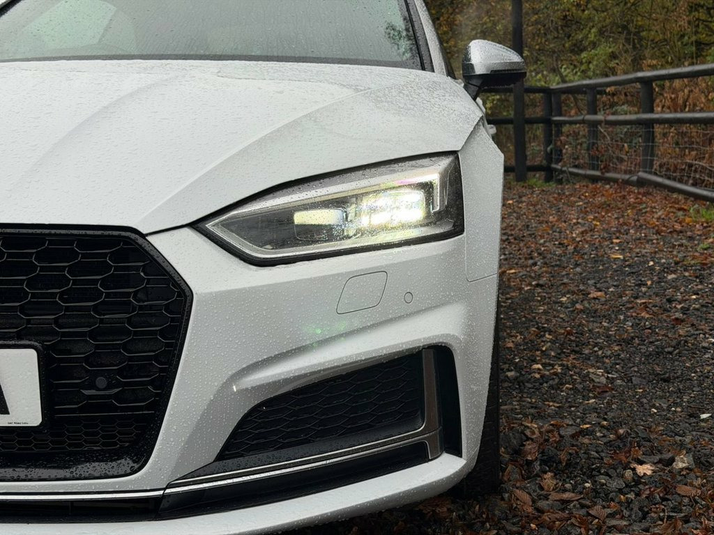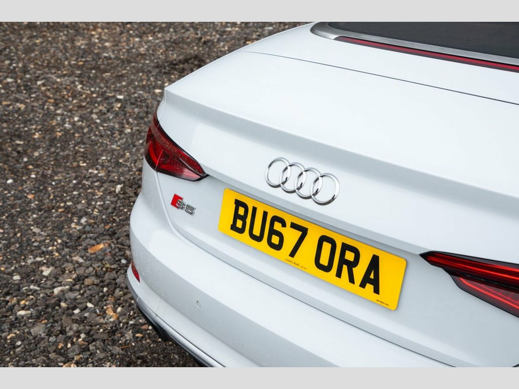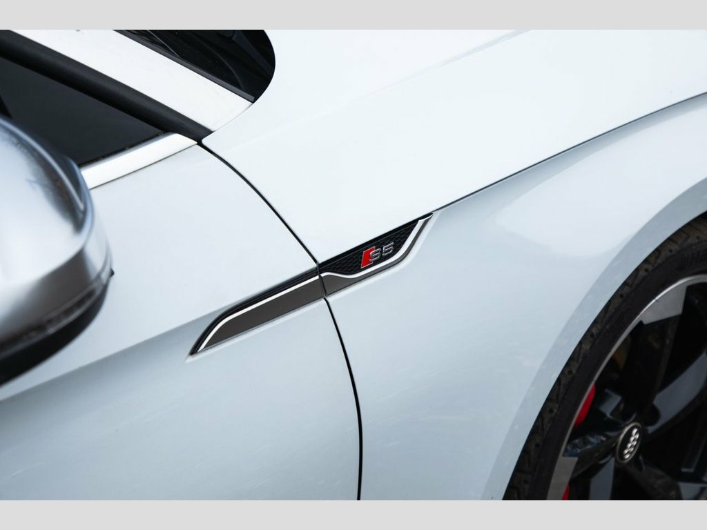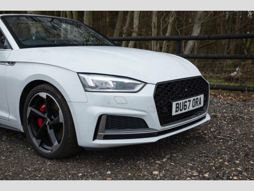 This 2017 Audi S5 TFSI V6 presents an exceptional opportunity with remarkably low mileage for its age, having covered just 49,600 miles. Powered by a potent 3.0 litre petrol engine and featuring Audi's renowned Four Wheel Drive system, this Euro 6 compliant model offers a compelling blend of performance and efficiency. The driving experience is enhanced by a suite of advanced features, including a Bluetooth Interface for seamless connectivity, Parking System Plus with front and rear sensors for effortless manoeuvring, and Deluxe 3-Zone Electronic Climate Control to ensure optimal comfort for all occupants. Furthermore, the striking LED Headlights with dynamic rear indicators and the convenient Light and Rain Sensor system contribute to both safety and sophisticated styling. The Audi S5 TFSI V6 stands out from its peers with its impressive acceleration, achieving 0-60mph in a swift 4.9 seconds, demonstrating its dynamic capabilities. This performance, combined with its low insurance group rating, makes it a more economical choice than many comparable vehicles. The combination of its advanced technology, low mileage, and strong performance credentials makes this 2017 Audi S5 a truly desirable proposition for any discerning driver. 19in Alloy Wheels - 5-Spoke Cavo Design , 2 x USB Charging Ports and 1 x AUX-IN, 4-Airbag System, 4-Way Electric Lumbar Support, ABS - Anti-Lock Braking System, Acoustic Hood - Fully Automatic, Acoustic Soft Top - Black, Aluminium-Effect Door Mirror Housings, Anti Theft Locking Wheel Bolts, Anti-Theft Alarm, Audi Beam, Audi Connect Infotainment Services - 3 M, Audi Connect Safety and Service, Audi Drive Select, Audi Smartphone Interface, Audi Sound System, Auto-Dimming Rear-View Mirror, Bluetooth Interface, Brake Calipers Painted in Black with S5 , Cloth Headlining in Black, Contrast Stitching on Seats - Steering W, Cruise Control with Speed Limiter, DAB Digital Radio Reception, Deluxe 3-Zon
