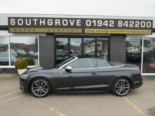 This 2018 Audi S5 3.0 TFSI V6 Cabriolet 2dr Petrol Tiptronic quattro Convertible is currently available for £18,989 in Bolton Lancashire with Petrol engine and Automatic gearbox. For more information or to arrange a viewing, click here to send us an email using form below.