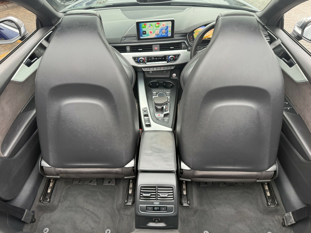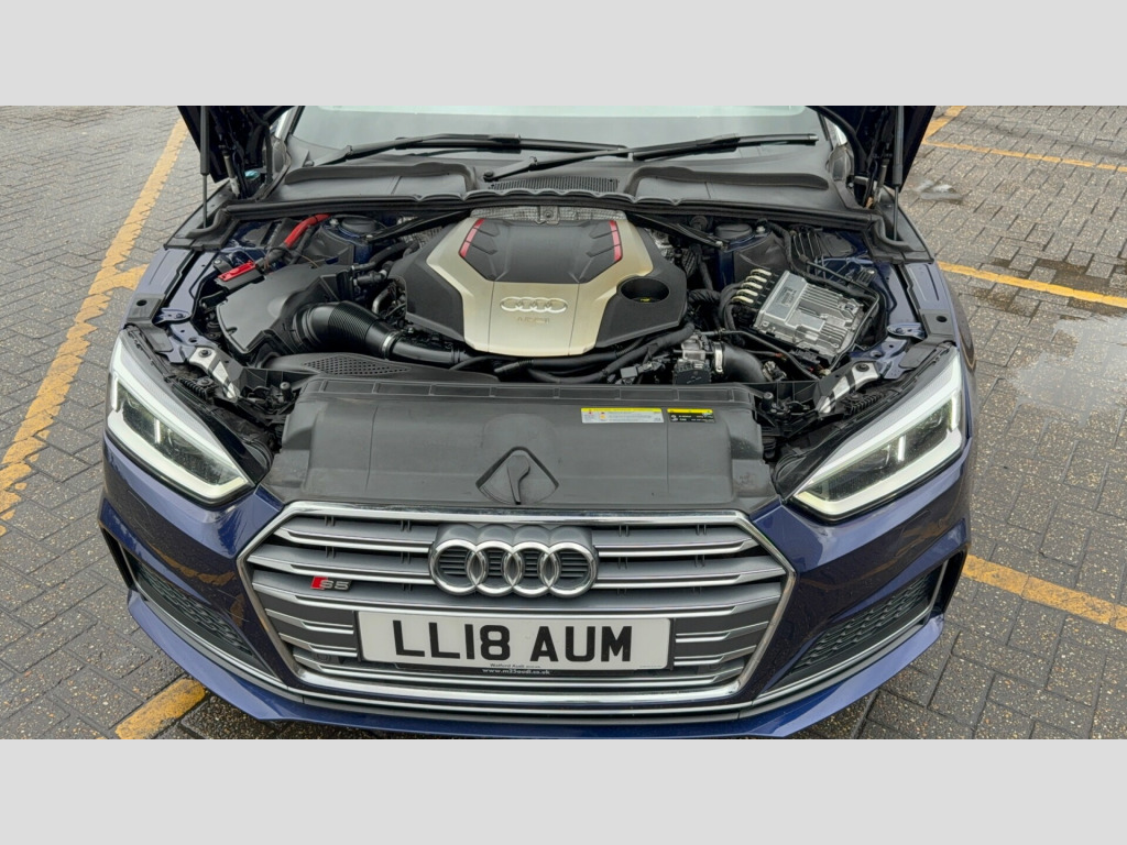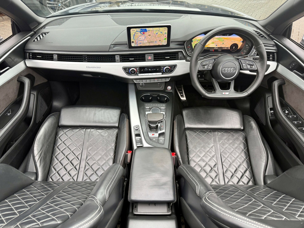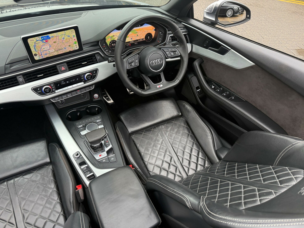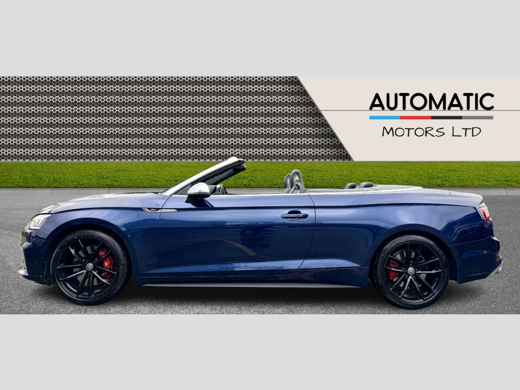 1 OWNER FROM NEW, APPLE/ANDROID CAR PLAY, ULEZ FREE, FRESH SERVICE (TOTAL 6 SERVICES), MOT 12/06/2026, NAVIGATION, BLUETOOTH, PARKING SENSORS, HEATED SEATS, SEAT MASSAGER, HEATED SEATS, REVER CAMERAThis sleek 2018 Audi S5 Cabriolet boasts a powerful 3.0 TFSI V6 engine, delivering 354 horsepower and Euro 6 (s/s) emissions compliance. With just 59700 miles on the clock, this convertible beauty is ready to hit the open road with its petrol fuel type and ULEZ compliant status. Featuring a MOT expiry date of 06/12/2026, this 2-door, 4-seater vehicle is a perfect blend of style, performance, and practicality. Whether cruising through the city or along scenic routes, the Audi S5 offers an exhilarating driving experience wrapped in luxury and sophistication. Ideal for those seeking a thrilling ride with top-down driving capabilities while enjoying the reassurance of Audi's legendary engineering.