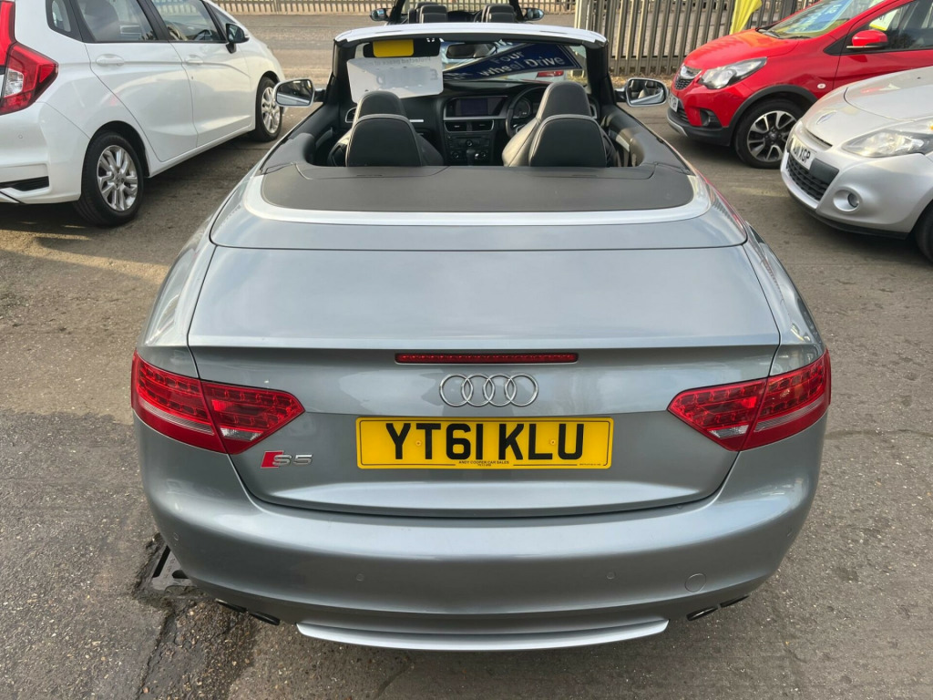 This 2011 Audi S5 3.0 TFSI V6 Cabriolet S Tronic quattro Euro 5 2dr Convertible is currently available for £7,795 in Wisbech Cambridgeshire with Petrol engine and Automatic gearbox. For more information or to arrange a viewing, click here to send us an email using form below.