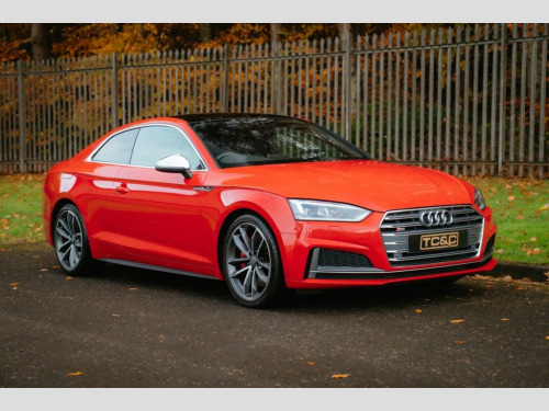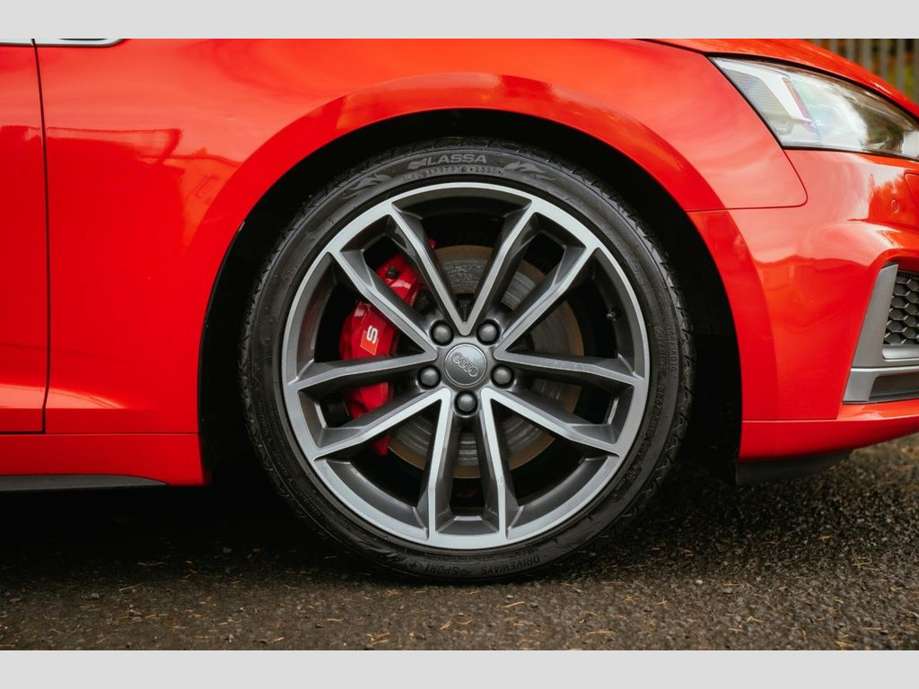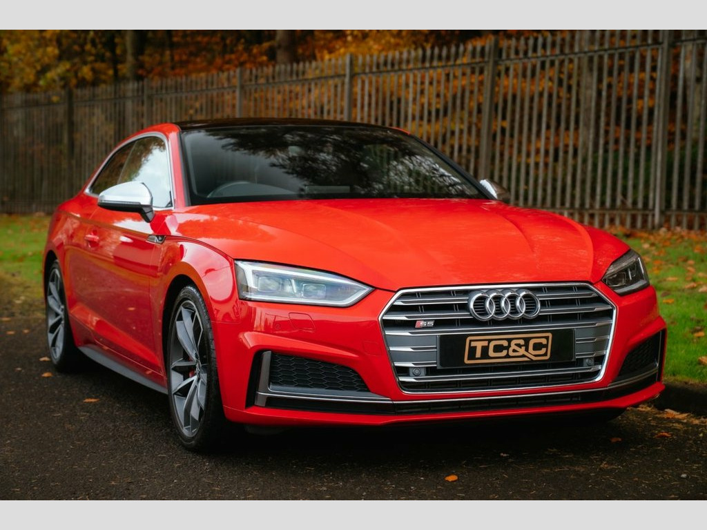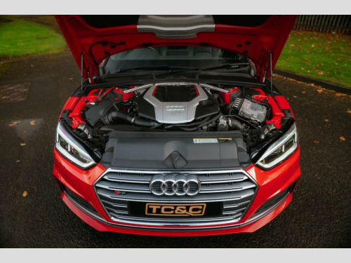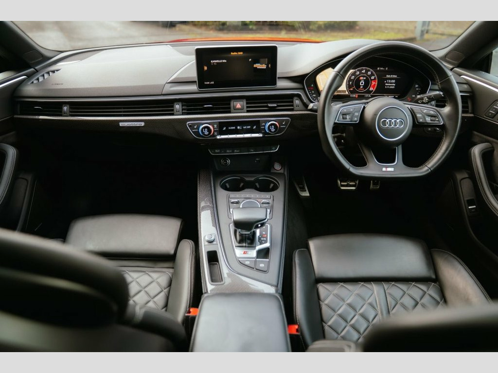 This Audi S5 is a stunning example, with just one previous owner, with the much sought after pan roof and finished in the Misano Red. This S5 has been incredibly well maintained and looked after, with a full Audi dealer service history having services at 2K, 3K, 9K, 16K & 26K, with just 29,000 miles on the clock. Pushing a solid 349BHP, and a 0-60 in 4.5 seconds, this luxurious saloon is capable of delivering an incredible driving experience. Supplied with two keys, a valid MOT and a minimum six-month warranty. This S5 has an impressive specification which includes Audi Virtual Cockpit, electric heated front seats with drivers side memory function, SAT NAV, Bluetooth connectivity, reverse camera, keyless entry and push-to-start, dual-zone climate control with air conditioning, Matrix adaptive LED headlights, cruise control with braking function, and a Flat-Bottomed 3-Spoke Leather High Multi-Function Steering Wheel with paddle shifters. Further features include front & rear parking sensors, automatic wipers, DAB radio with CD/AUX input, switchable driving modes, electric power-folding mirrors, and electric windows - all adding to that desirable combination of comfort, convenience, and sporting flair. To the exterior, this Misano Red S5 is equipped the rare panoramic roof and striking 19" diamond cut alloys, sitting perfectly over red painted calipers. S5 badging is prominent throughout the exterior, boasting this cars performance capabilities. The interior is e 19in Alloy Wheels - 5-Spoke Cavo Design , 2 x USB Charging Ports and 1 x AUX-IN, 4-Way Electric Lumbar Support, 6-Airbag System, ABS - Anti-Lock Braking System, Aluminium-Effect Door Mirror Housings, Anti Theft Locking Wheel Bolts, Anti-Theft Alarm, Audi Beam, Audi Connect Infotainment Services - 3 M, Audi Connect Safety and Service, Audi Drive Select, Audi Smartphone Interface, Audi Sound System, Audi Virtual Cockpit, Auto-Dimming Rear-View Mirror, Bluetooth Interface, Brake Calipers - Red, Brake Calipers Painted in Black with S5 , Cloth Headlining in Black, Contrast Stitching on Seats - Steering W, Cruise Control with Speed Limiter, DAB Digital Radio Reception, Deluxe 3-Zone Electronic Cli