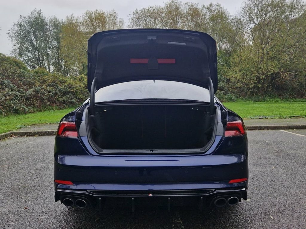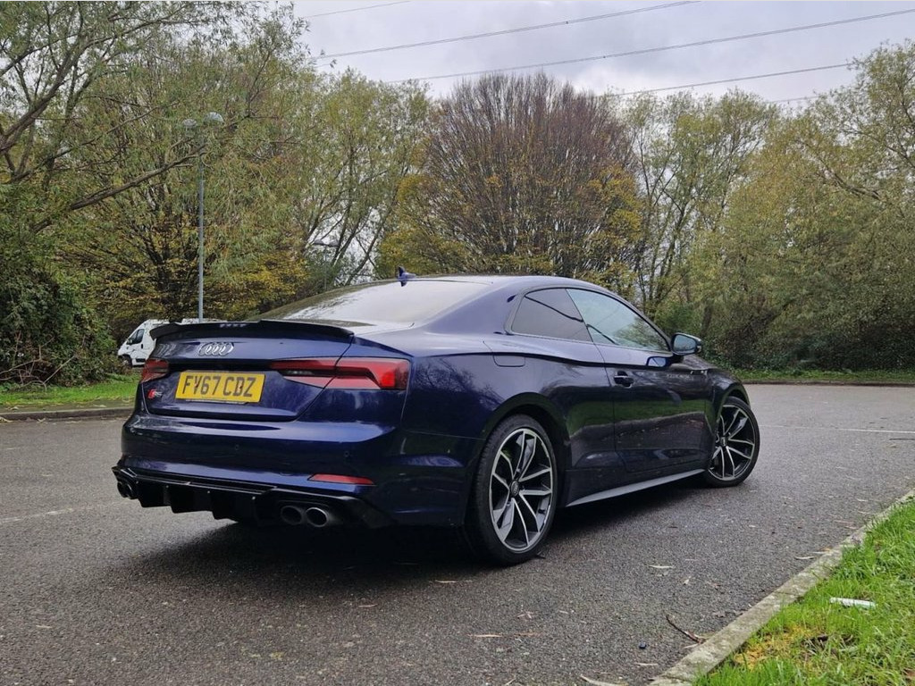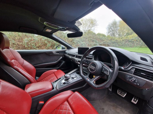 FINANCE AVAILABLE Here we have for sale a AUDI S5 3.0 TFSI V6 Coupe 2dr Petrol Tiptronic quattro Euro 6 (s/s) (354 ps)This car is incredibly good condition both inside and out and benefits from in an incredible specification, full service history and Huge spec includes Keyless entry, Keyless Start B&O Sound, Stunning heated red leather electric seats with massage function, Apple car play, Park Assist with reverse camera, Flat bottom multifunction steering wheel and more. This car sounds amazing and is a thrill and a joy to drive. MUST BE SEEN AND DRIVEN TO BE APPRECIATED S Suspension with Damping Control, Rear-View Camera, Fine Nappa Leather - S Super Sport Seats, Matrix LED Headlights with LED Rear Ligh, Navarra Blue, Comfort and Sound Package, Flat-Bottomed 3-Spoke Leather High Multi, Audi Virtual Cockpit, Privacy Glass, Brake Calipers - Red, 19in Alloy Wheels - 5-Spoke Cavo Design , 2 x USB Charging Ports and 1 x AUX-IN, 4-Way Electric Lumbar Support, 6-Airbag System, ABS - Anti-Lock Braking System, Aluminium-Effect Door Mirror Housings, Anti Theft Locking Wheel Bolts, Anti-Theft Alarm, Audi Beam, Audi Connect Infotainment Services - 3 M, Audi Connect Safety and Service, Audi Drive Select, Audi Smartphone Interface, Audi Sound System, Auto-Dimming Rear-Vi